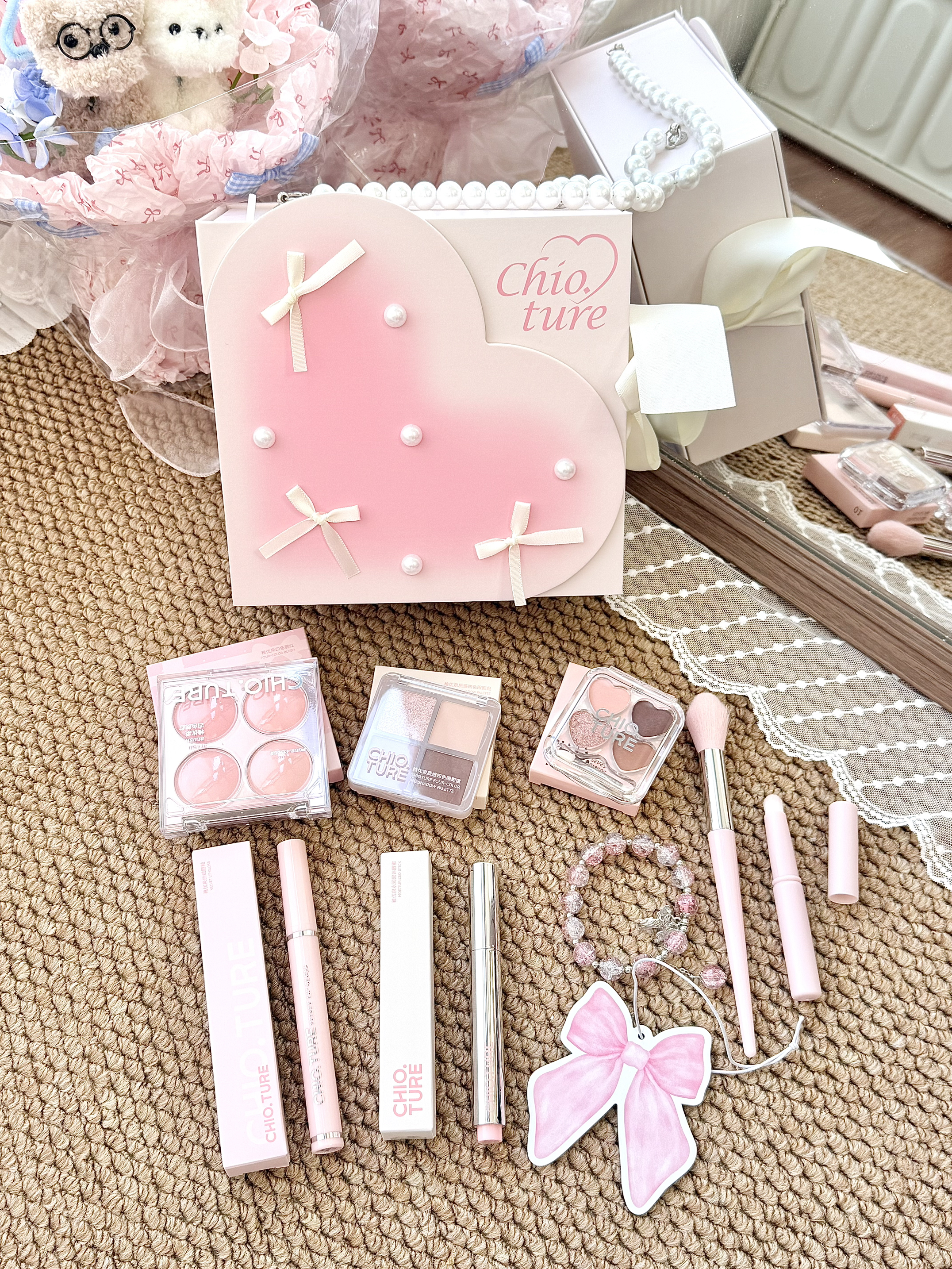 收到稚优泉这个软糖派对礼盒咯~ 珍珠和蝴蝶结的设计好精致呀 一盒里面眼妆、腮红和口红都安排好啦 就连香片跟手链、刷子都配齐啦 整个色系都是低饱和度 百搭色调 上脸就是粉粉嫩嫩又温柔 小甜妹的宝宝可别错过哦~ 这不双旦也快到了咩 这是小女孩都拒绝不了的🎁哦