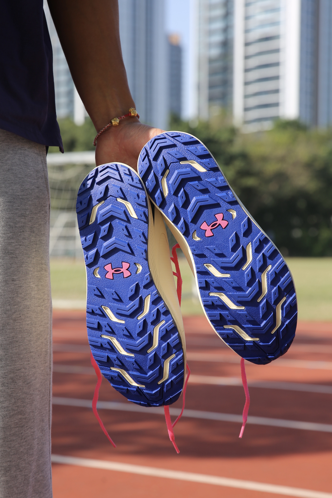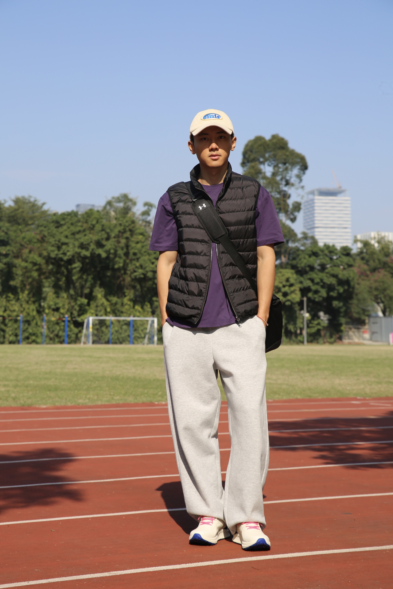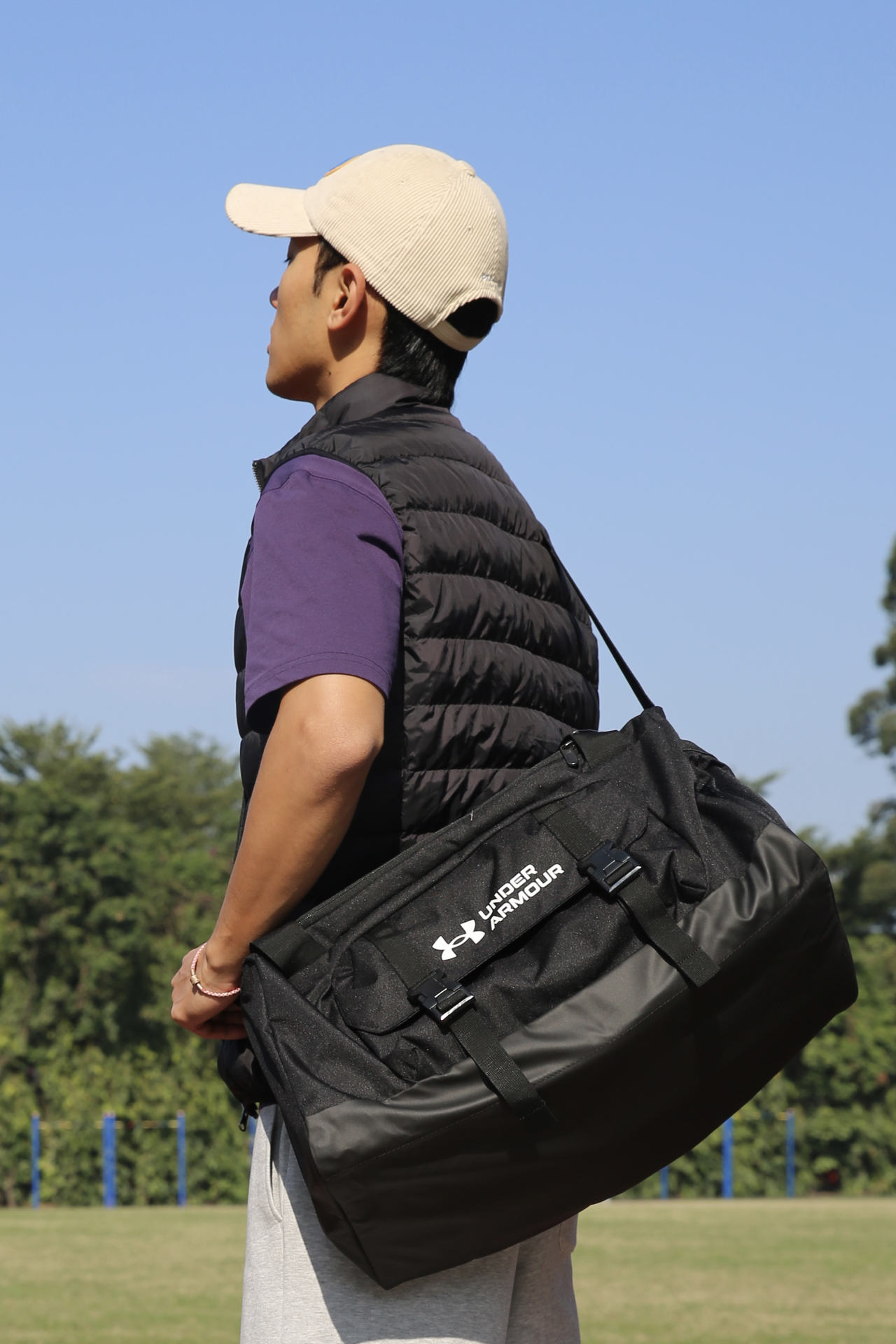哈喽兄弟们,今天的训练搭配: 灰色运动裤+紫色速干 T 恤+羽绒背心,保暖又不影响活动。 鞋子是Under Armour的跑步鞋。鞋子很轻跑起来很清爽,训练时间久了脚也不会觉得累。网眼鞋面透气性在线,户外跑或者日常训练都不闷脚,系紧鞋带后包裹感很强,脚和鞋贴合得很好。米色+粉色的配色也很加分,冬天穿看着很干净。 背的包是 UA Gametime 健身包,颜值和实用性都很在线。UA Storm ...