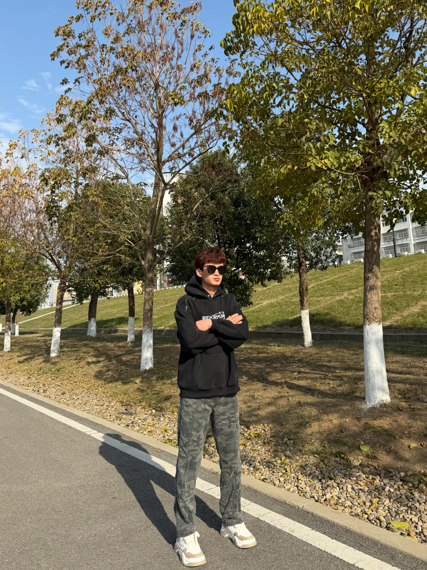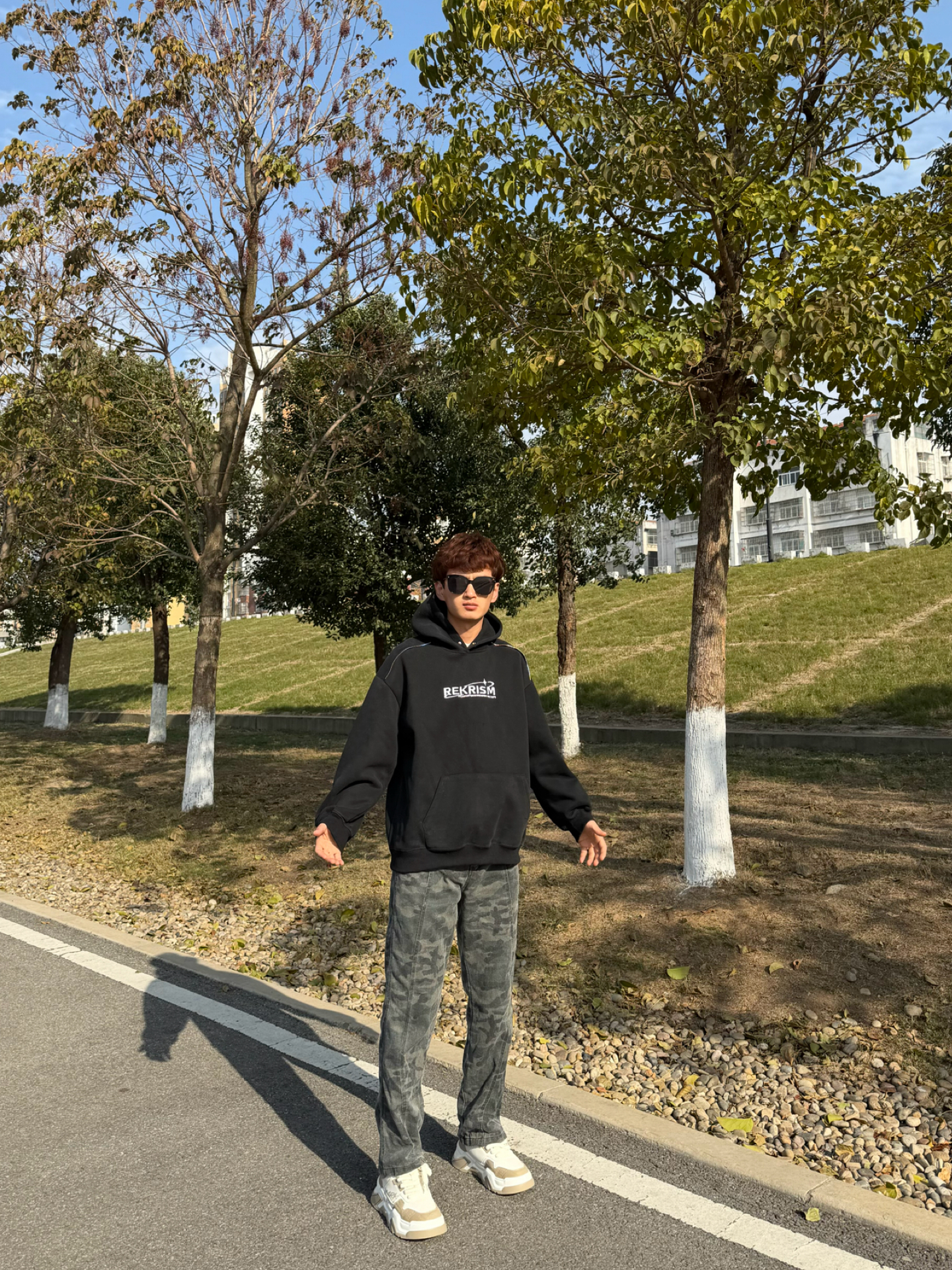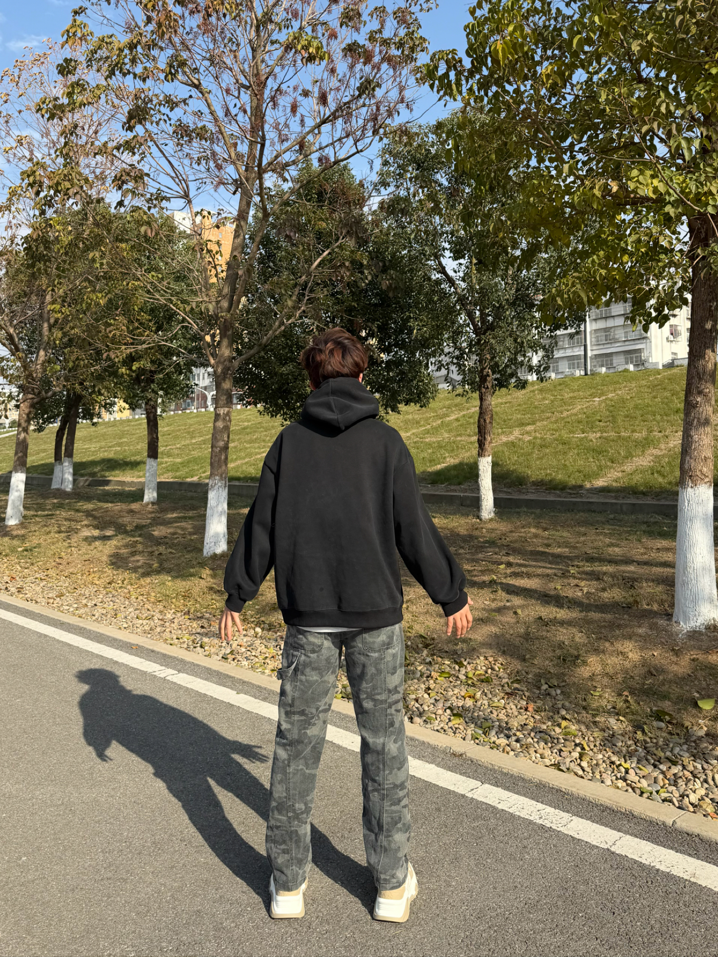 哈喽兄弟们 今日穿搭分享 一起来看看吧! 黑色落肩印花卫衣 搭配迷彩牛仔裤 最后是一双休闲板鞋 一起来看看吧! #今日份百搭穿搭 #鞋帽选对赢一半 #引力成长航线