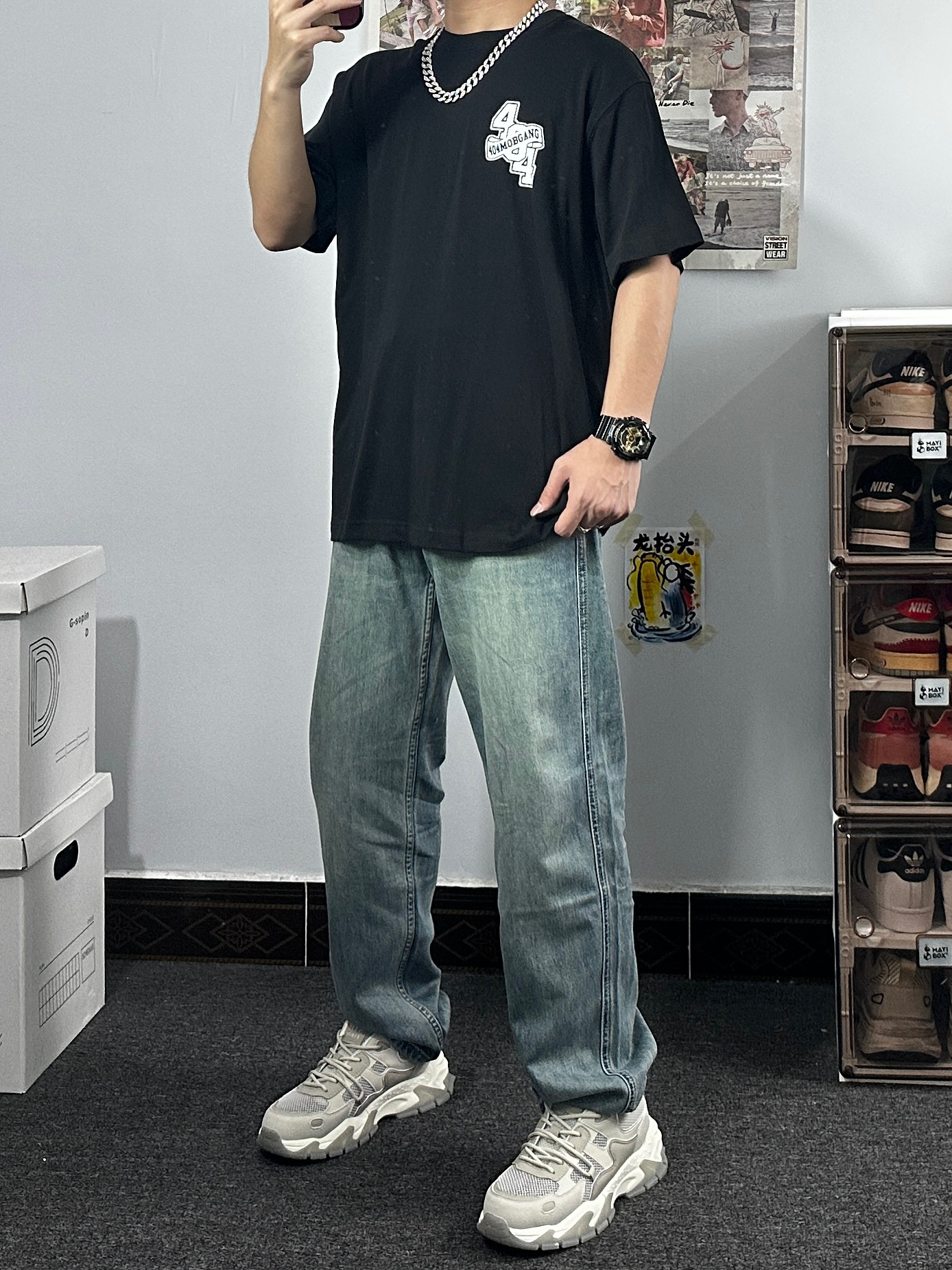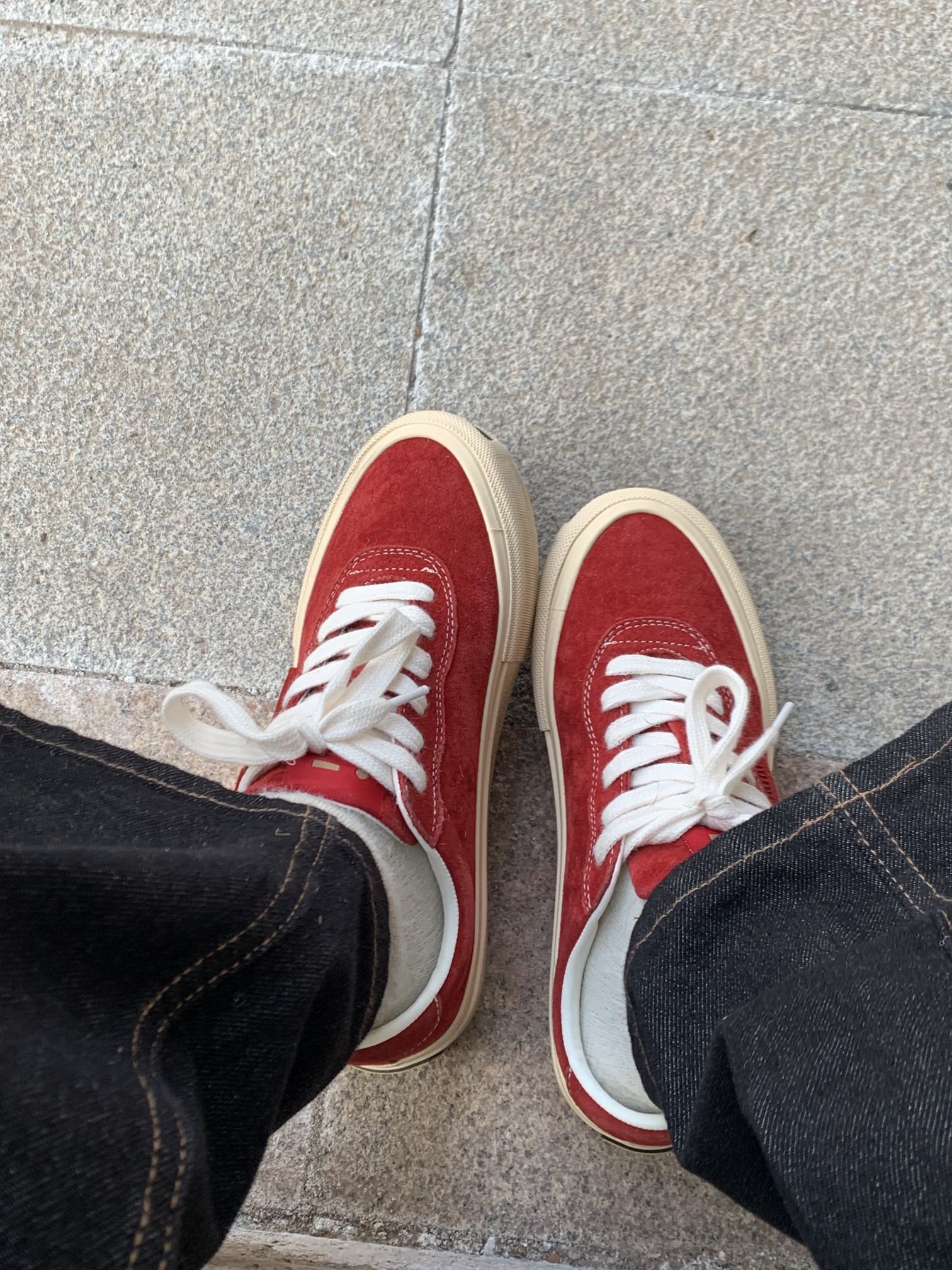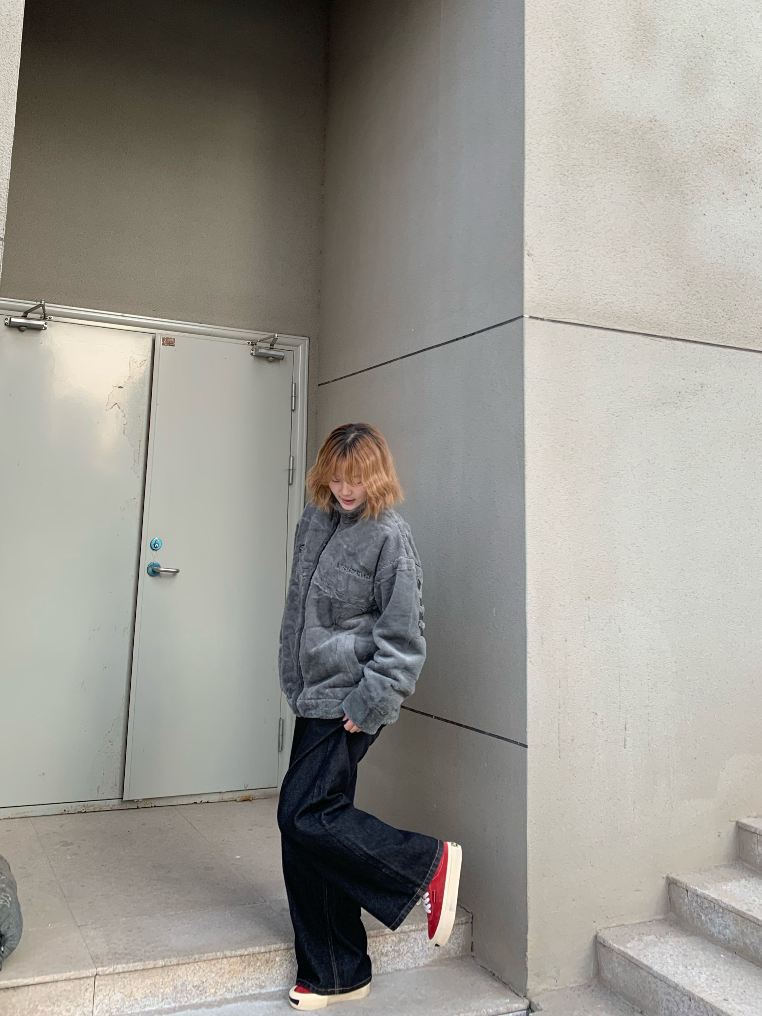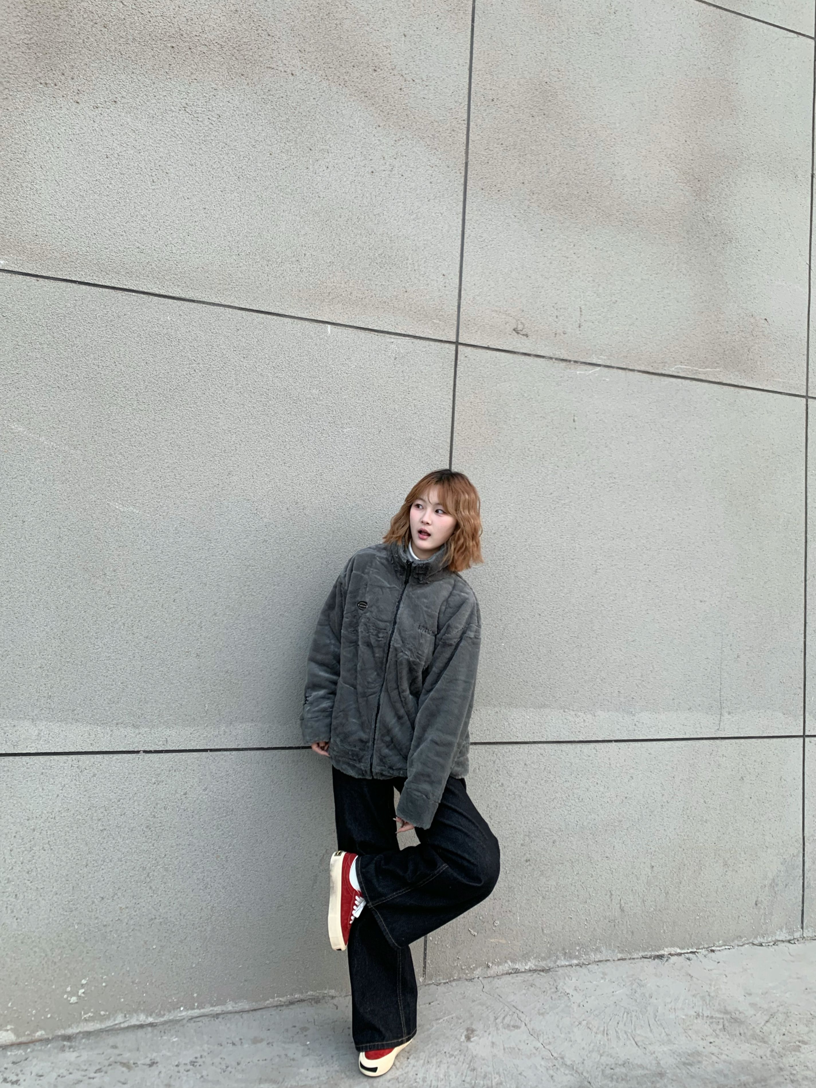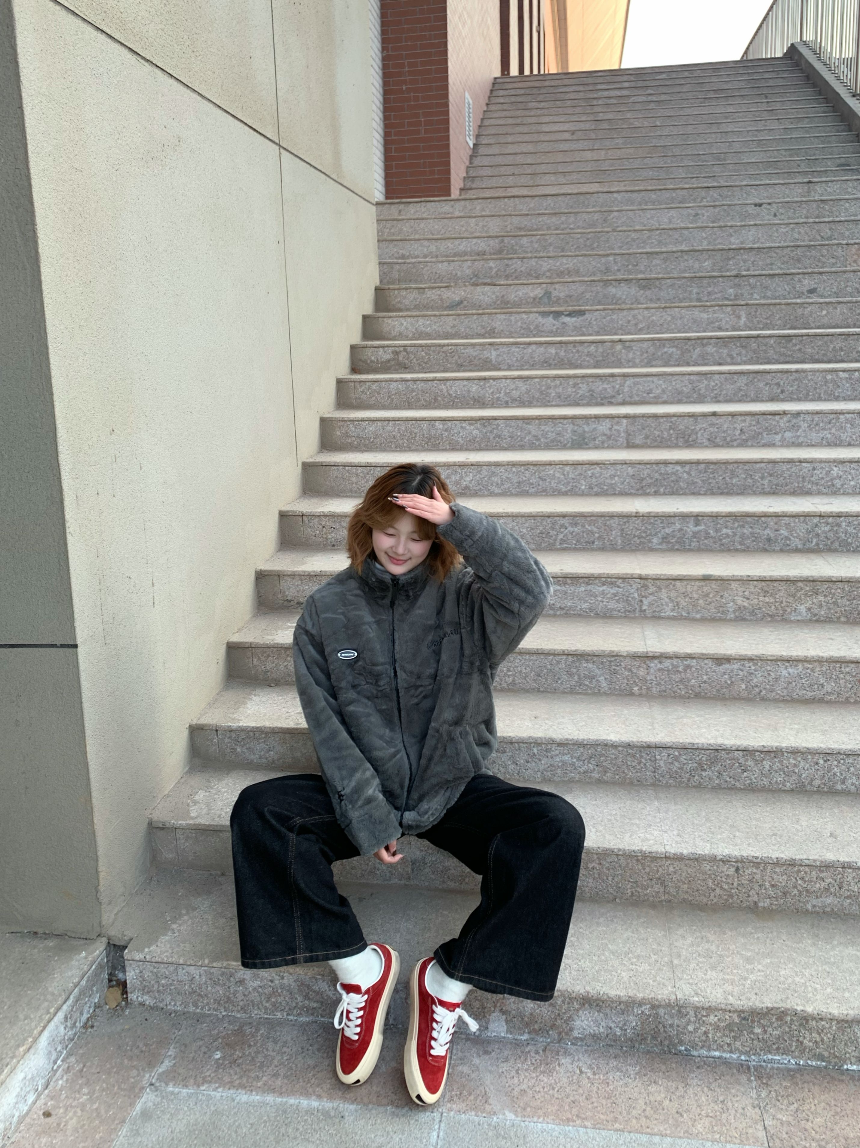 鞋边是做旧的设计 很有复古感 穿上也非常舒服 这双红色板鞋是今日穿搭的点睛之笔 在全灰黑的穿搭里加一点亮色不会显得沉闷 随手一拍就很出片~ 这种基础款的搭配思路很适合日常 简单的配色加小细节点缀就能穿出不一样的味道 秋冬穿搭不用复杂 舒服好看就够了☺️