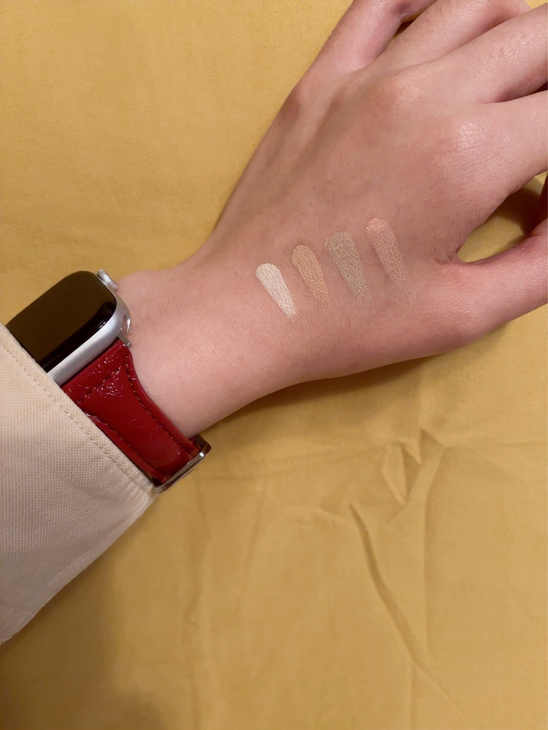 指肚打圈激活遮瑕膏,少量多次在皮肤叠加 4种颜色随便遮!😌 这款遮瑕膏质地超好,滋润不拔干~日常通勤厚涂也能持妆一整天 这个价格非常香,无脑入!!!🤫🤫