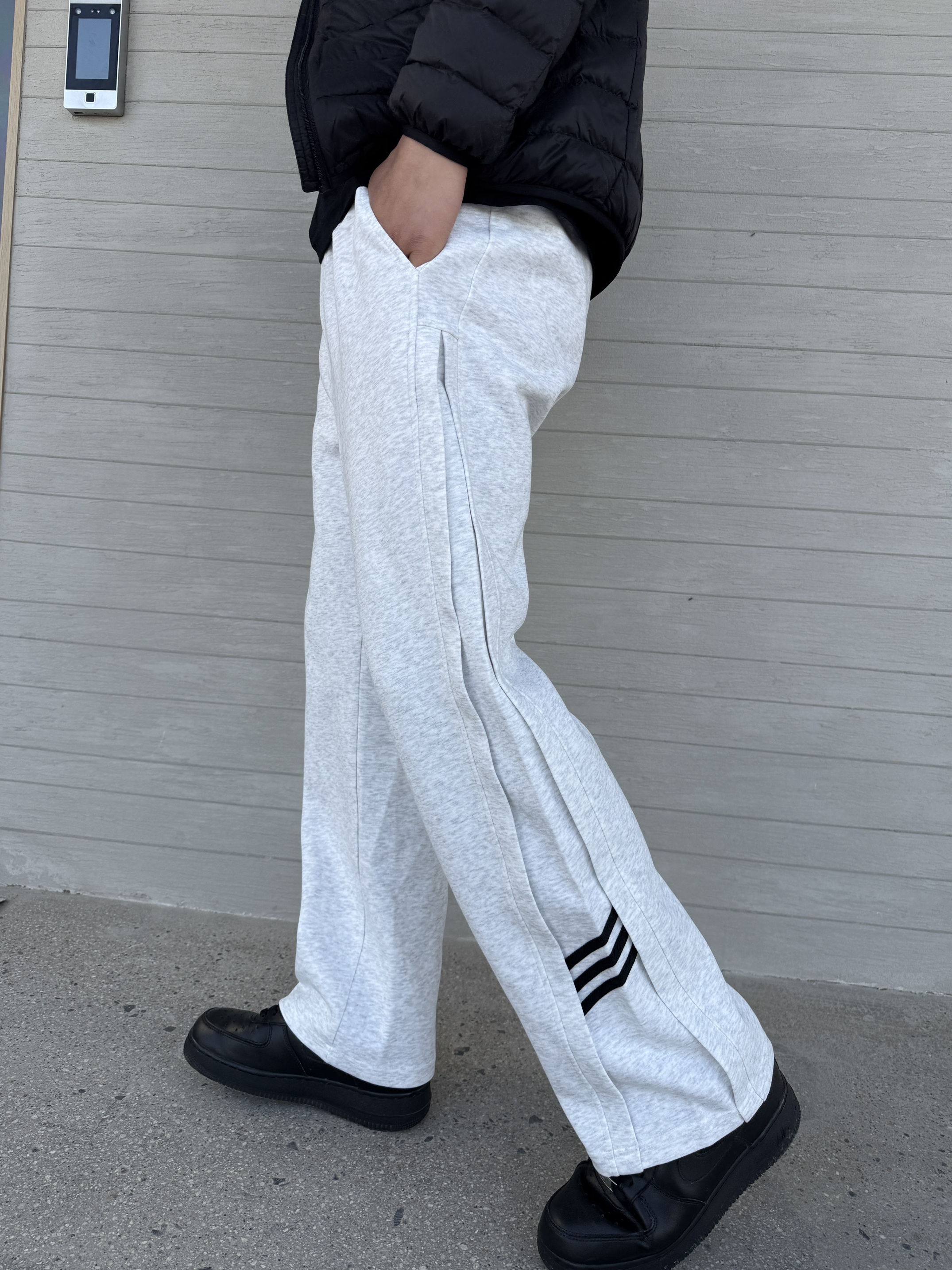 最近一直在找一条简约有设计感的卫裤 今天上身这条刚刚好符合我的审美 来看看我的今日份ootd吧 上衣我选择一件黑色排骨羽绒服 裤子我选择一件美式活页条纹卫裤 整体微宽松的版型上身显高还藏肉 侧面活页条纹的设计,简单好看不单调 抽绳松紧裤腰,平常动作再大也不怕~ 面料摸起来舒服垂感也不错 我180/140上身XL码刚刚好合适 鞋子我选择一双黑色板鞋上下呼应也有层次感 今天的穿搭你get✅到了吗?