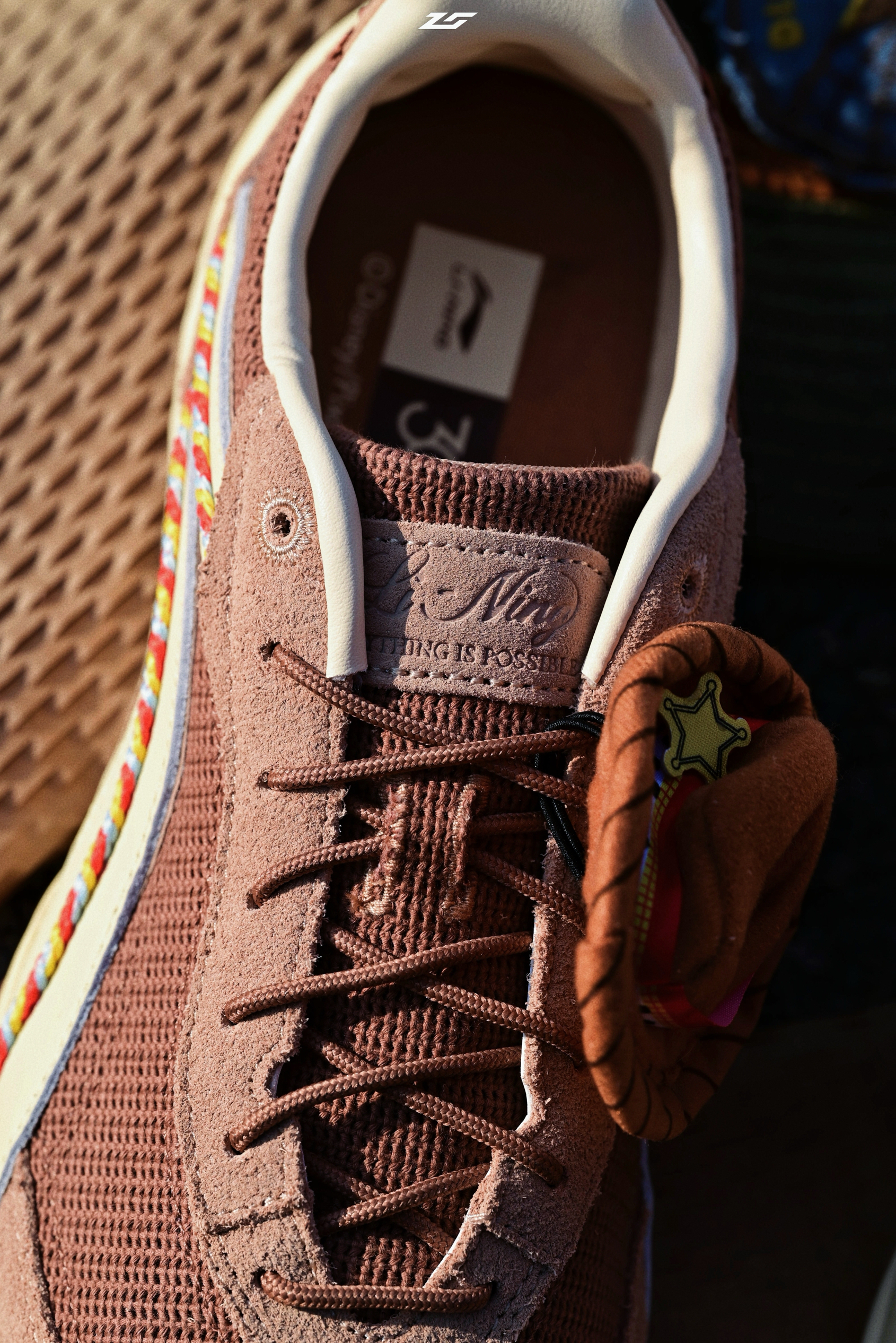 自入一双突然发现挺有意思的鞋,李宁的心流,和玩具总动员联名的配色。 给鞋带上牛仔帽,一眼就知道角色了,胡迪!趣味性满分!美中不足就是帽子不是很好固定。 材质做工上质感很棒,皮质的内衬,中底脚感非常舒服,是有中底科技在里面的。 这个鞋型还有很多好看的配色,价格不算贵。