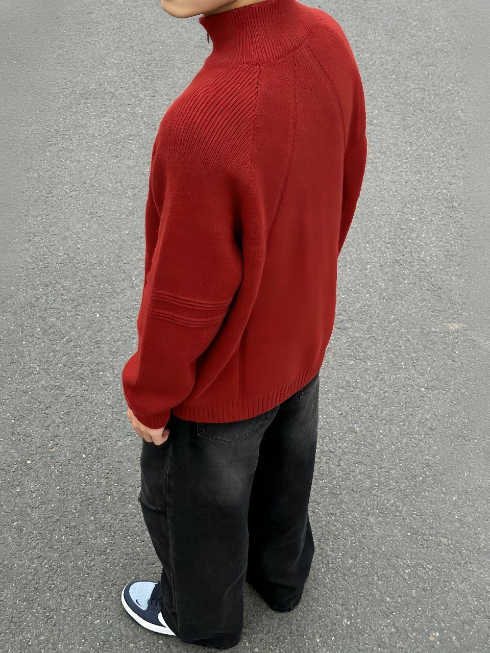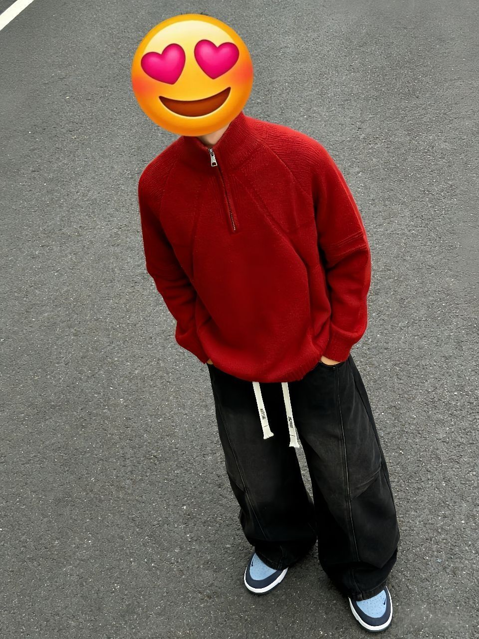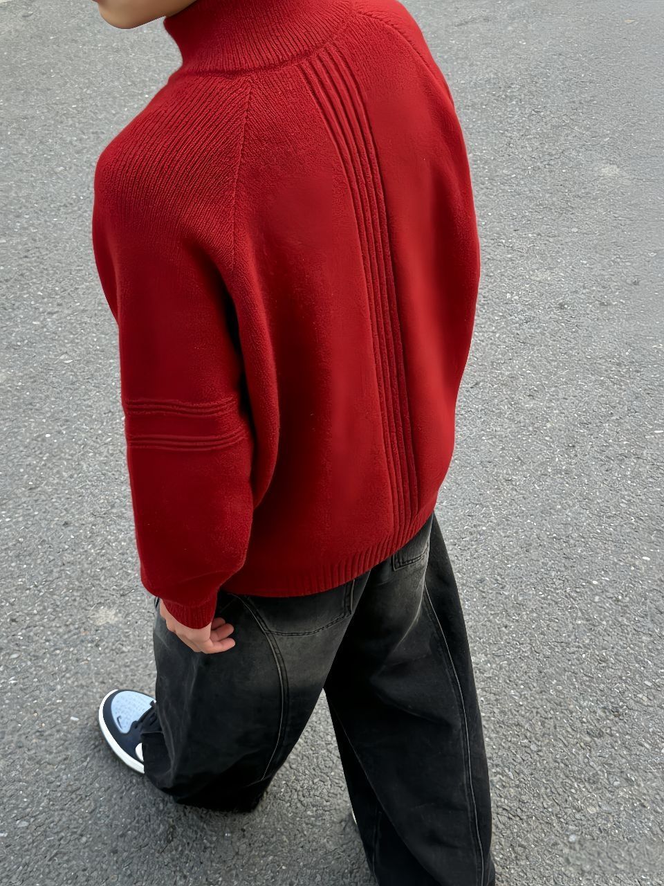 ✨✨出门在路边拍穿搭,这身搭配直接戳中我! ✨✨之前怕红色毛衣显土,火火兔这款半拉链毛衣软糯亲肤,慵懒感拉满还不挑肤色,黄皮穿也没压力。 ✨✨大卫贝肯加绒牛仔裤我原本担心显臃肿,结果阔腿版型藏肉又显瘦,加绒款秋冬穿还巨暖。 ✨✨搭蓝色Nike SB板鞋刚好中和了红色的张扬,蓝红撞色超有层次感,日常出街这么搭回头率超高,懒人直接抄作业就行~