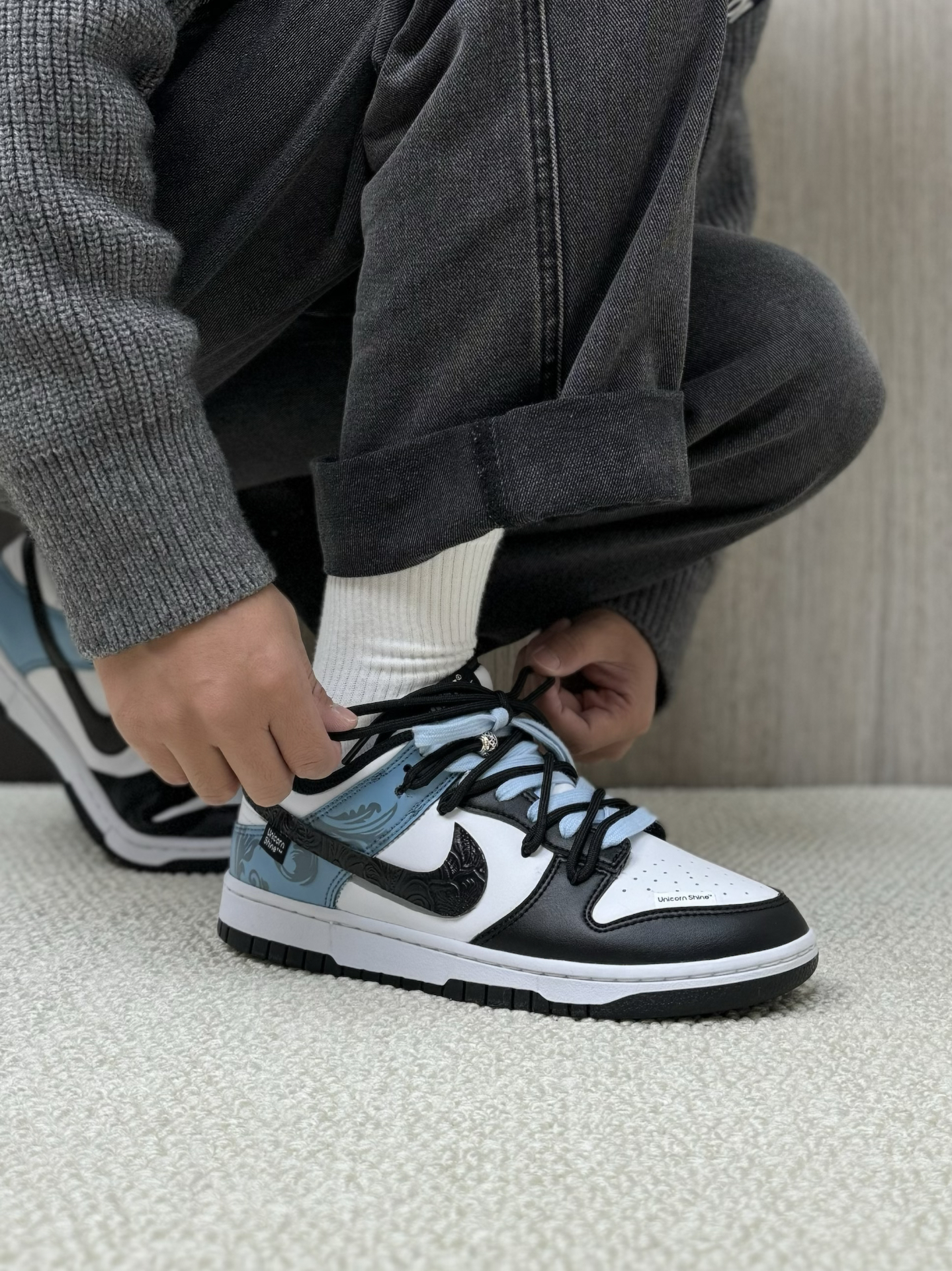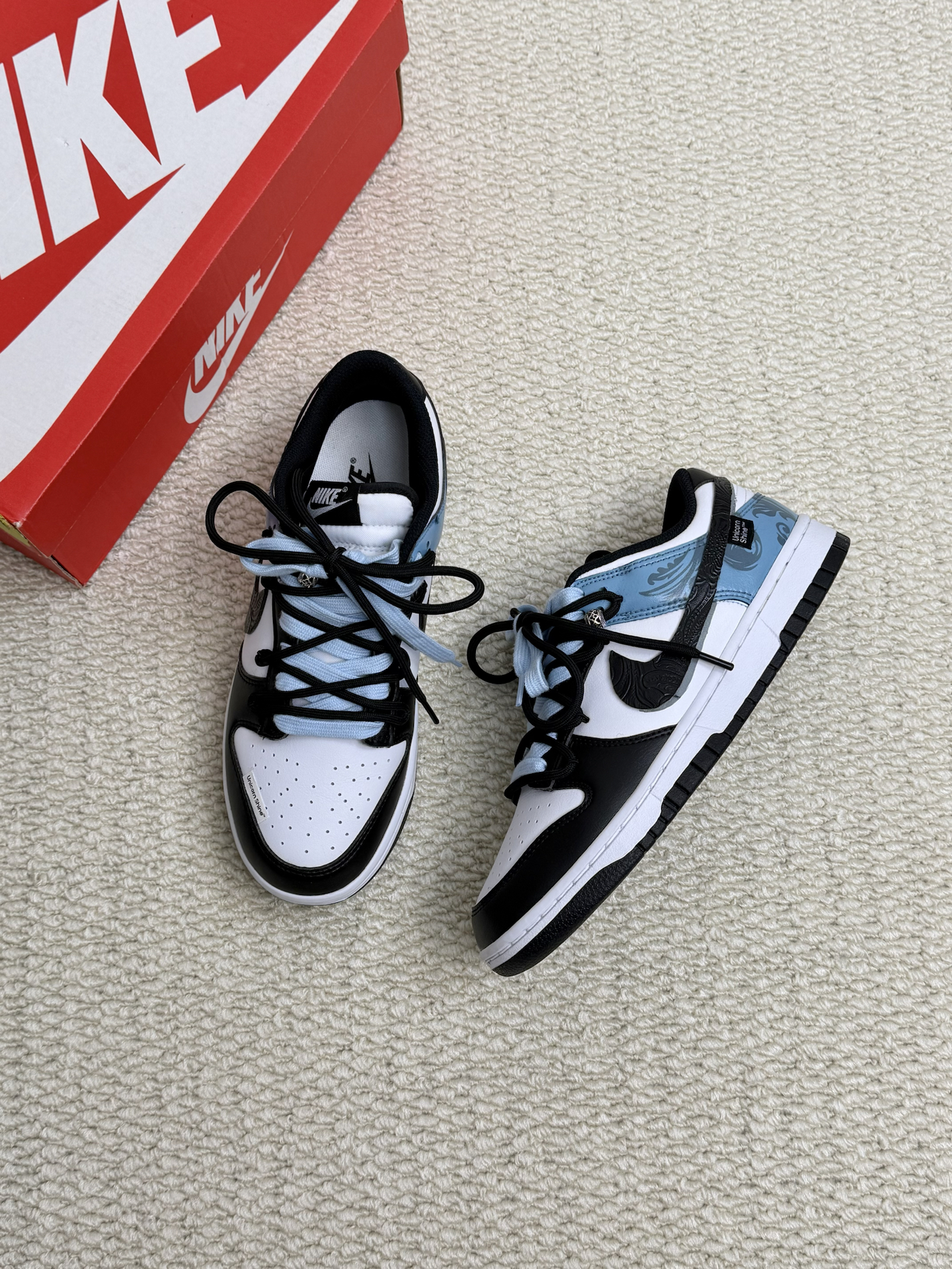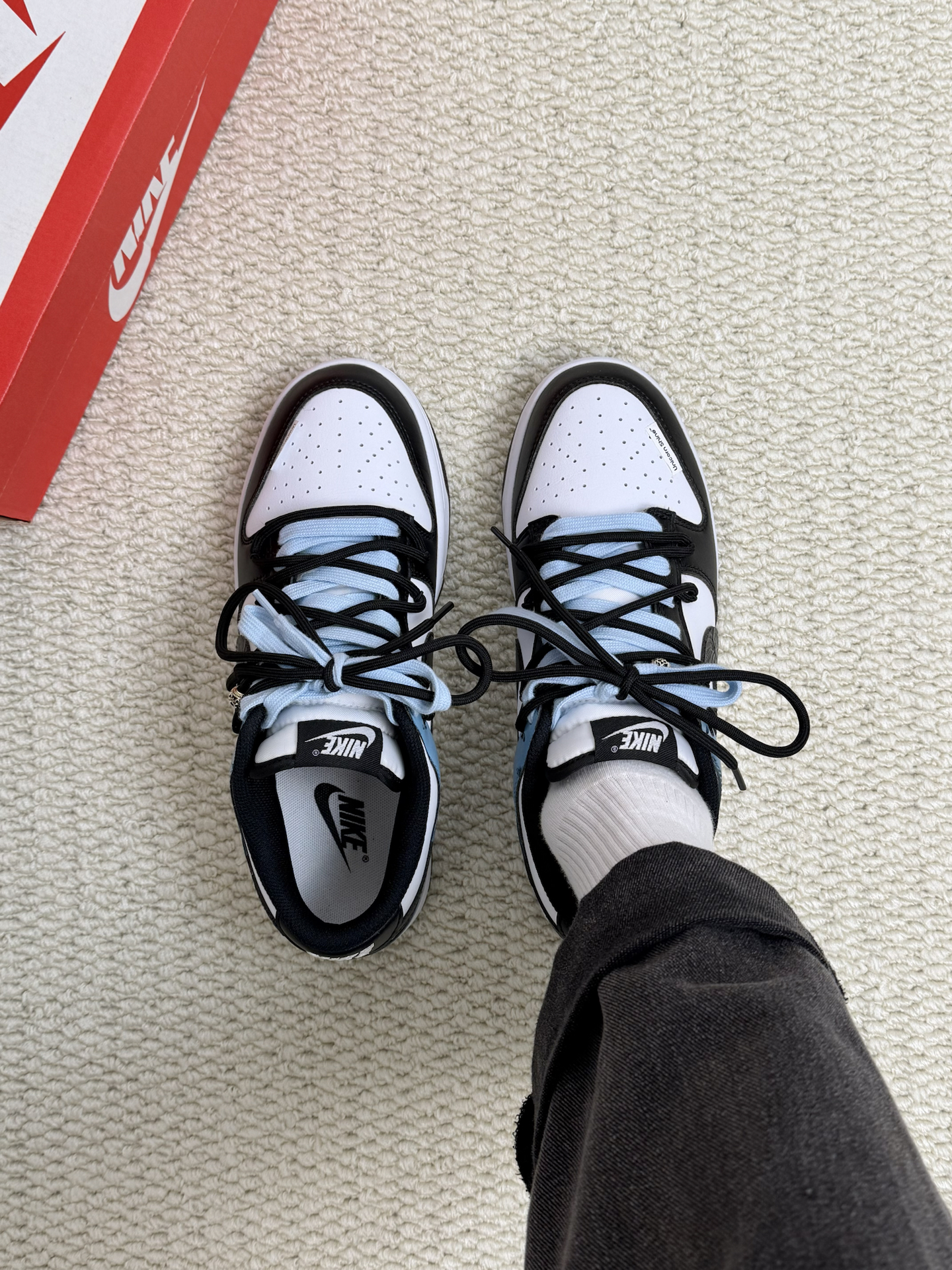分享一双 我最近特别喜欢的dunk板鞋 马年系列~ 鞋身是清新又略带复古的白蓝黑 侧面钩子和后跟处 还有很细节的暗纹点缀 再加上双鞋带 真蛮吸睛的 上脚也很好搭配 我日常会搭条宽松的直筒牛仔裤 是不是还蛮好看!? #竟然被鞋抢了c位 #薄底鞋穿四季 #秋冬日宝藏休闲板鞋 #马年限定板鞋 #Nike马年Dunk