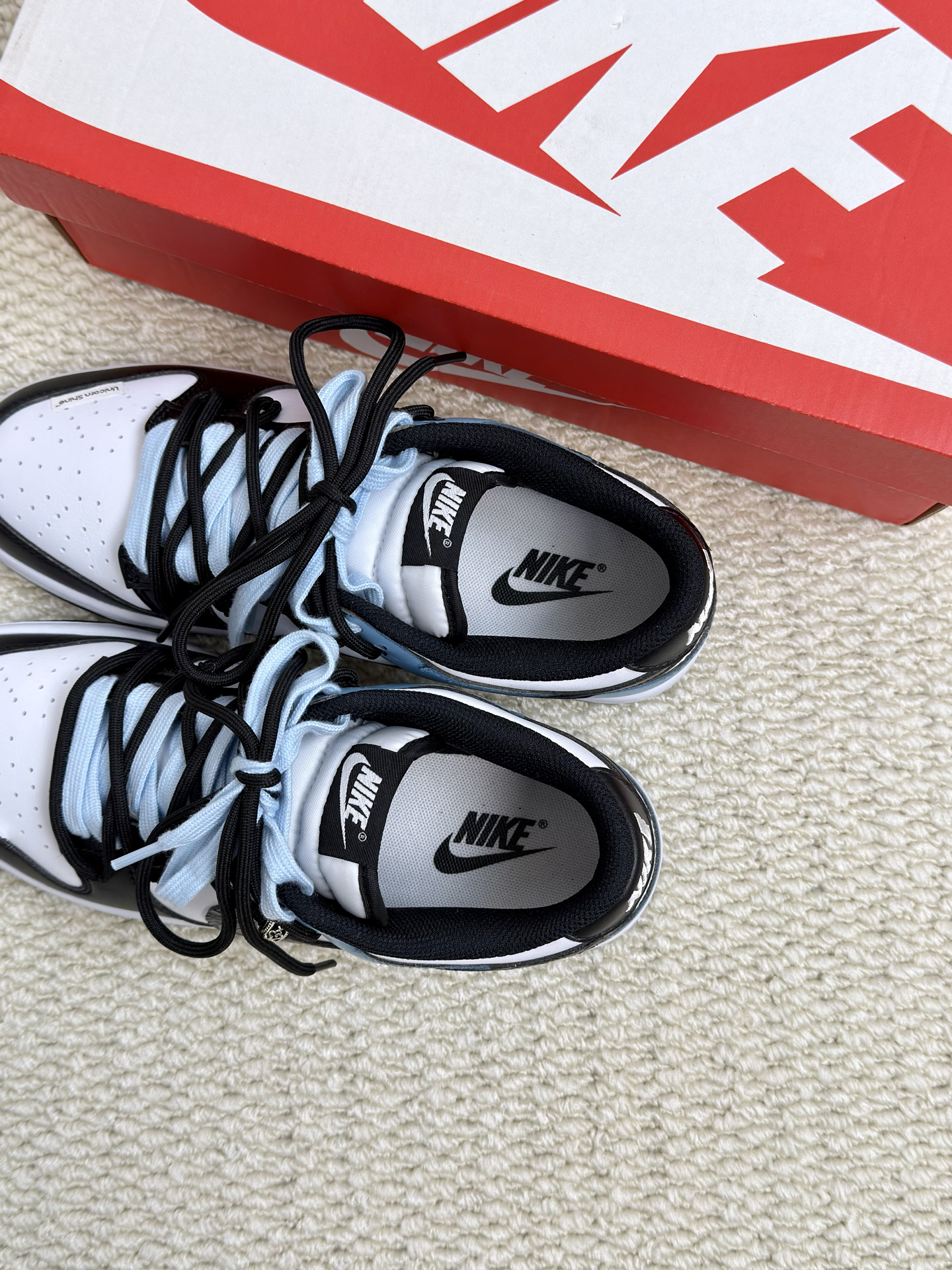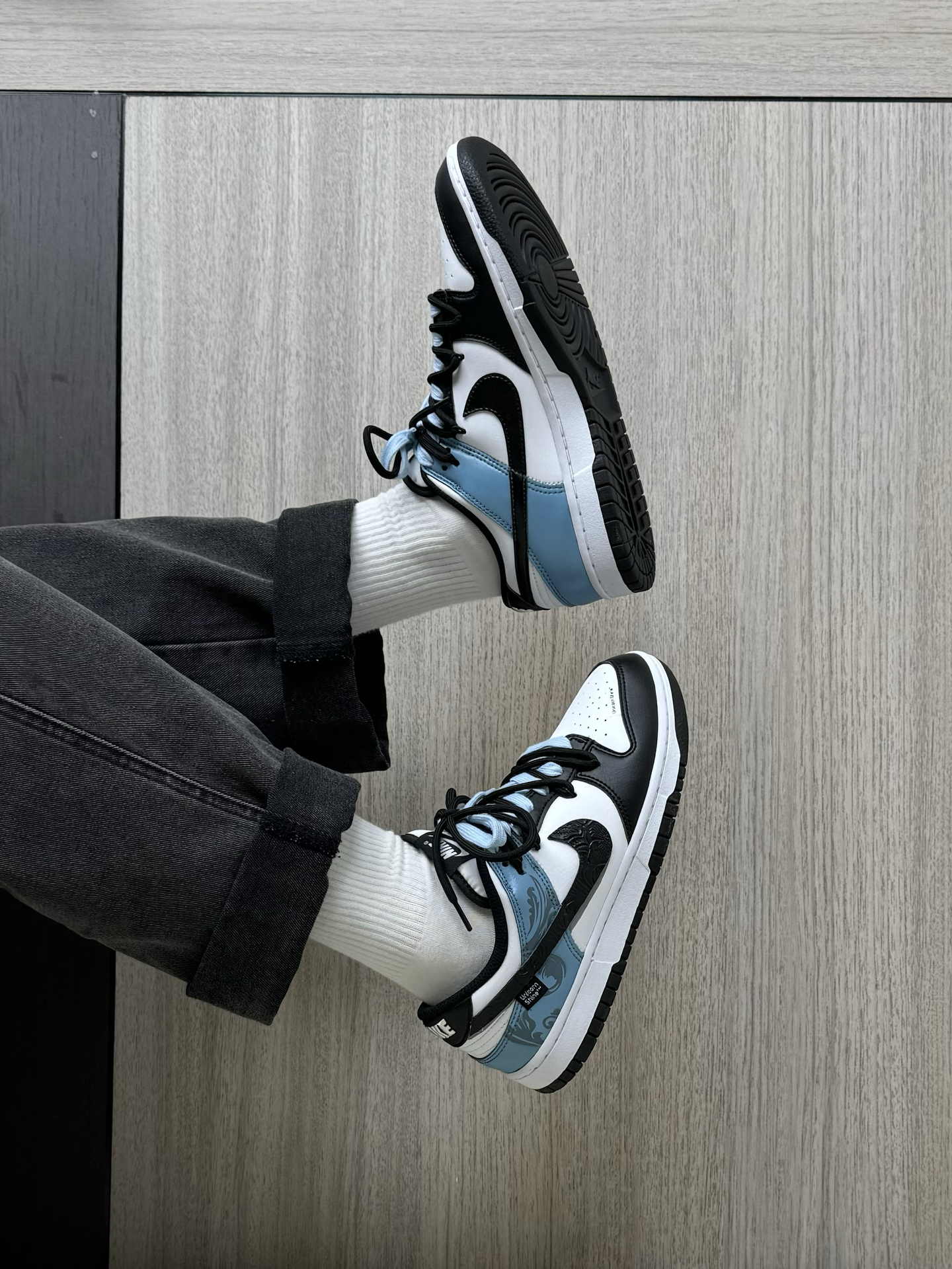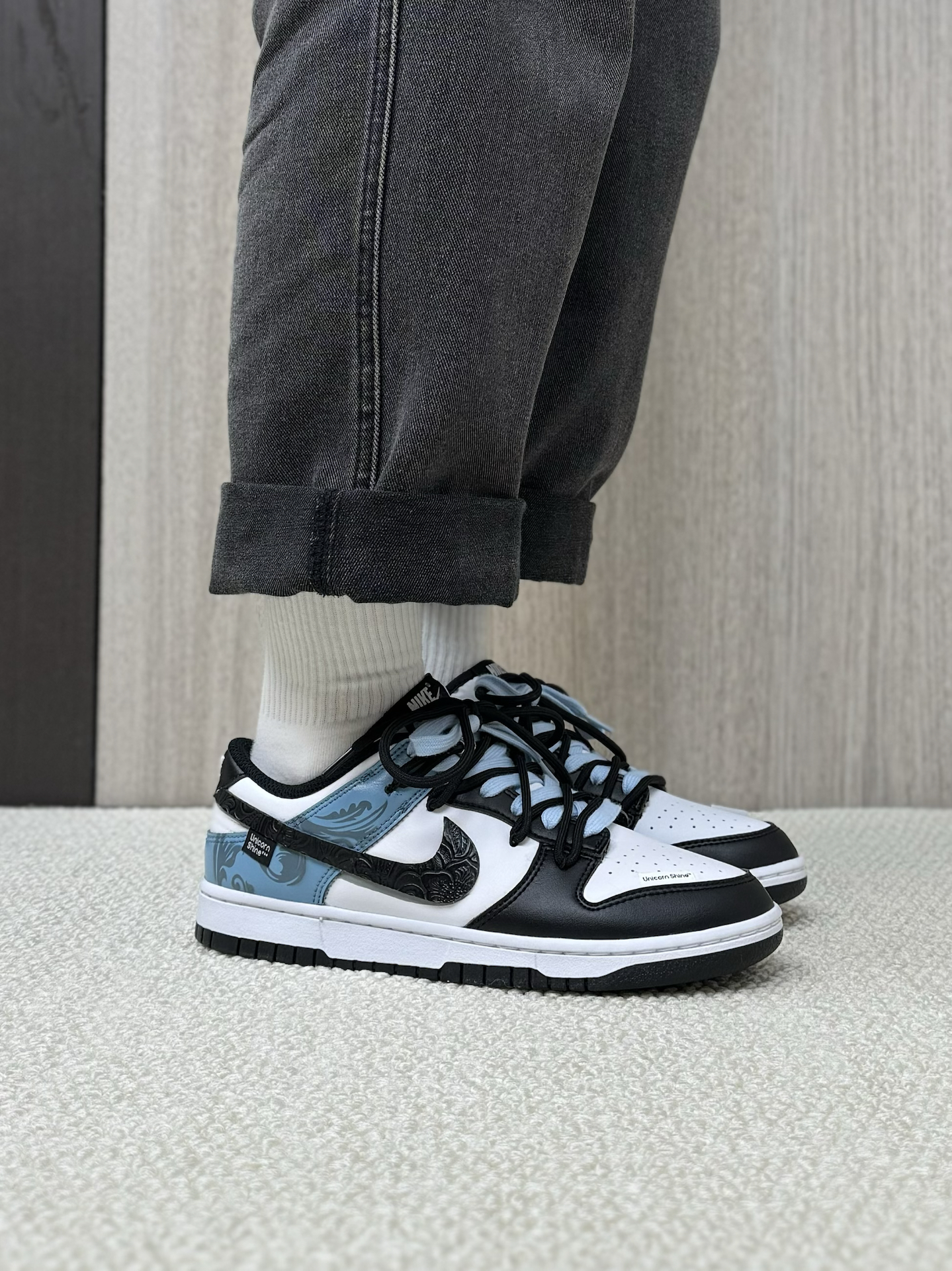 分享一双 我最近特别喜欢的dunk板鞋 马年系列~ 鞋身是清新又略带复古的白蓝黑 侧面钩子和后跟处 还有很细节的暗纹点缀 再加上双鞋带 真蛮吸睛的 上脚也很好搭配 我日常会搭条宽松的直筒牛仔裤 是不是还蛮好看!? #竟然被鞋抢了c位 #薄底鞋穿四季 #秋冬日宝藏休闲板鞋 #马年限定板鞋 #Nike马年Dunk