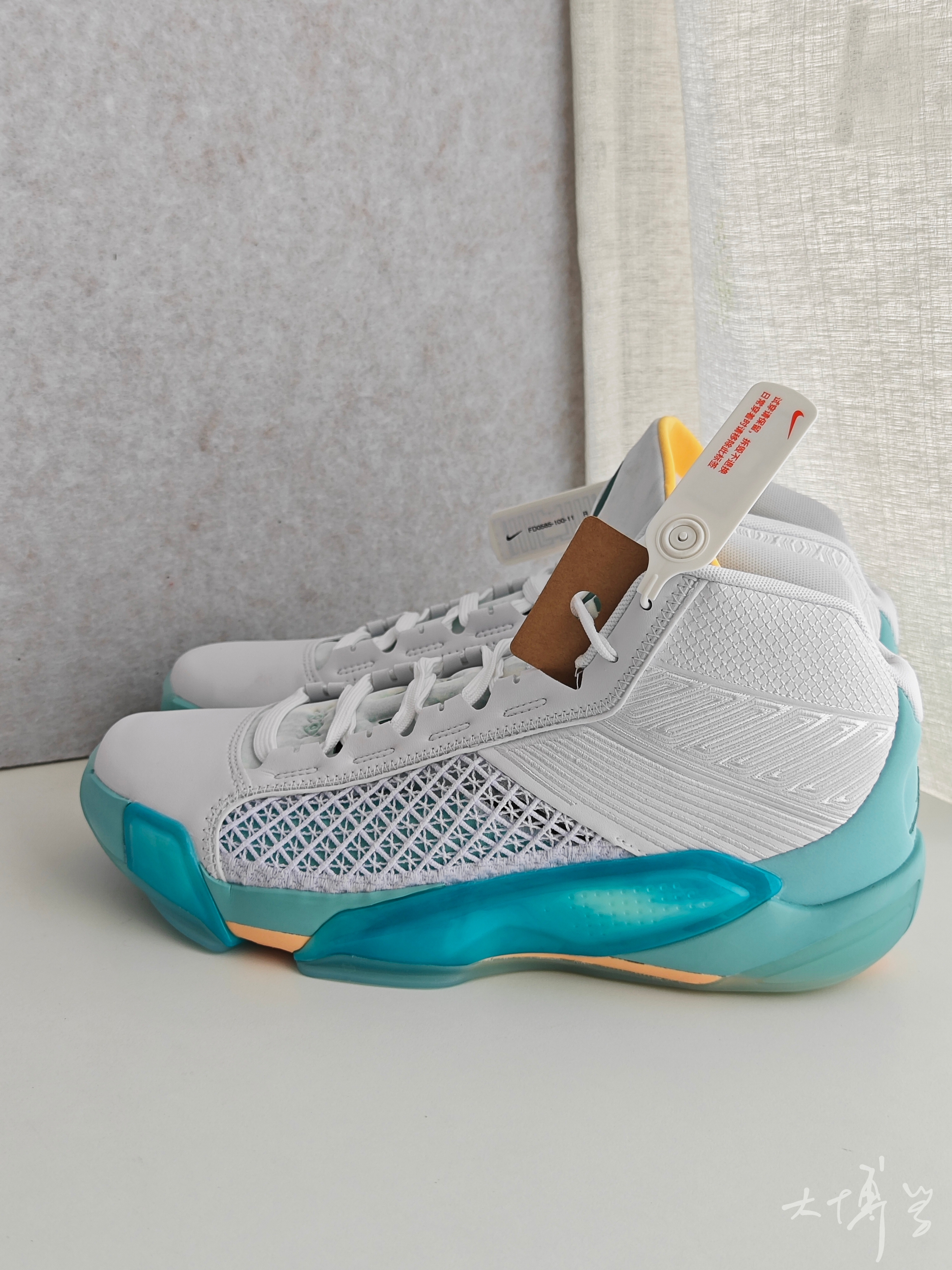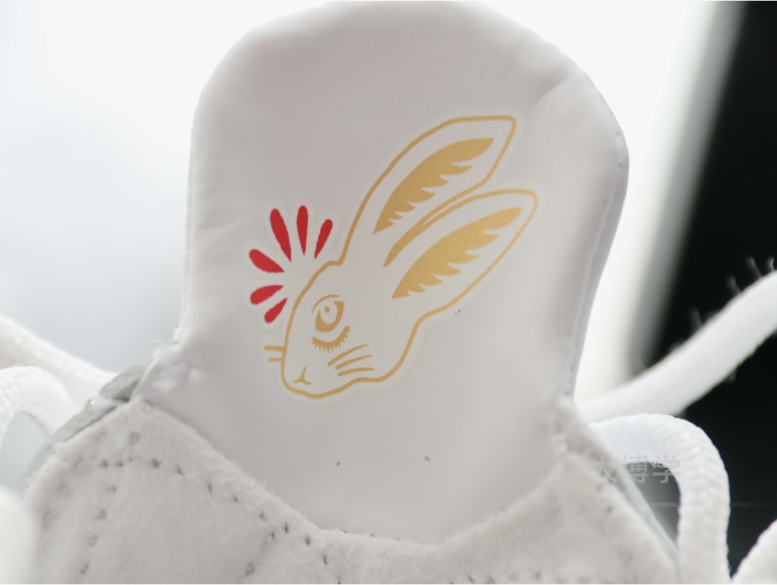 上一次AJ 23复刻 我印象里还是红色的芝加哥配色 那款配色太红了 兔年配色是有点玉色或者说浅薄荷色 碳板还是那么大 鞋舌的大指纹变成了兔头 很可爱是不是