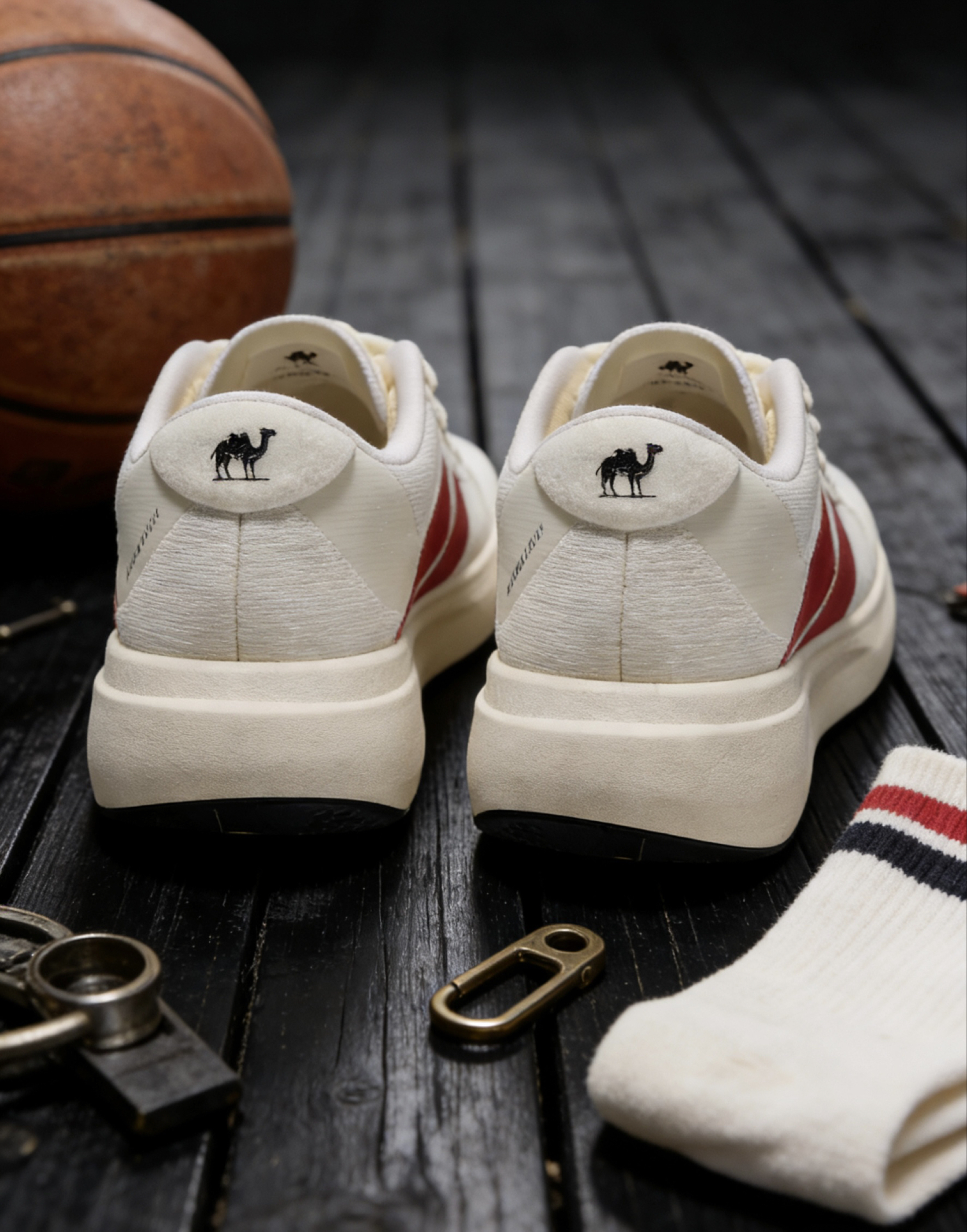 这双CAMEL骆驼 白红撞色跑鞋真的戳中我!网布鞋面透气不闷脚,夏天穿也毫无压力~亮眼的红纹点缀,瞬间让基础款变得超有活力✨ 厚底设计绝绝子,悄悄拔高还不笨重!搭配黑色阔腿裤,裤脚卷一圈露出鞋帮,红白撞黑的层次感直接拉满💯 上半身选件全黑上衣,完美中和鞋子的张扬感,整体简约又耐看!日常通勤、逛街暴走都合适,不管搭休闲装还是运动装,都是穿搭里的吸睛小能手👟👟