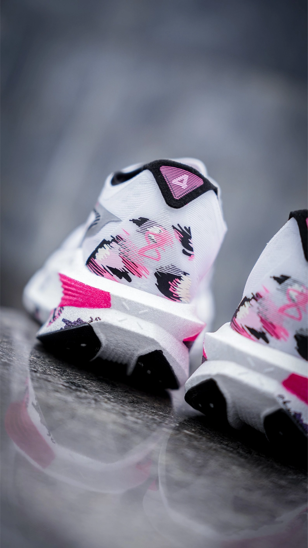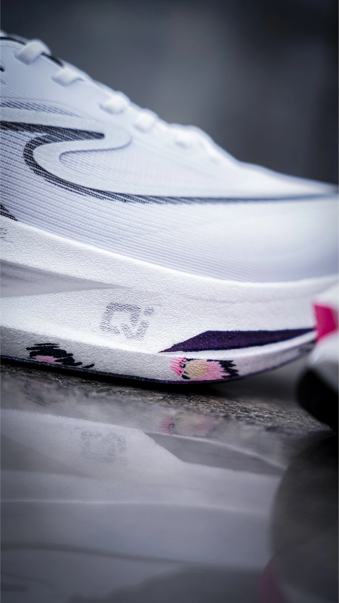 要说哪双碳板跑鞋颜值最顶 很多人都会说是芷境吧,那芷境里面哪个配色又是佼佼者呢 我个人首推粉红豹了,这次4代我也是入手这个配色,兄弟们觉得颜值如何呢? 不过呢这次的粉鸿豹 配色做的蛮克制的,整体还是以大面积的白色为主,后跟和内侧有些粉色和豹纹图案点缀,还做了模糊处理,会低调很多。 那在性能上,在这个价位我是挺满意的,对于我这种全掌跑法来说,后掌的弹射碳板还蛮有用的,后程的稳定性控制的不错。那有体验...