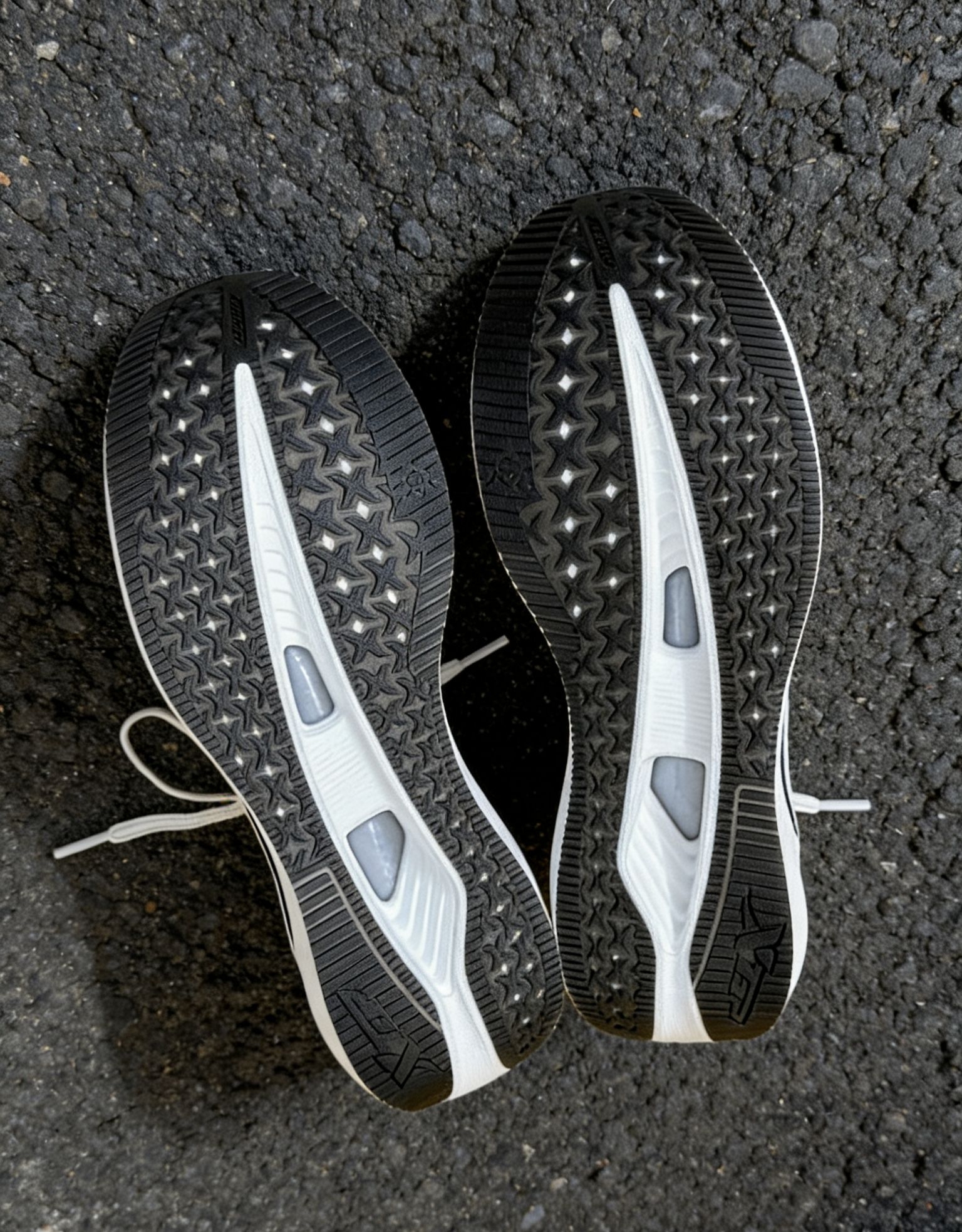 今天唠一唠这双发售不久的特步跑鞋! 拿到手第一感觉就是轻,外观属于干净利落似的,整体线条特别流畅,看着就像为“跑”字来设计的。后跟那个标志性的骨架支撑,做得更显速度感,拿在手里掂一掂,感觉较轻。 上脚第一感觉是鞋楦包容度好。偏宽的脚型穿进去,前掌没感觉挤,后跟却又包得很稳,完全不掉跟。 仔细看,这代细节是真的到位-外底还是特步家那个马拉松级别的CPU大底,细密的纹路,听说耐磨强到离谱,官方说比航空...