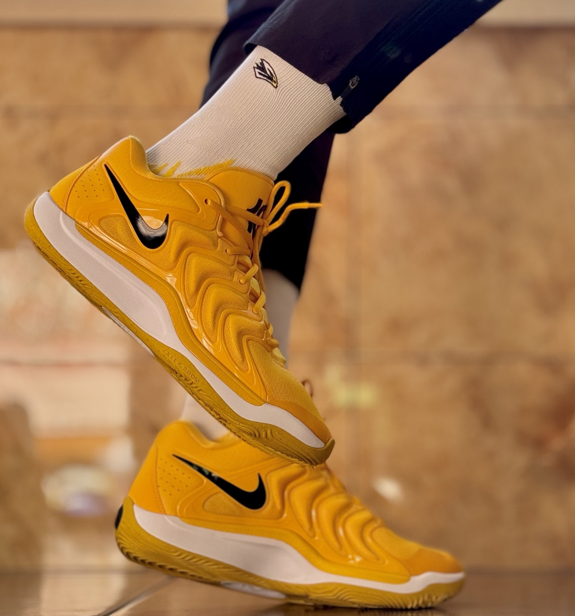 很久没有和大家分享过球鞋OOTD了 今天来更新一波这个系列~ 刚好最近也是新入手了一双KD17的TB黄 搭配上这双维动的隼系列球袜也是很帅啊 而且美版的球鞋都是偏紧一些