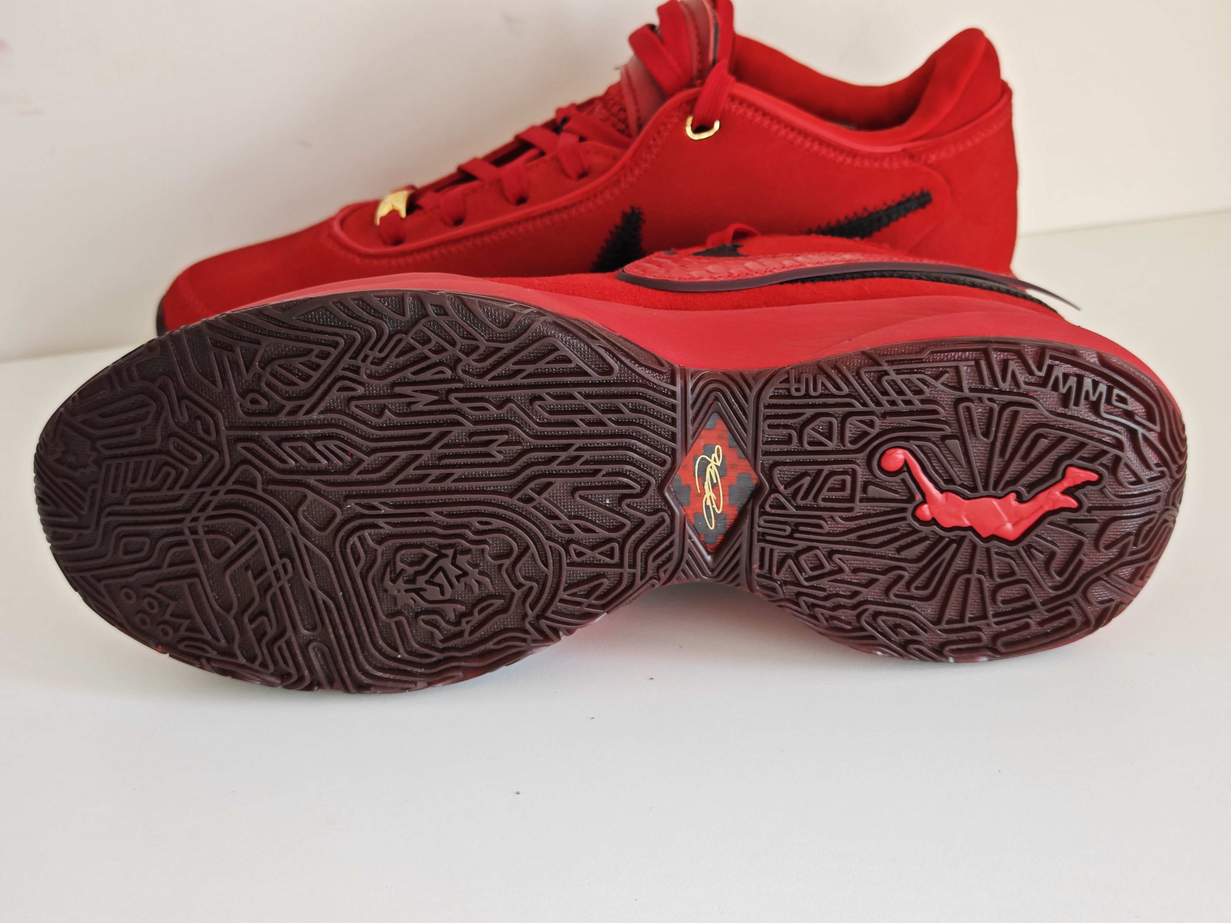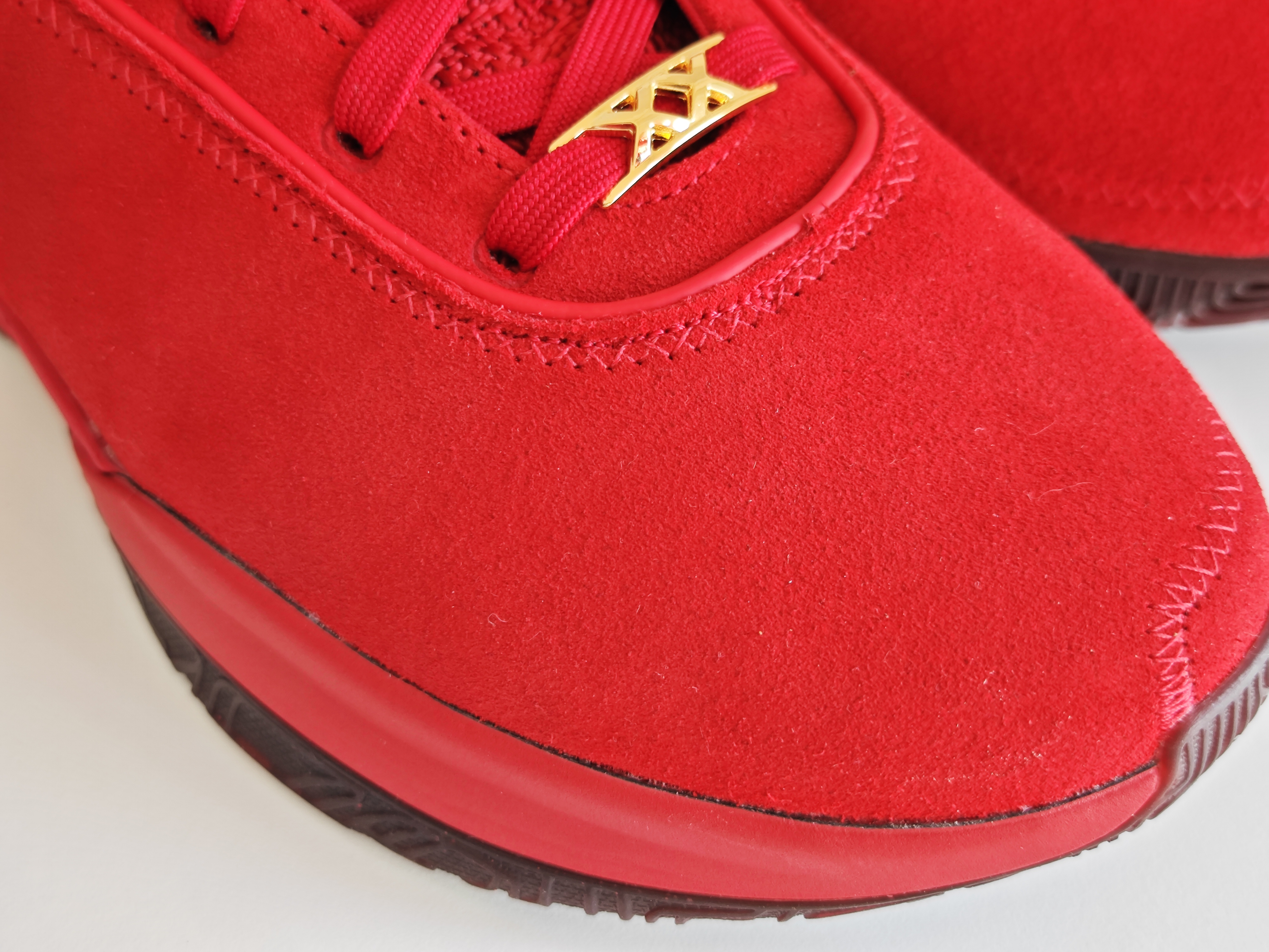勒布朗作为利物浦球队的老板之一 首次推出了詹姆斯系列球鞋与足球的联动 暗红色麂皮鞋面 颜值与质感也是在于普款之上 光线的影响很难还原真实的质感 不失格调与典雅的一双联名勒布朗20