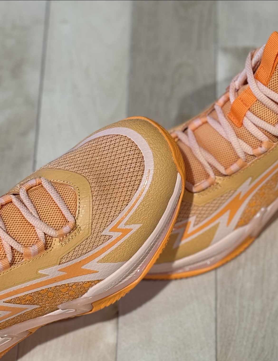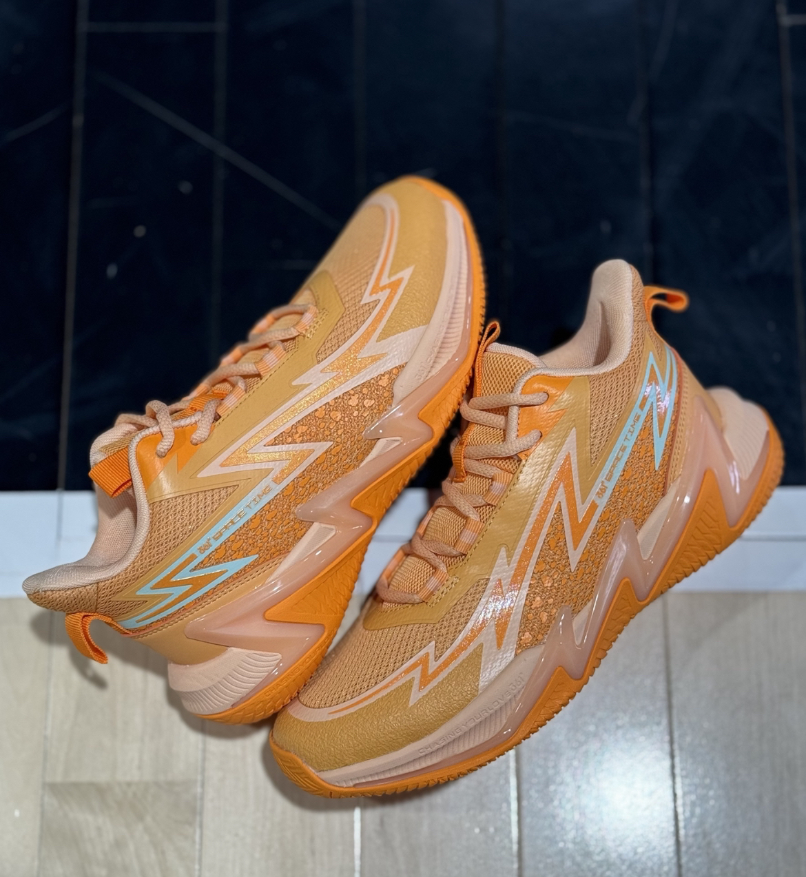 又来和大家分享球鞋喽~ 今天的这个亮橙色,我都觉得超甜美好看 就是这双361度KIDS疾风水泥克星💨 反正我是真的被它的颜值和配色征服啦😻 整体的橙色,真的是很清新好看。 鞋面的织物加上热压材质,不仅轻质透气,还很有支撑感 鞋面上还有很多小闪电形状的流线,再加上侧面的上延TPU材质串联了中底和鞋子中段侧面,横向移动带来的支撑感也不错,又在视觉上给人一种疾速的感觉⚡️ 中底的泡棉材质,上脚的软弹感...