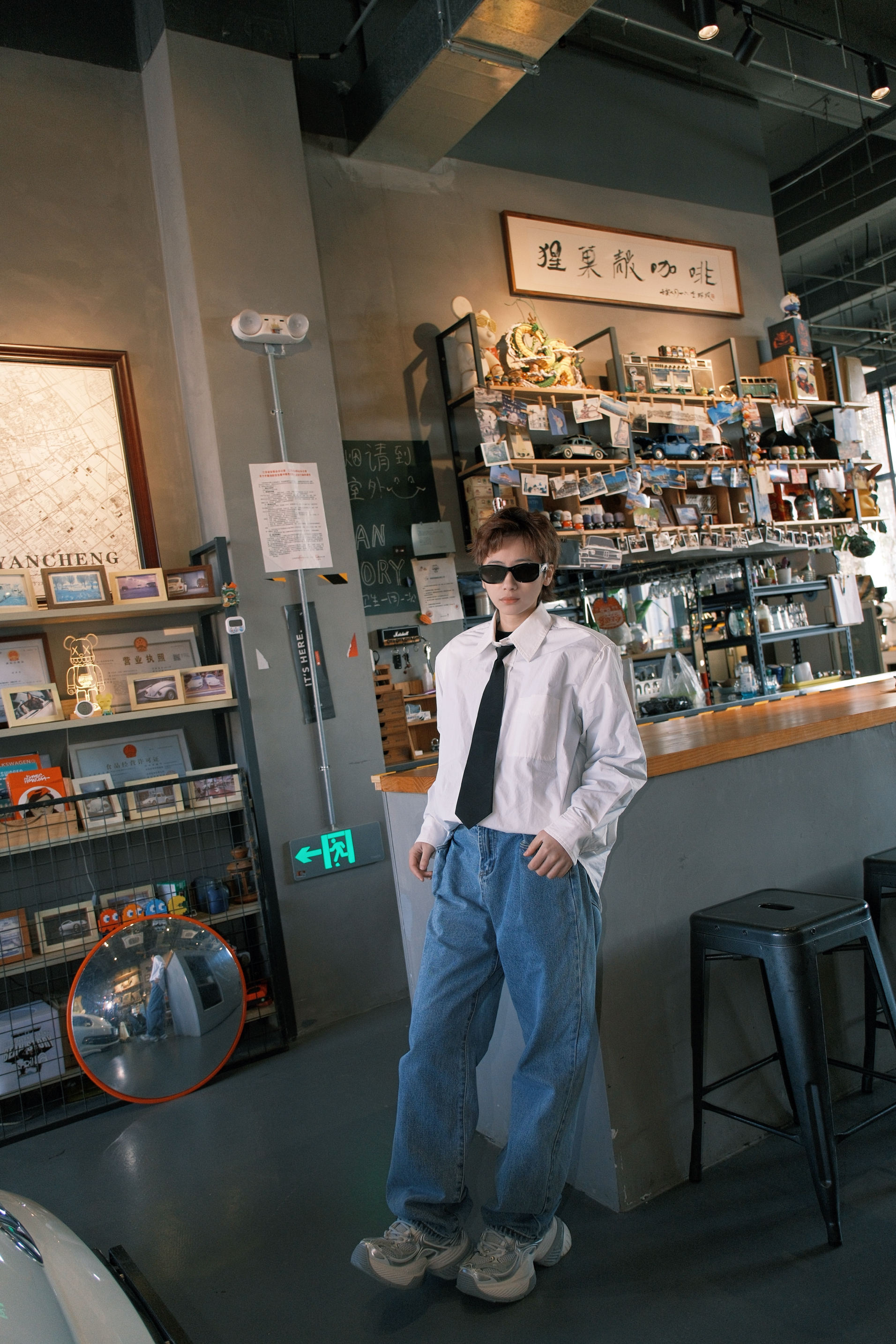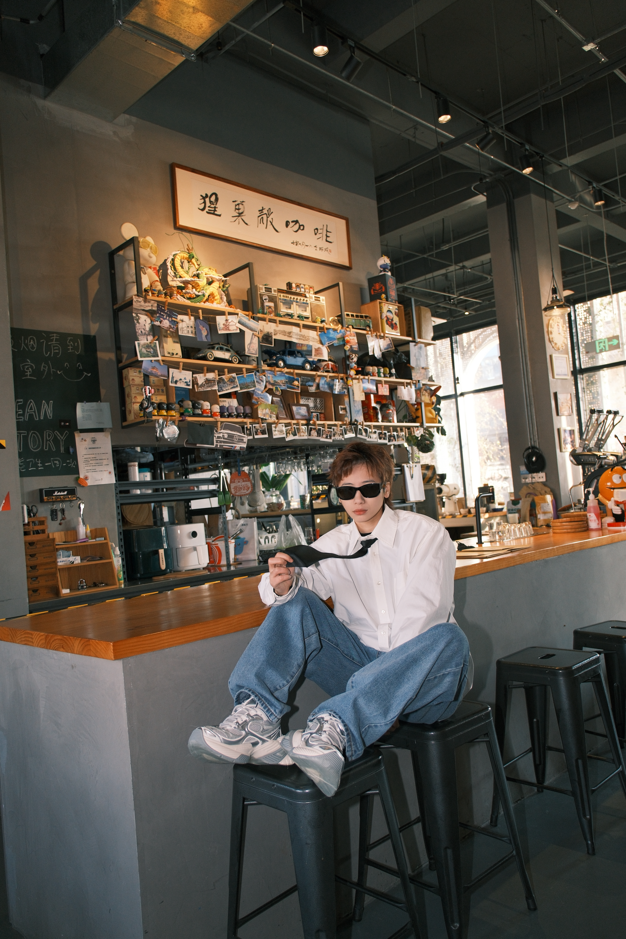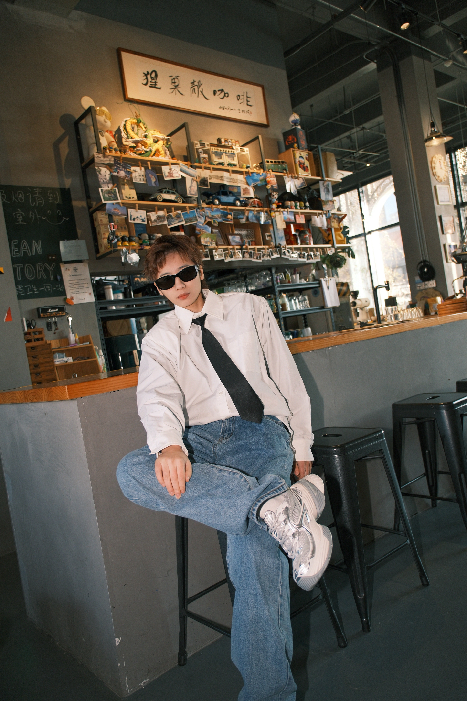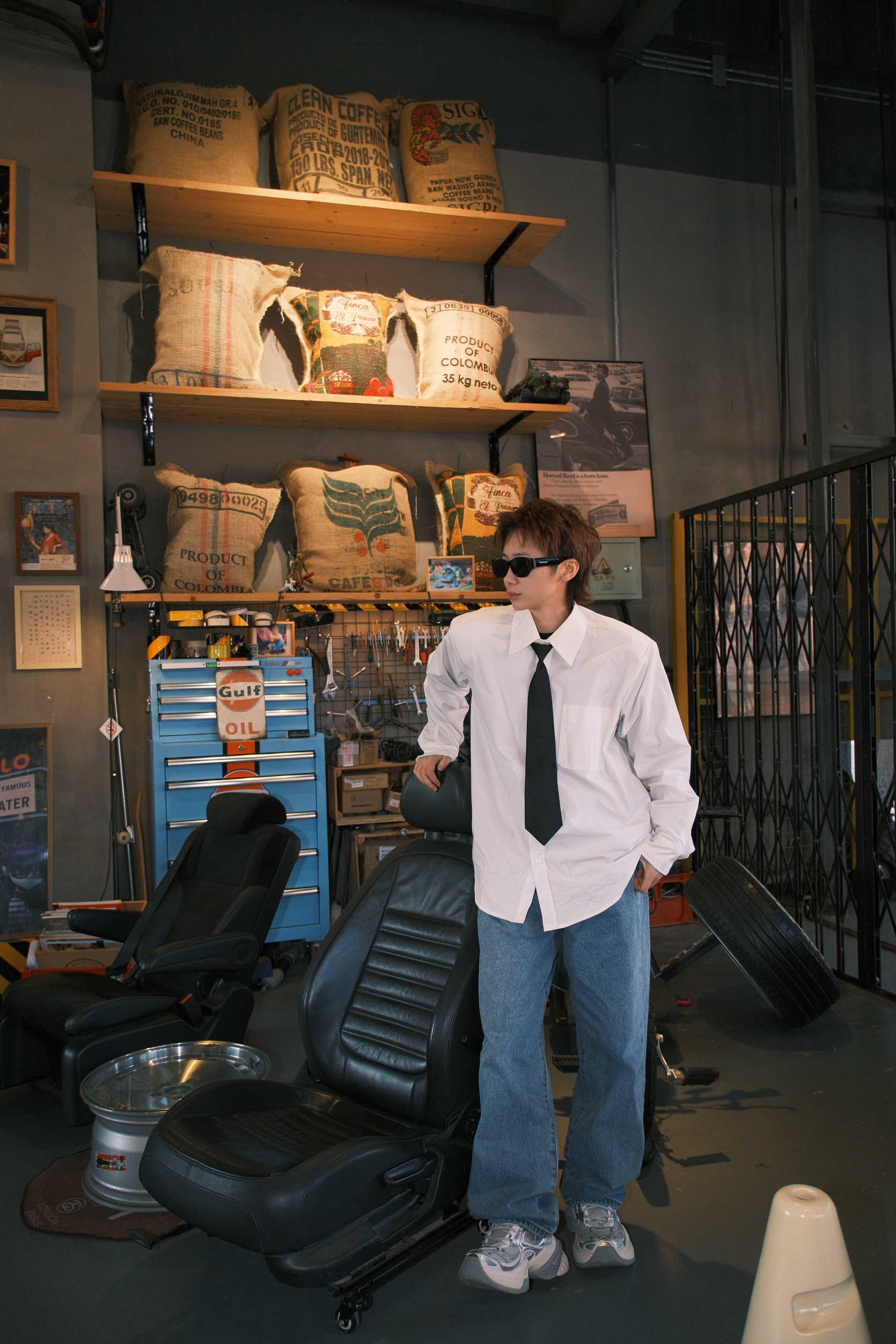 张杰这一身演唱会的look 日常通勤都很可 一件白色衬衫搭配直筒牛仔裤 黑色的领带装饰,看起来不会很沉闷 鞋子选了同款的OGR老爹鞋 白灰拼色里加入了点银色 有点金属感,机能风满满 厚底5cm左右,轻轻松松的增高 而且很显腿细