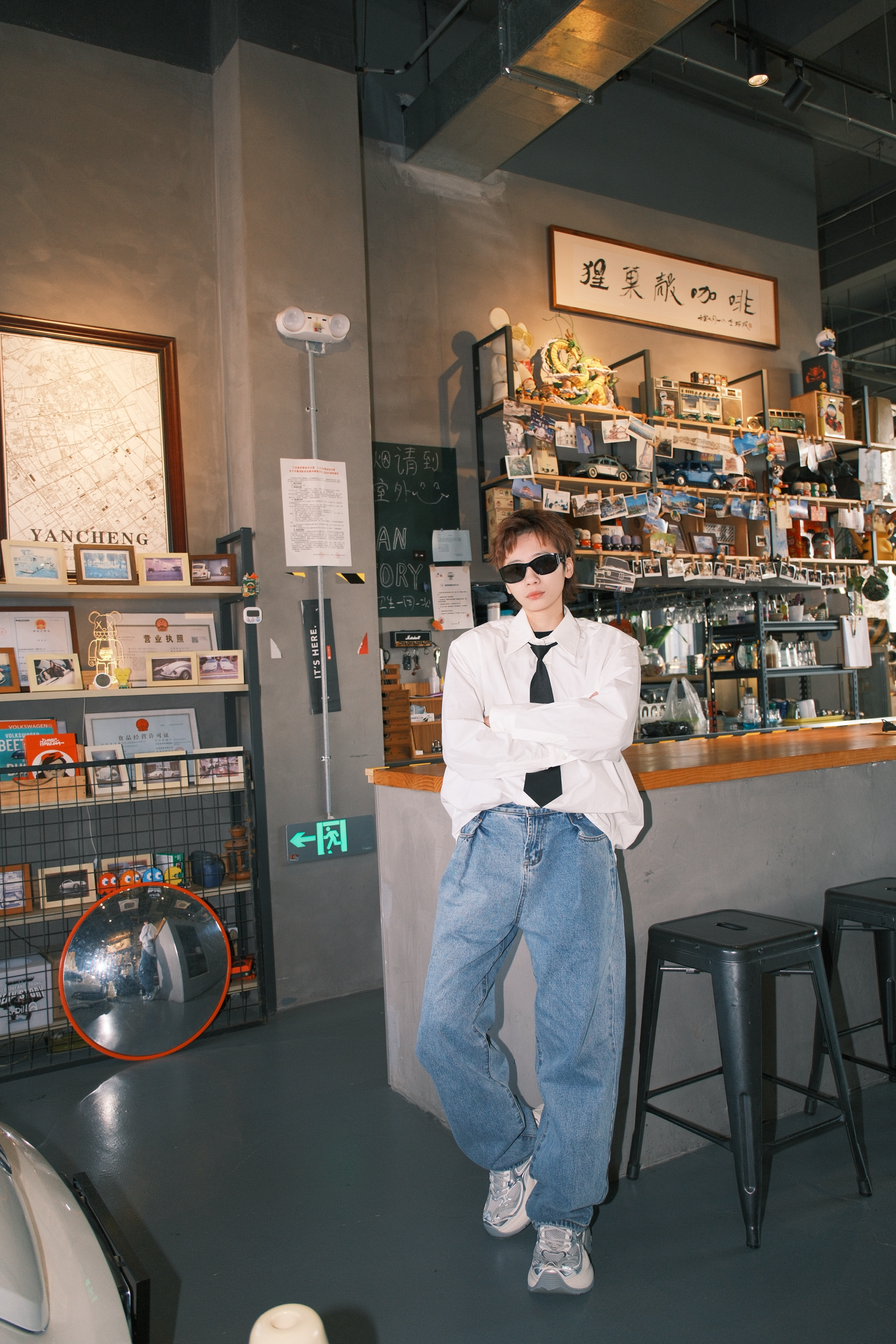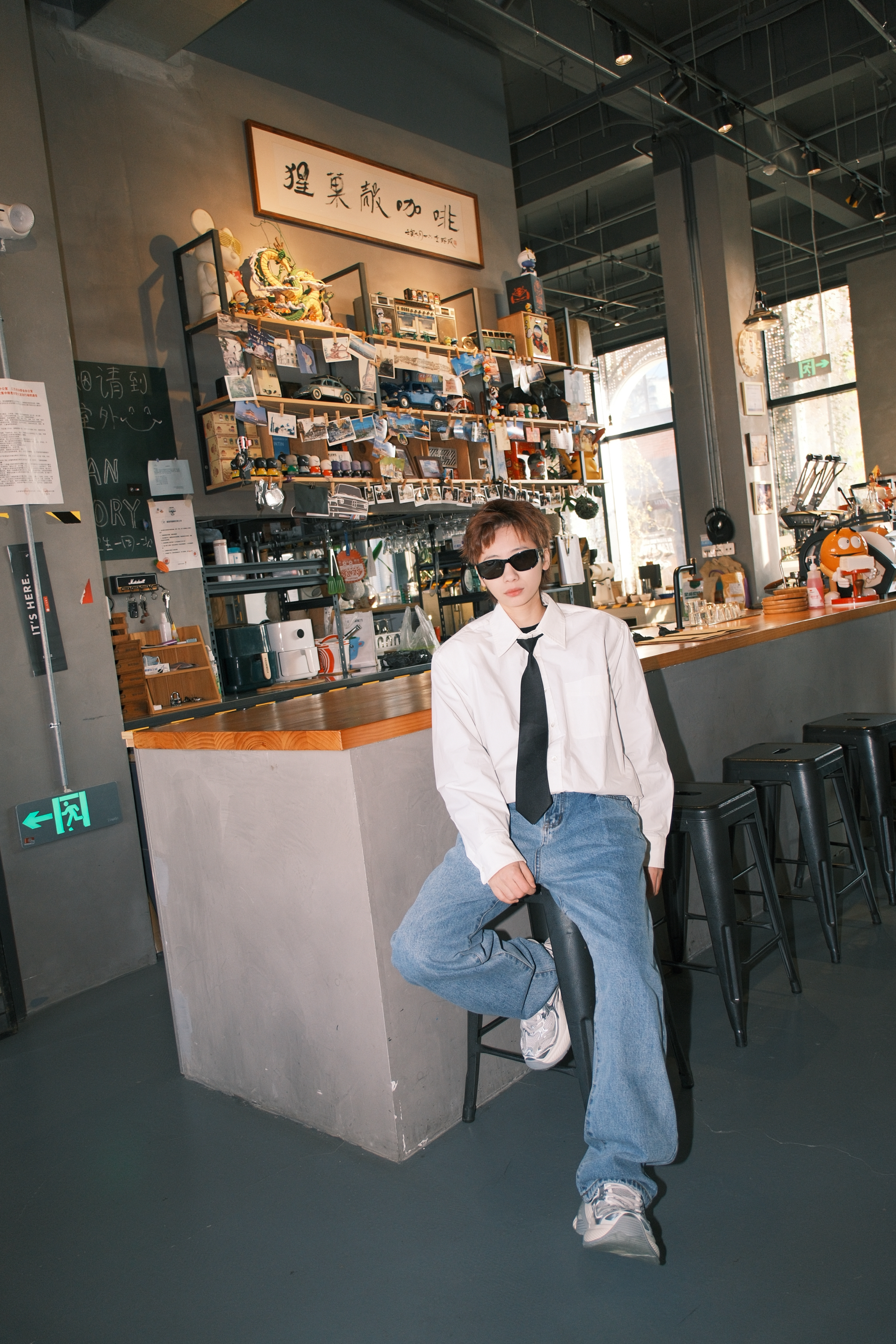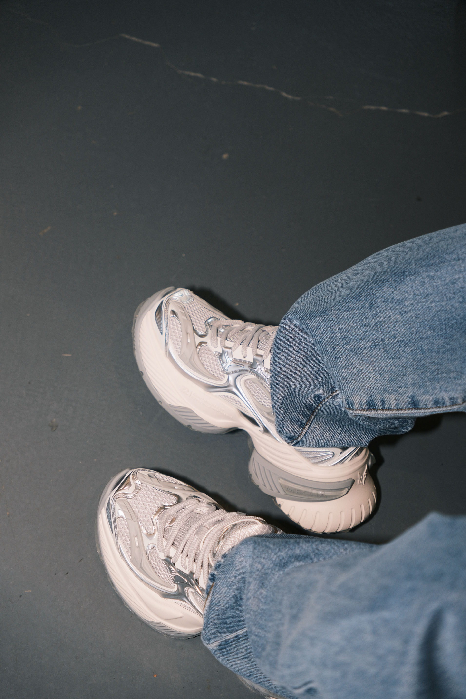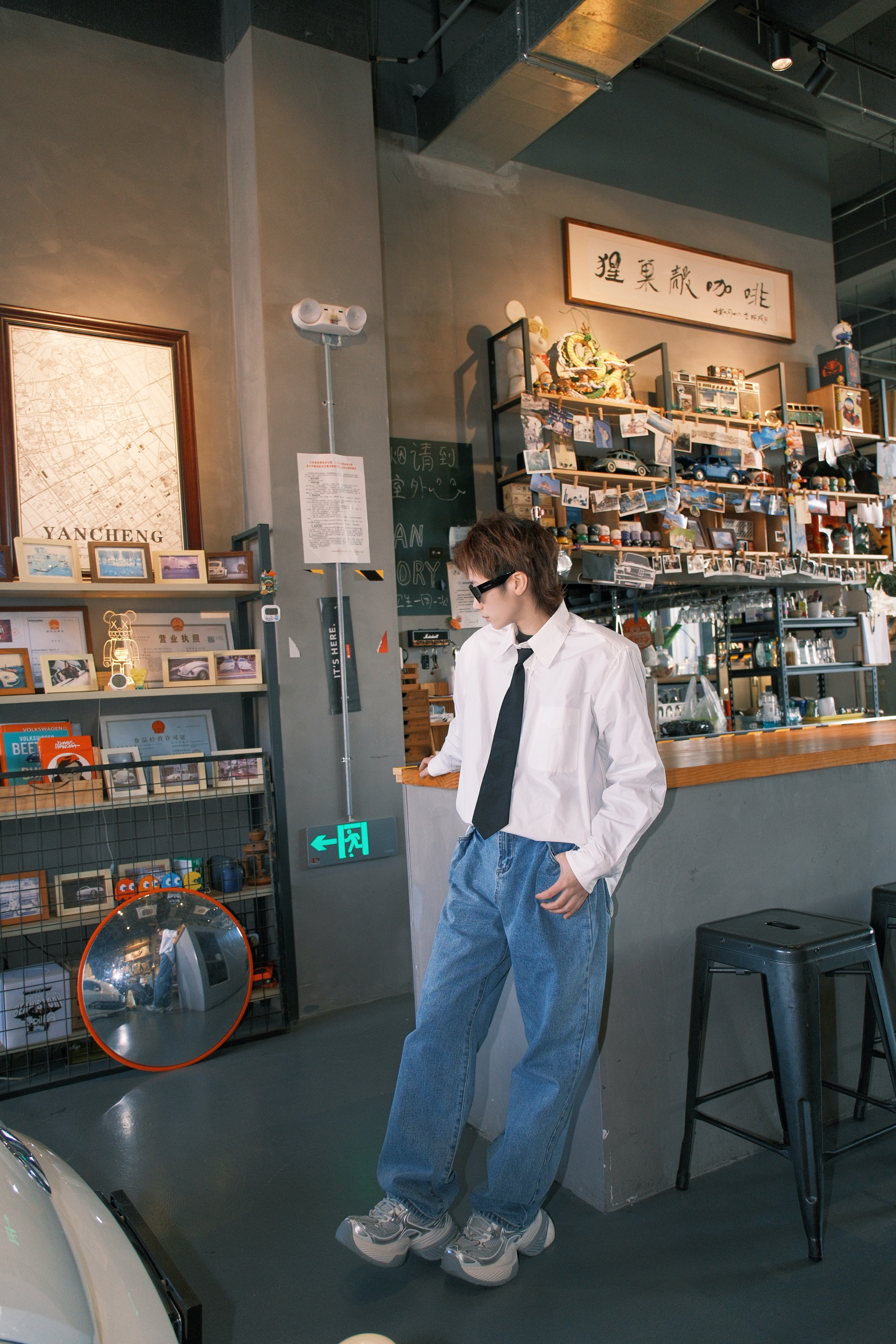 张杰这一身演唱会的look 日常通勤都很可 一件白色衬衫搭配直筒牛仔裤 黑色的领带装饰,看起来不会很沉闷 鞋子选了同款的OGR老爹鞋 白灰拼色里加入了点银色 有点金属感,机能风满满 厚底5cm左右,轻轻松松的增高 而且很显腿细