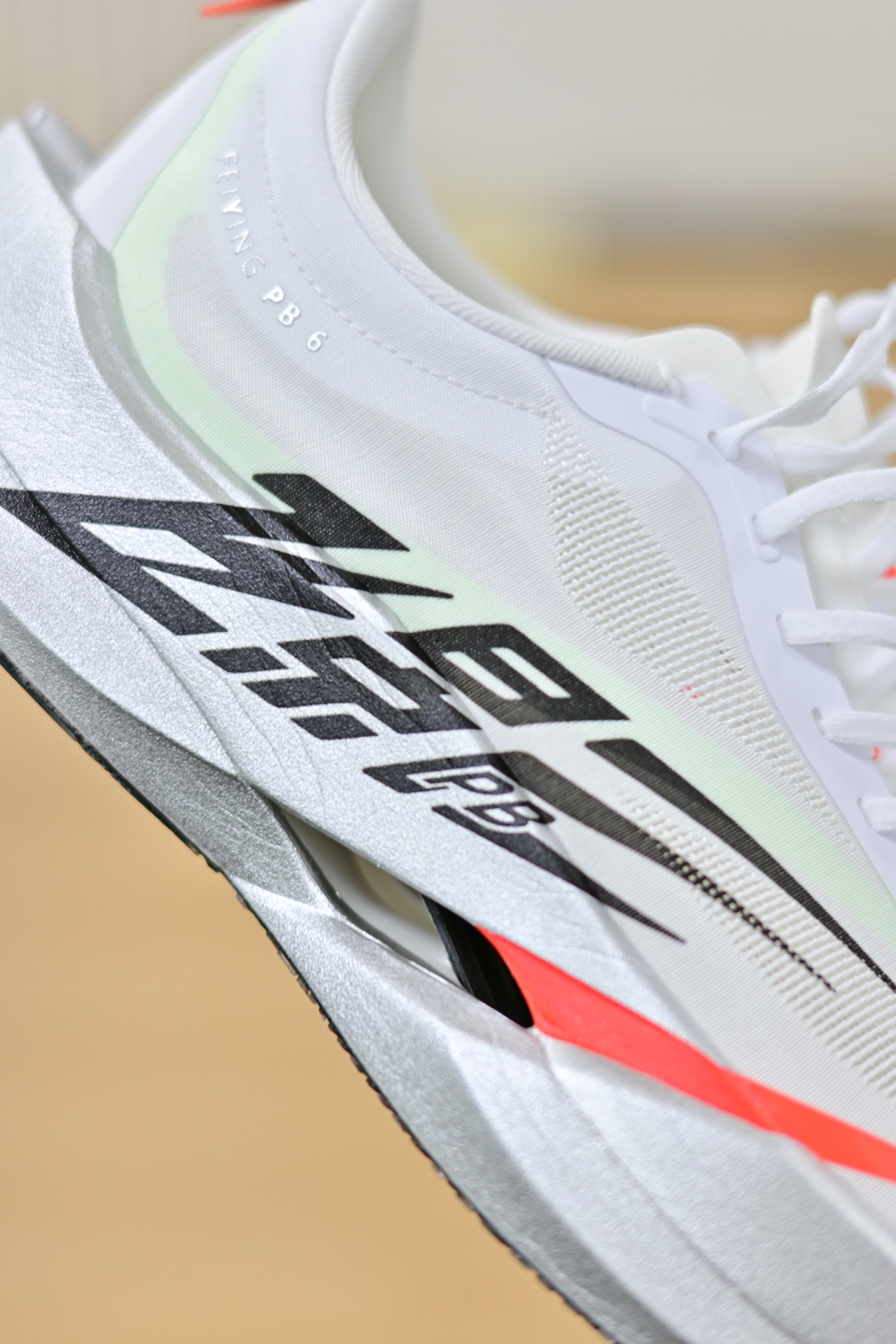 这一代的飞影PB6造型做了蛮大的调整的,外观造型有点PB1.0最初的那个意思,但是多了“悬浮碳板”的结构 先说优点啊,依旧是中乔飞影系列独有的发泡调校,韧弹中带着软,碳板的刚性就不用多说了,依旧够刚 然后这次足弓内侧支撑,明显做了加强,上脚会更稳了~对于我这种底足弓的选手挺友好!但是虽然悬浮能减轻重量,别踩楼梯[狗头_blue],容易卡石子,也容易磕坏 当然有一点也要注意啊,后跟其实有点过于...