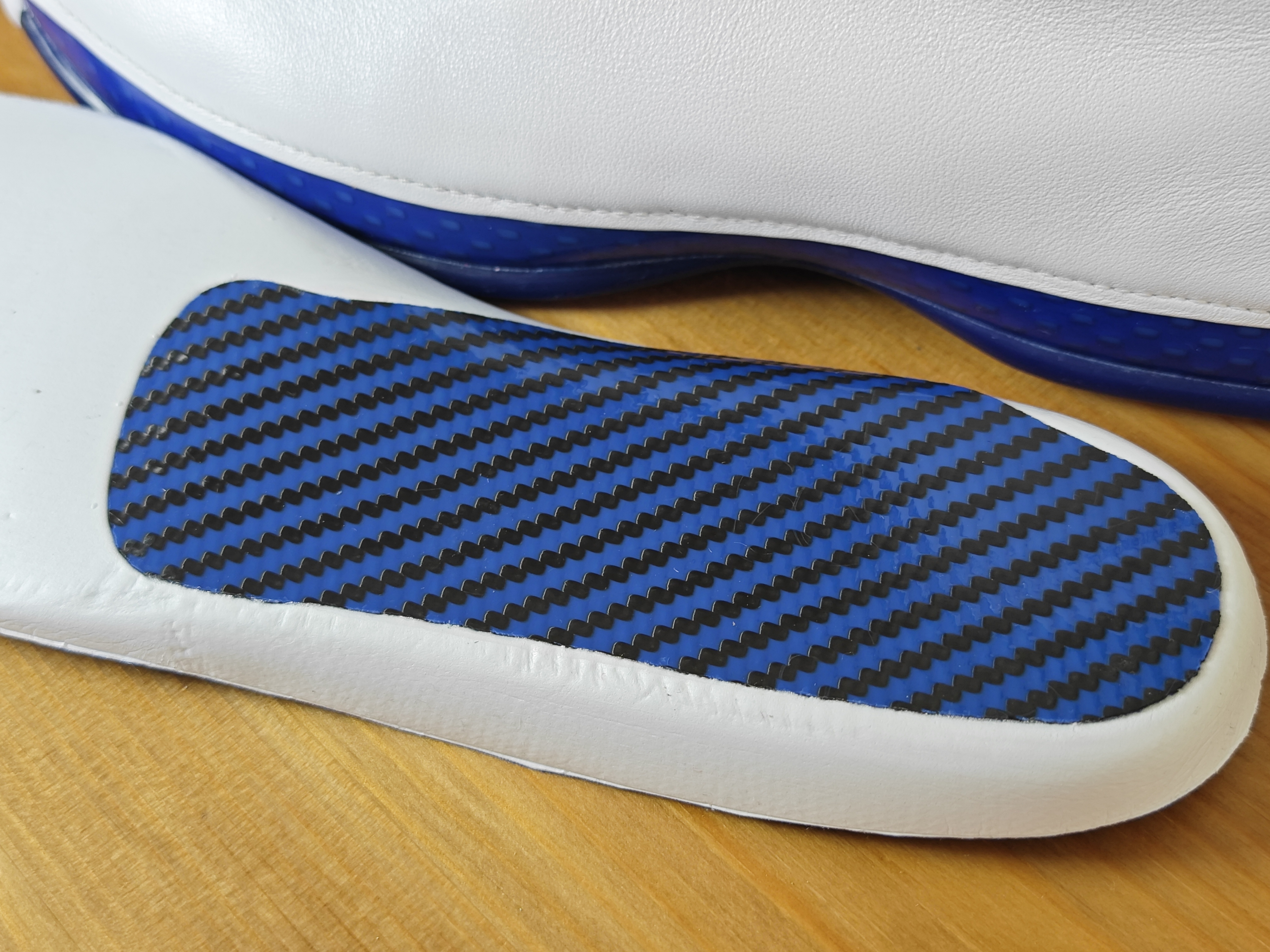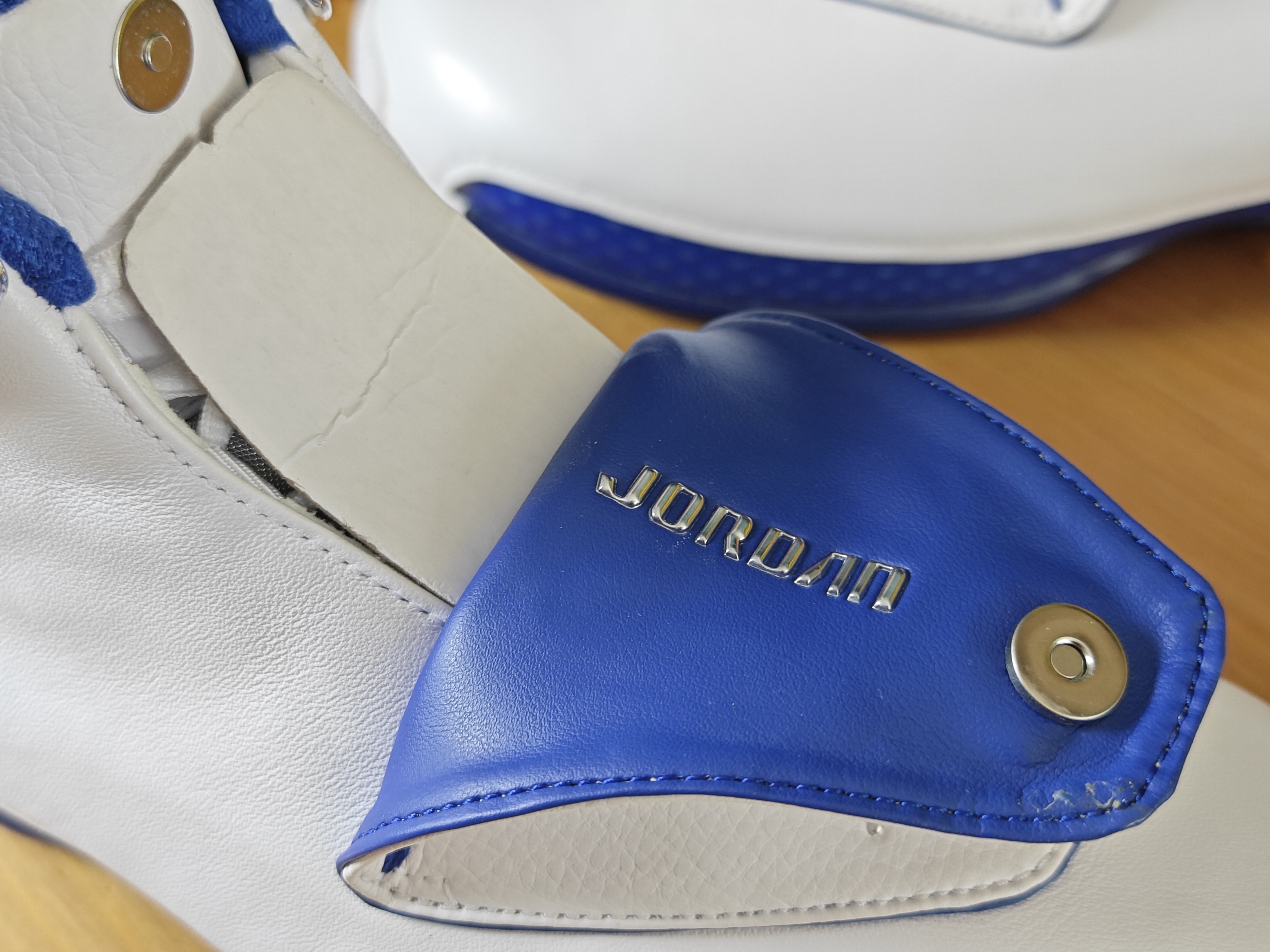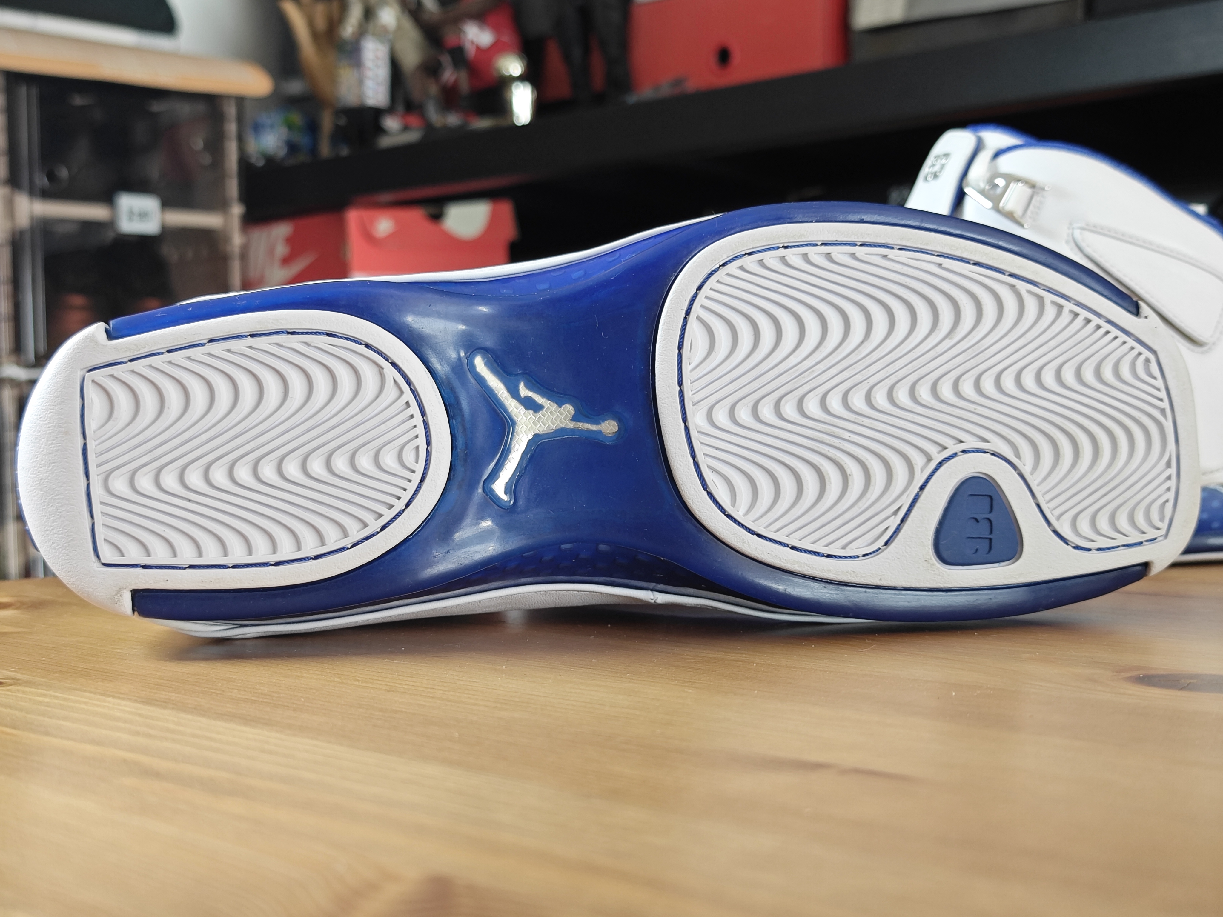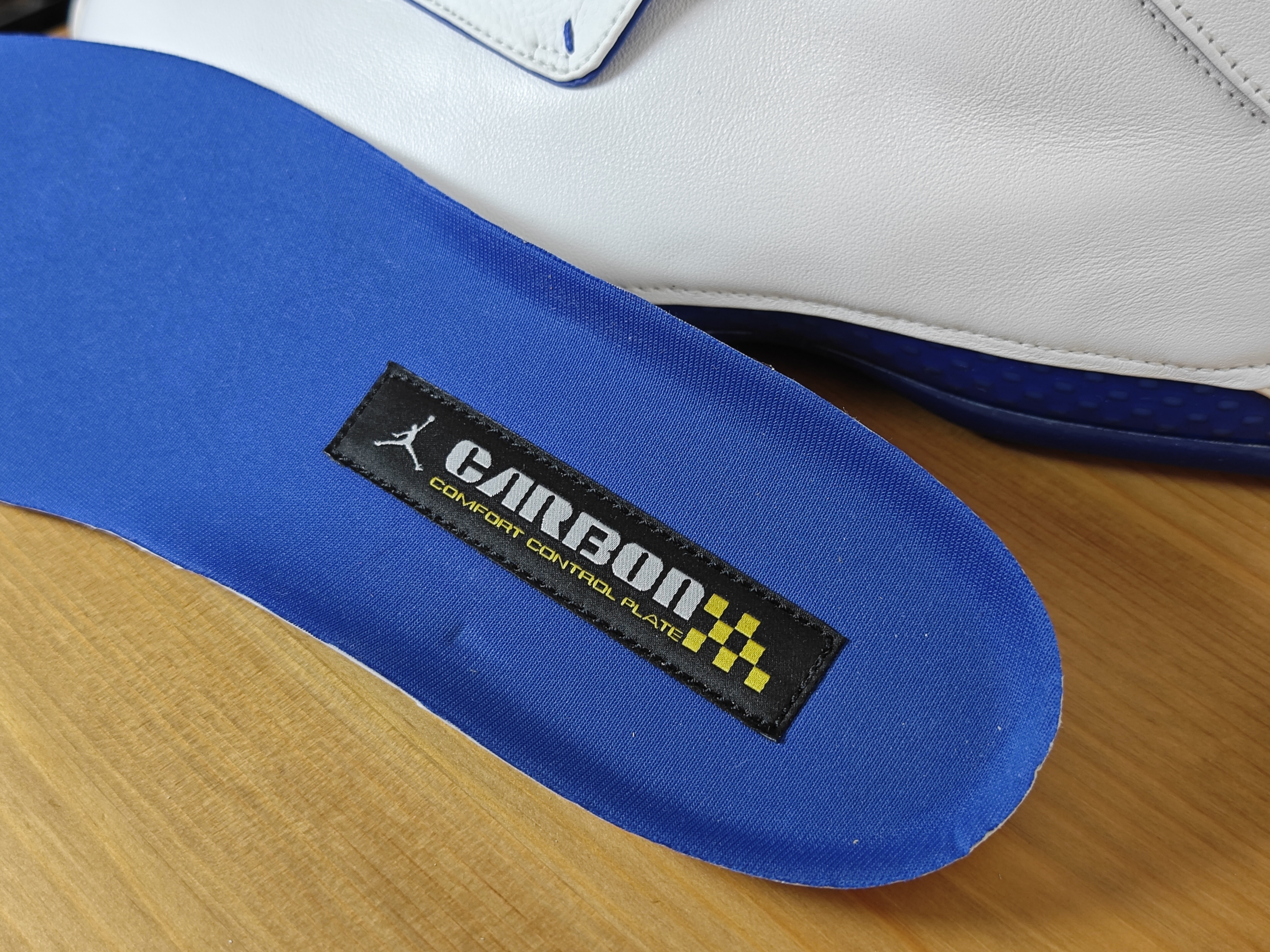 AJ 的正代鞋 买回来或多或少我都会穿过几次 除非是特别想收藏的 这款AJ 18 我就一直没舍得穿 鞋面除了鞋盖几乎看不见什么拼接 白色搭配蓝色,真的是太美了 双层气垫双层碳板 这个配置怎么说? 真是越看越喜欢