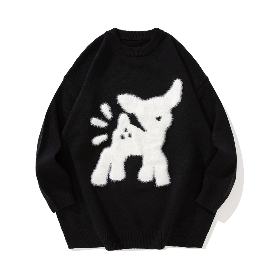 我买的是黑色滴,胸前的小🦌图案是水貂毛的 毛衣面料柔软,针线比较紧实,不容易脱线和起球🎈 版型比较正,穿着不会很拖沓,有种慵懒感🉑