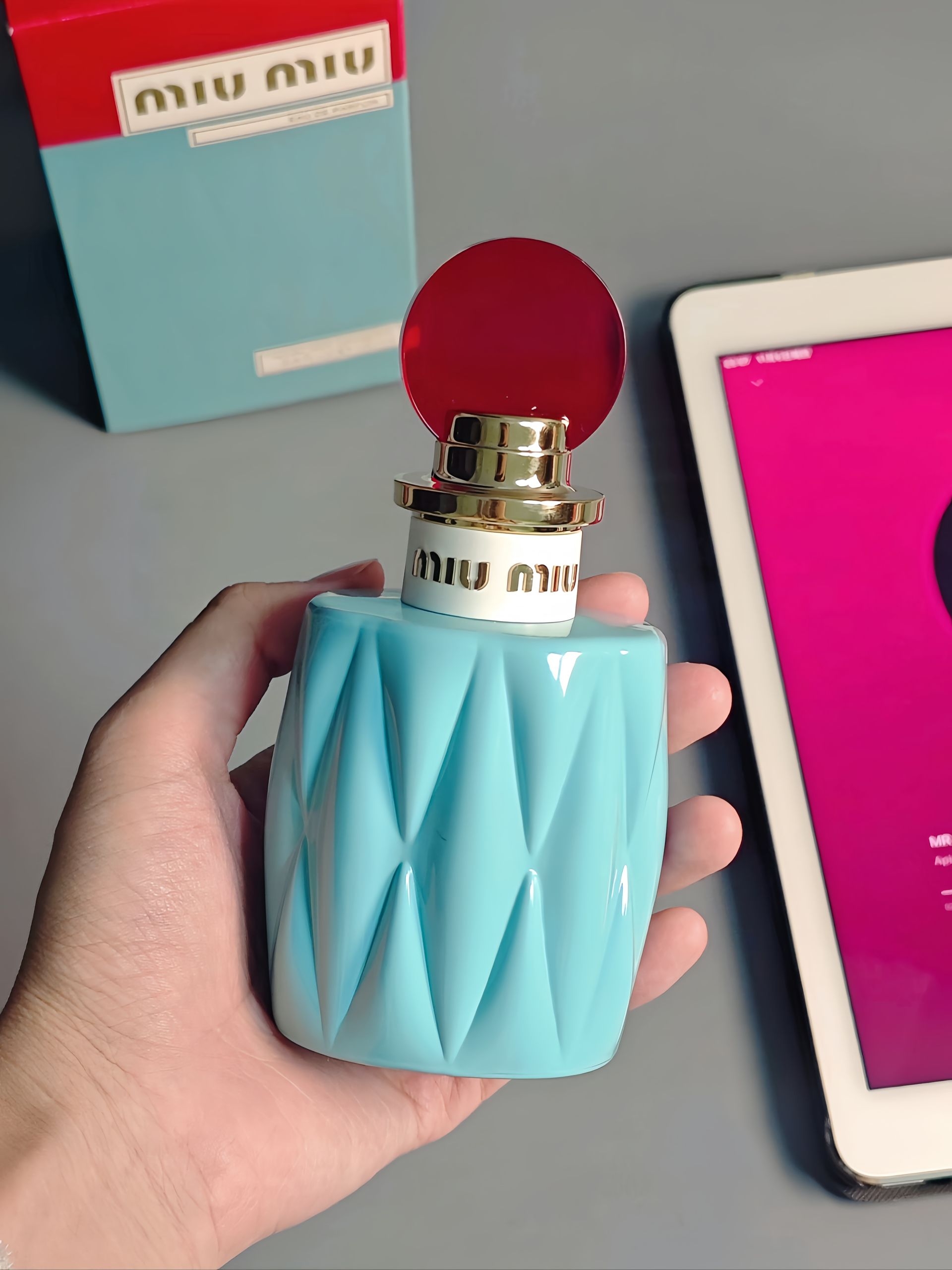 这款miumiu缪缪香水的蔚蓝色玻璃瓶身,带有经典菱格纹+半透明红色瓶盖真的至高级,是我颜值党会心动的设计,在沉闷冰冷的秋冬季是亮眼的! 这款香20-35岁女生日常通勤约会都可以使用~ 刚喷出前调是铃兰香气,是淡淡的清甜味~没有脂粉味一点都不会腻,像是刚洗好的纯净白裙在阳光下晒干后的味道! 慢慢地中调是青香~像是刚下过雨的草坪能闻到青草汁液味,感受到大自然的鲜活生机! 后调是温暖木质调~会巧妙地...