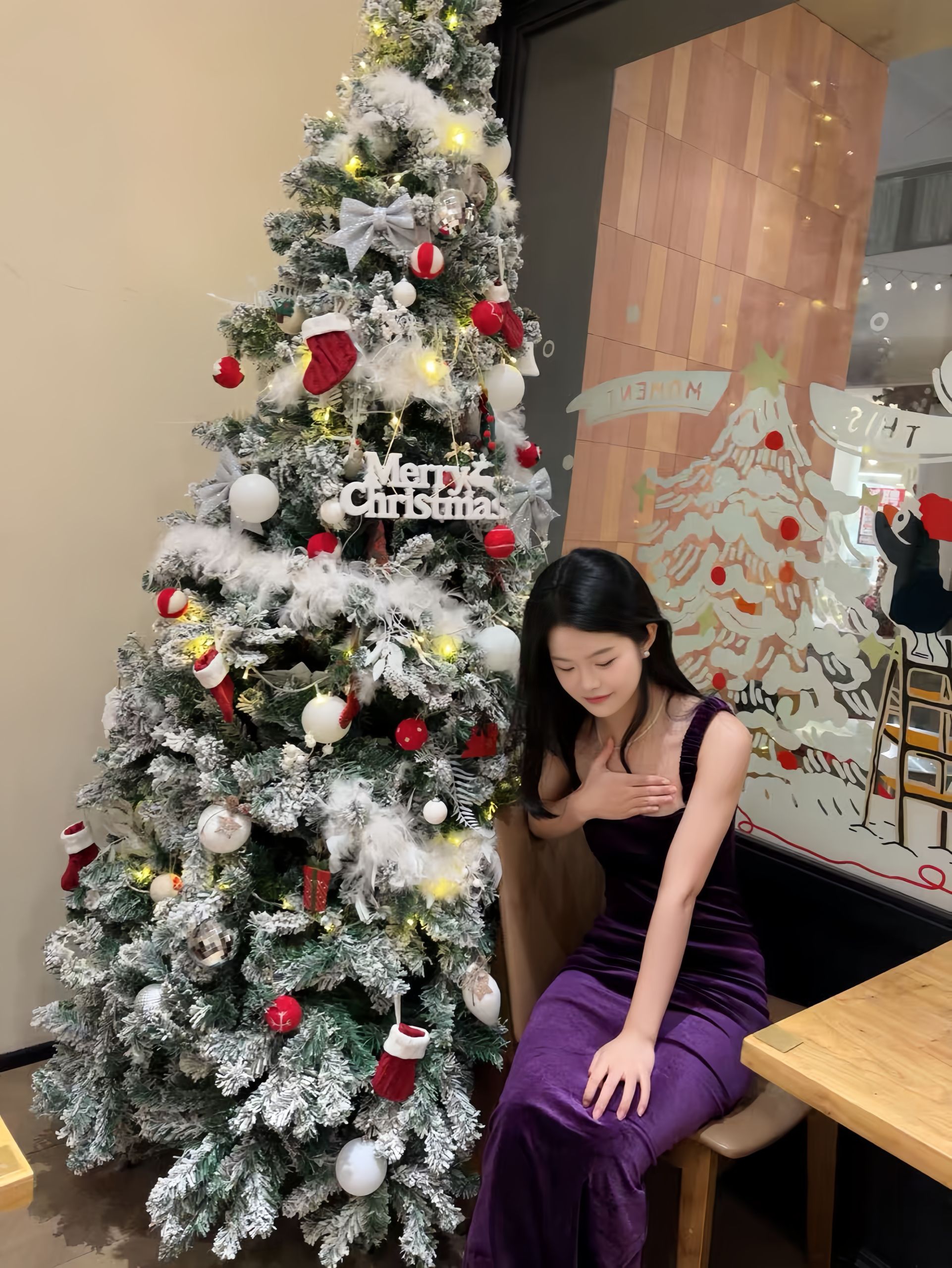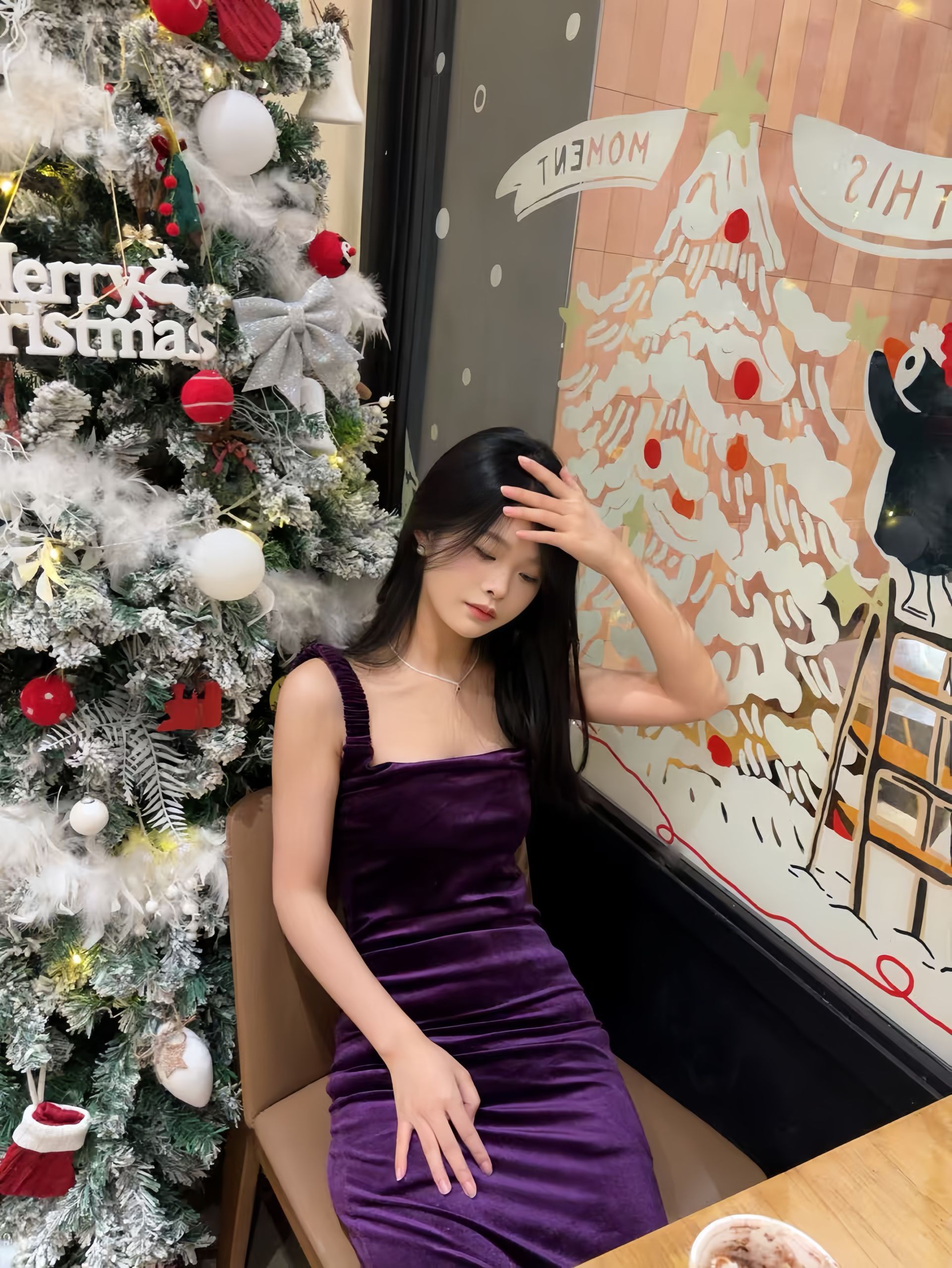 圣诞的仪式感被这条紫丝绒裙拿捏得死死的 本来还担心紫色不好驾驭 结果上身直接惊艳 丝绒面料摸着软乎乎的 贴肤穿也不扎超有垂坠感 把身材线条勾勒得超好看 完全不会显臃肿 搭配圣诞树的节日背景随手拍都很出片! 约会、聚会穿这个妥妥的焦点 保暖的外套搭个大衣或者羽绒服 好看和暖和直接双赢