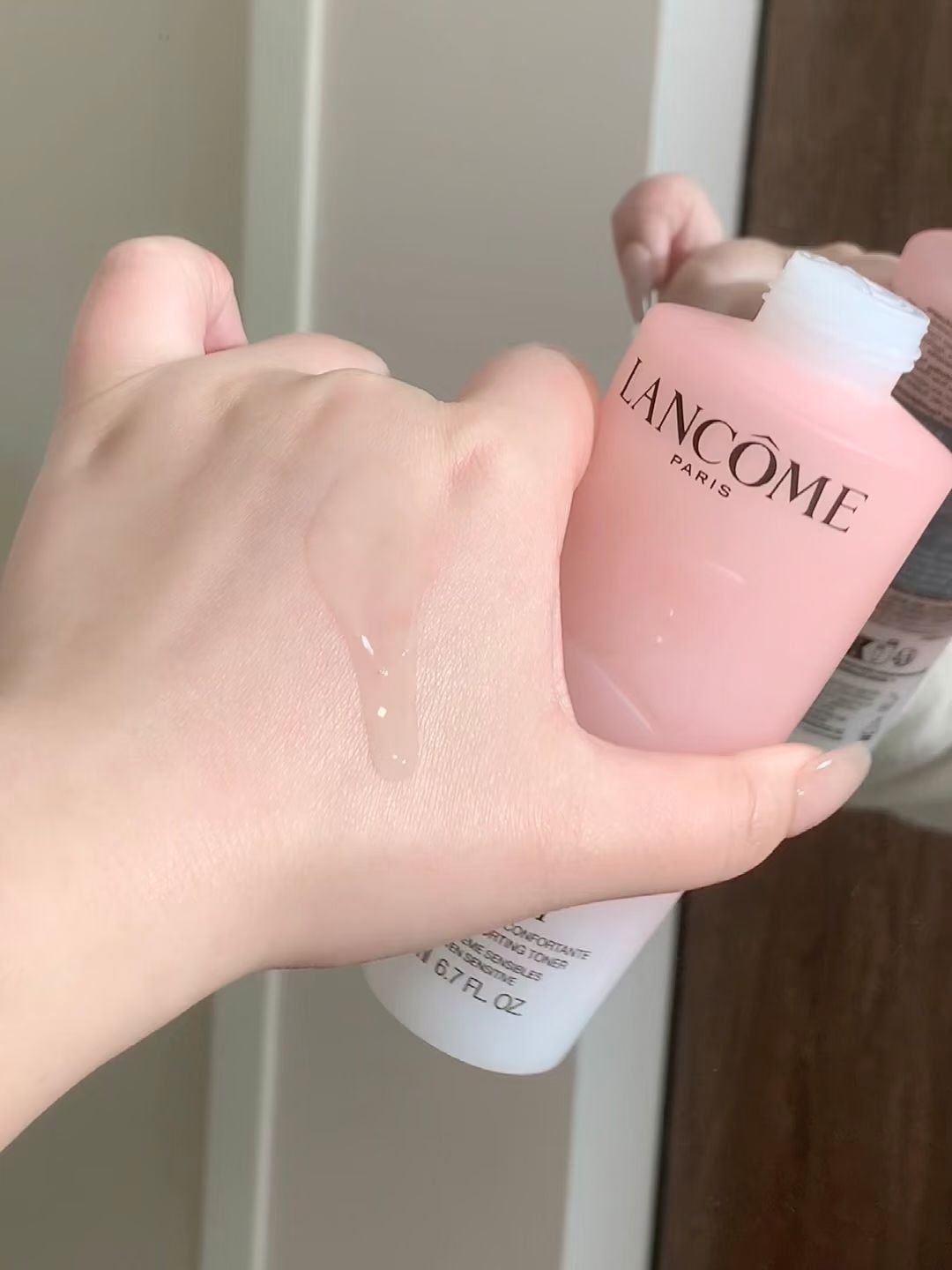 入冬之后洗澡时间翻了不止一倍...太暖和了根本不想出浴室!!🥶但一出浴室又冷得一哆嗦...谁来管管这个温差!!每天进进出出冷冷热热n次,姐的脸干得紧绷绷的不说!🔥脸颊红通通堪比新年大红灯笼!上妆更是超级卡粉!温差肌我和你势不两立!! 但!💕兰蔻粉水简直是温差肌救星来的!晚上用它湿敷急救了一下!脸颊瞬间活过来了!!干燥起皮的地方都被润开了!一整个刚剥皮的鸡蛋既视感!!泛红的部分也都被里面的天然灭...