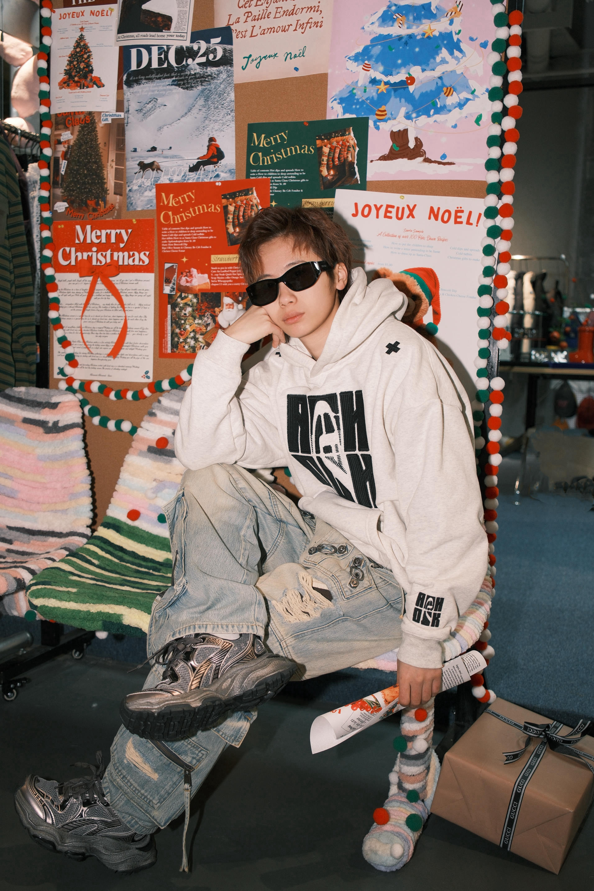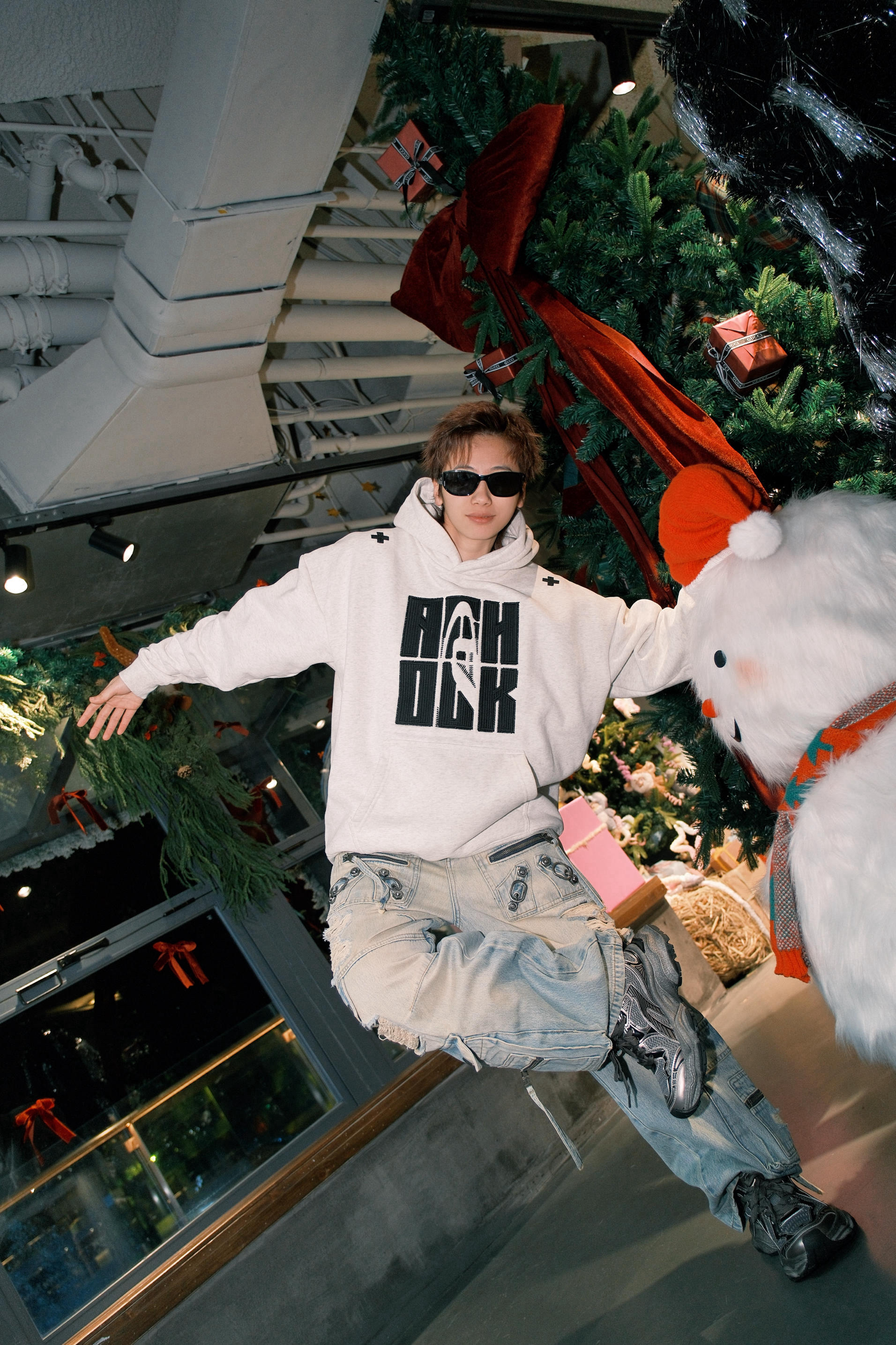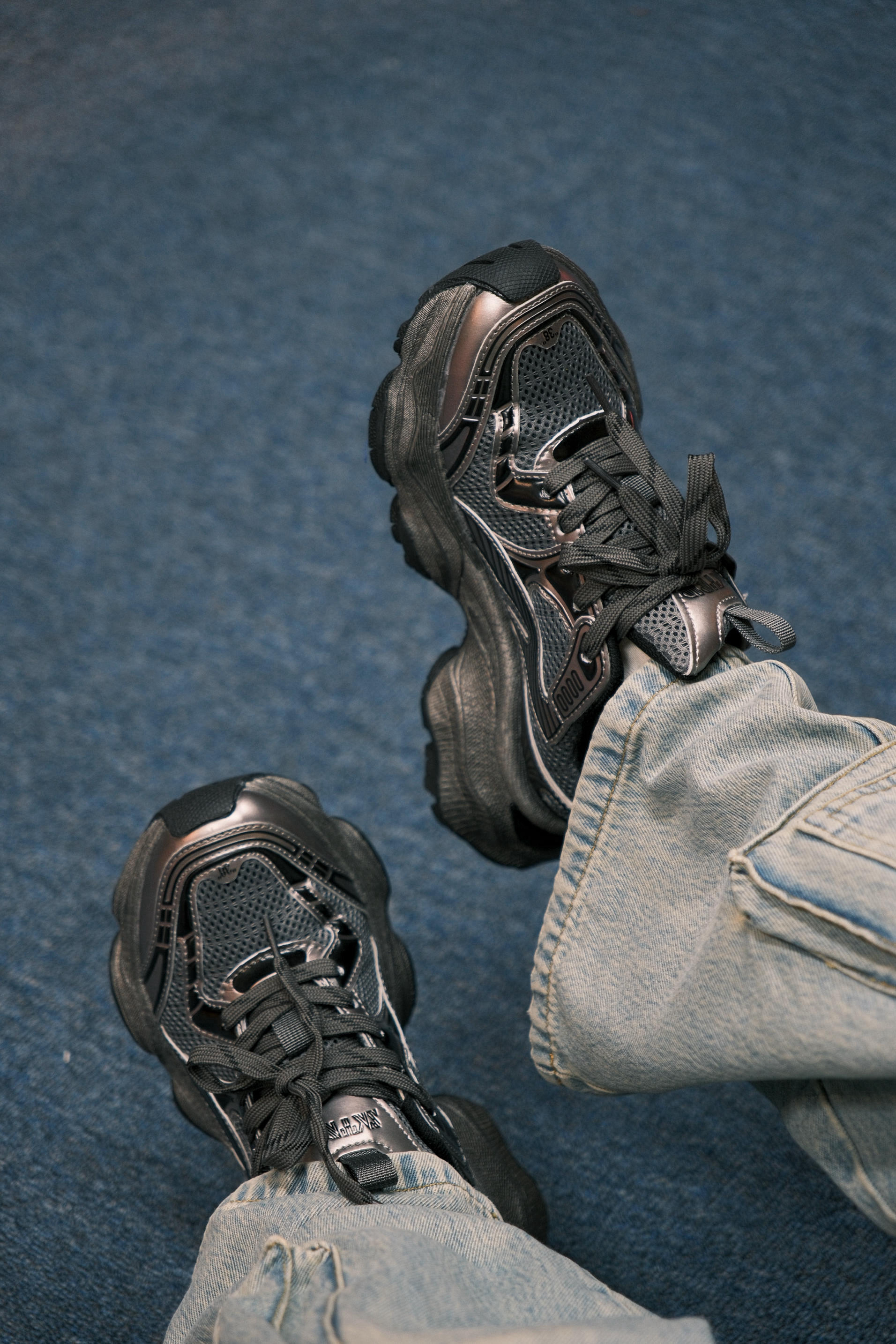 秋冬天最实穿的还是灰色系 一件花灰色的连帽卫衣 字母设计的风格 再搭配上浅蓝色大口袋工装牛仔裤 街头感就有了 鞋子选了一双深灰色的跑步鞋 和上衣配色呼应起来,还能增加整体层次感 4cm左右的厚底,对小个子星人比较友好 上脚非常轻便,完全没有厚重的感觉
