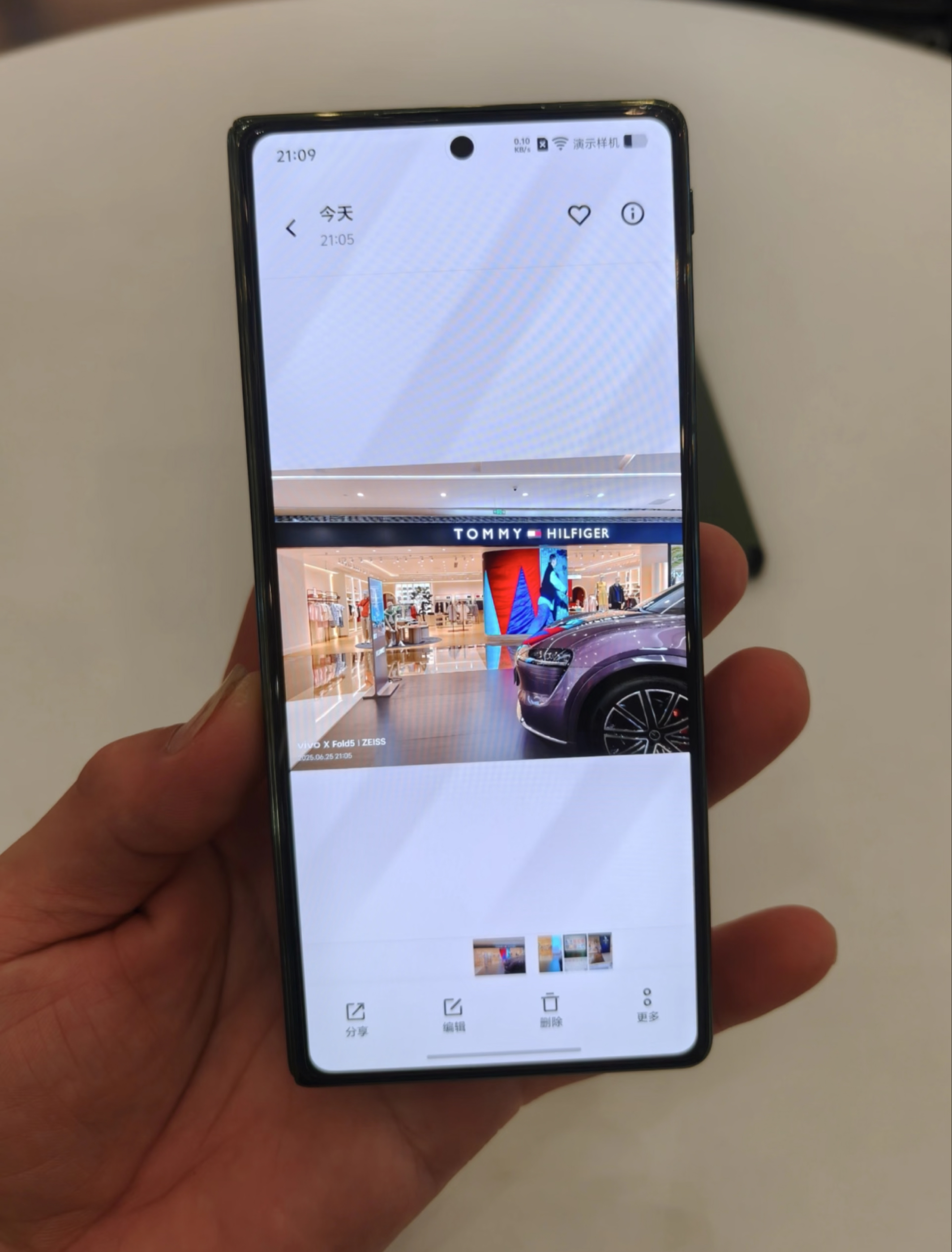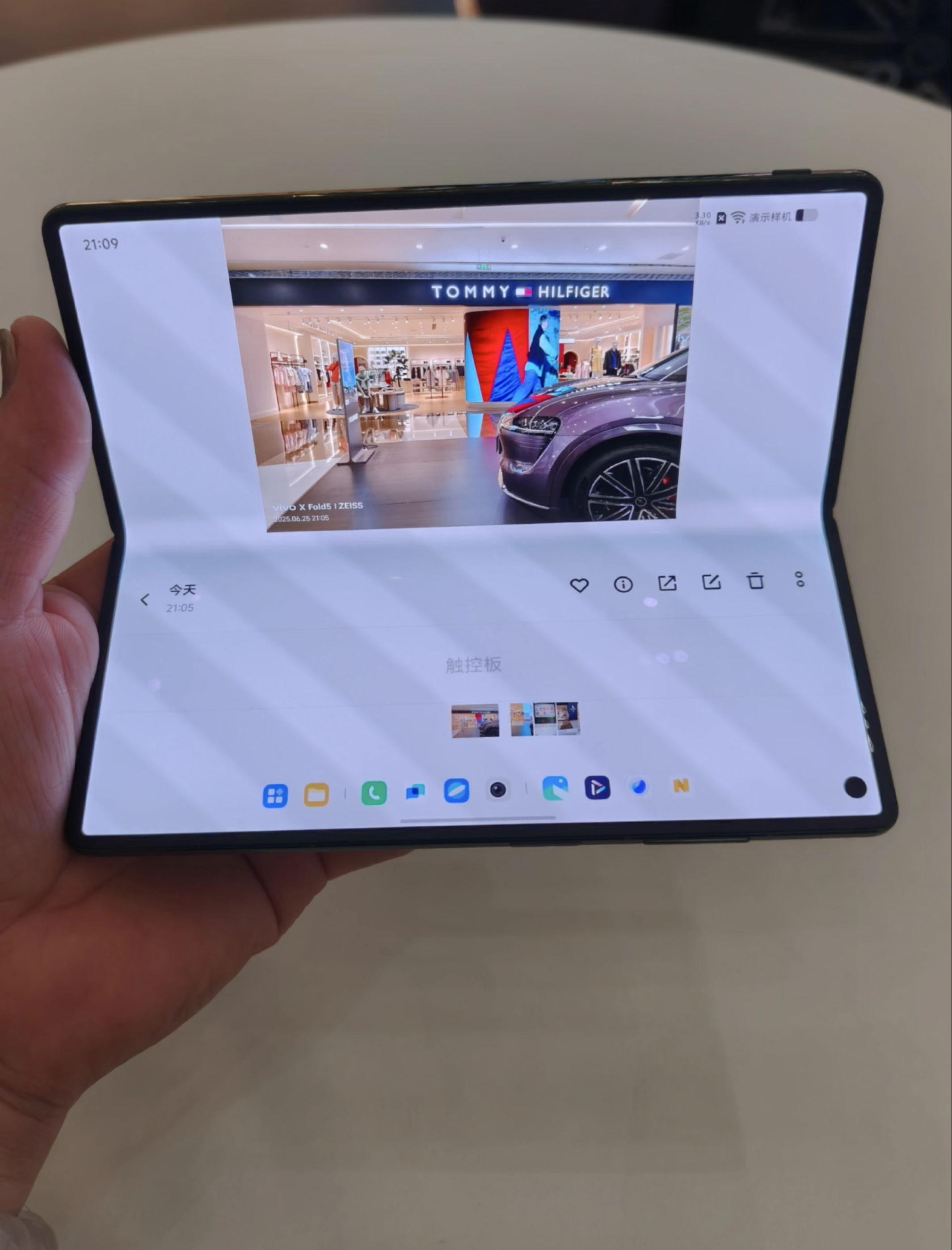 谁能抗拒这抹“雨后松林”的清新?vivo X Fold5 青松配色堪称折叠屏颜值清流,玻璃基底搭配跑车级喷漆工艺,深邃沉稳的墨绿色调恰似苍翠松枝凝露,双拓镀膜工艺赋予后盖细腻类肤触感,指尖划过只留温润不留指纹,立边金属中框的微弧度打磨,让整机线条利落又亲和,商务通勤显质感,日常出街不撞款。 但它从不是“靠颜值出圈”——226g轻量化机身+4.55mm展开厚度,比多数直板旗舰更易握持,航空级浮翼铰...