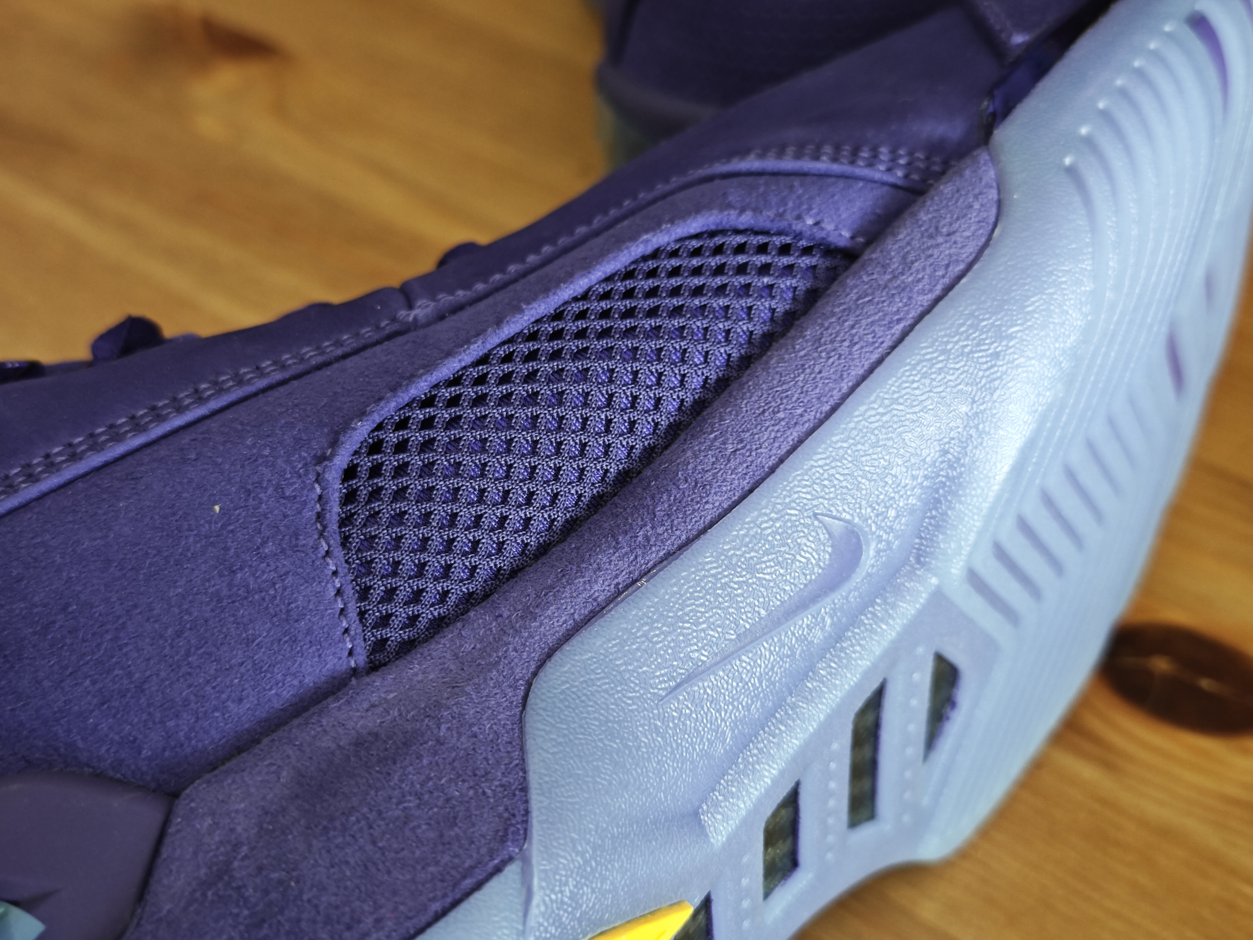 一双紫色的复古篮球鞋 即使我媳妇不太懂鞋 但也能猜出这款和勒布朗有关系 厚重的鞋型,较高的科技配置 注定了后来勒布朗球鞋的设计方向 这双紫色真的太吸引我了 磨砂皮质感很好 实际脚感并不是很沉 不建议用来实战 压马路多好,回头率百分百