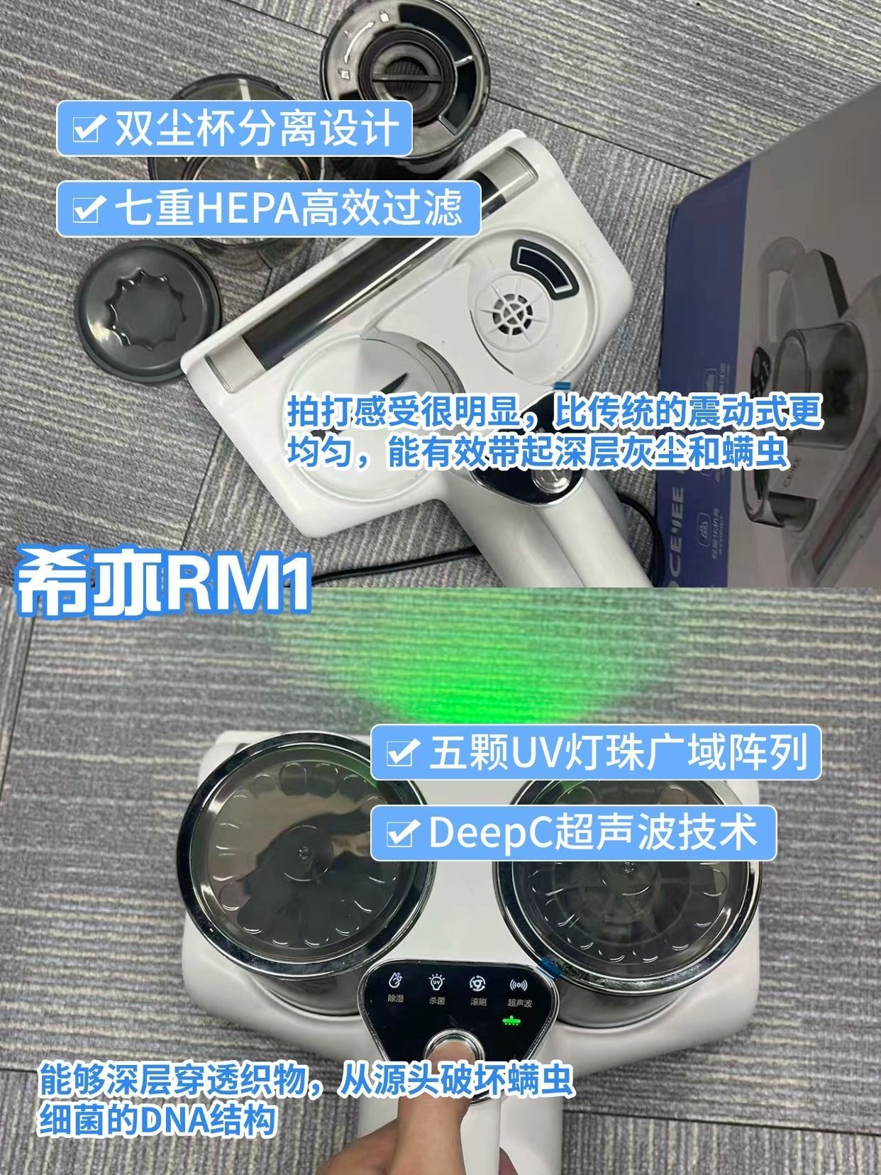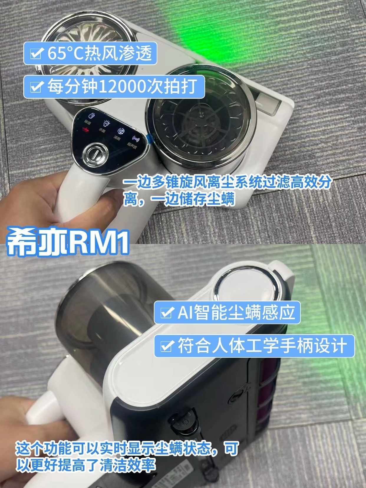 前段时间鼻子一直不舒服,早上起床不是打喷嚏就是鼻塞,本来以为是换季过敏,没想到罪魁祸首居然是螨虫!朋友安利我试试希亦RM1除螨仪,说是家里床品、沙发、枕头里都藏了很多看不见的小螨虫,用一次就能看到效果。 我买回来第一天就迫不及待地试了下,操作真的很简单,插电一开机就能用。RM1的吸力很强,能把被子里的灰尘和毛屑都吸出来,配合UV-C紫外线灯还能杀菌除螨,用完被子摸起来感觉更蓬松干净。尘杯是可视化...