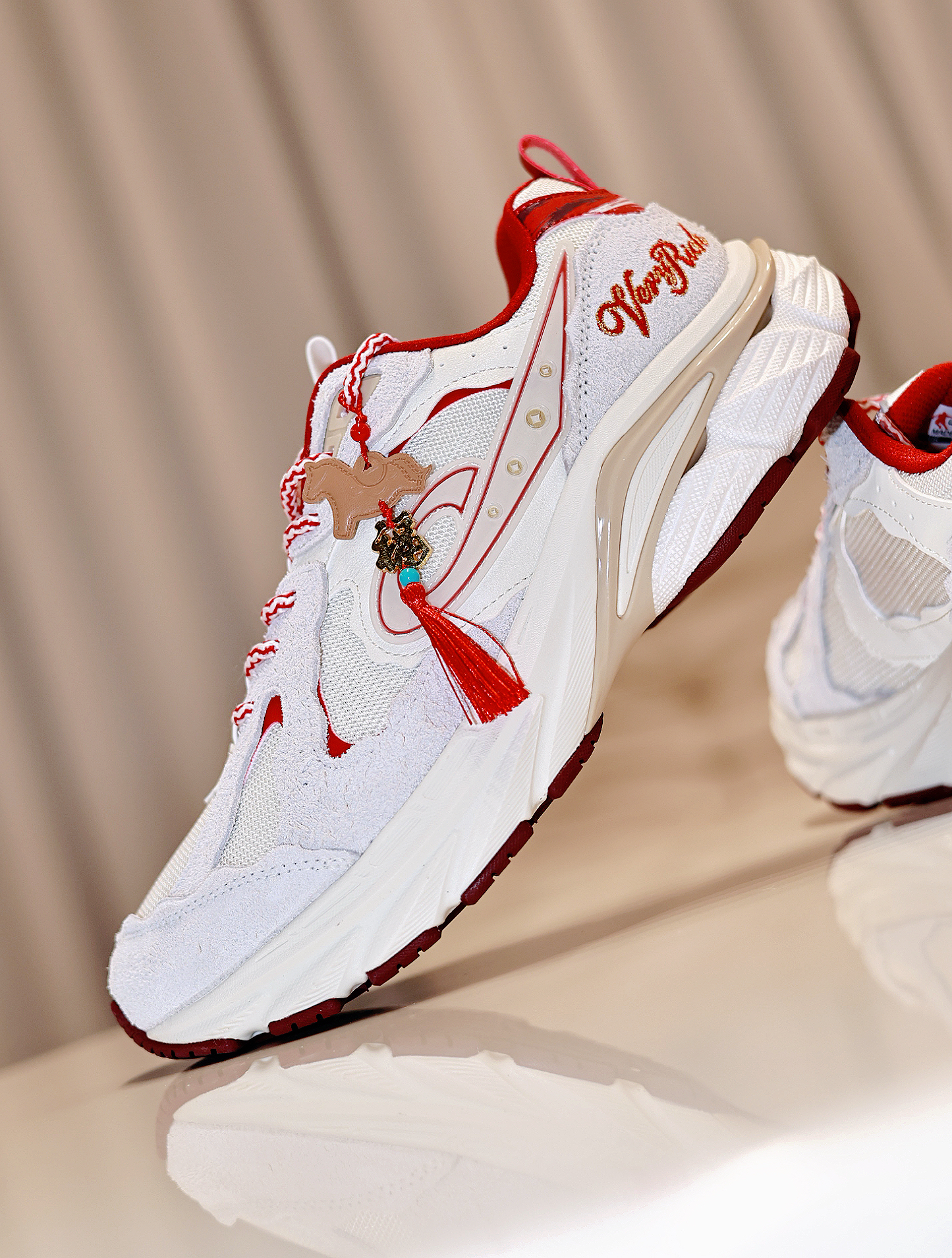 白红主调衬得年味直接拉满,鞋身的麂皮拼接质感超在线,赠送的小马挂饰+红流苏,还有“马上有钱”的刺绣细节,把马年吉祥话穿在脚上也太会了✨! 老爹鞋的版型,3cm增高悄悄拉长腿型,日常搭卫衣、大衣都巨百搭,新年穿它出门,感觉财运和颜值都能一路开挂~ #穿TA马上RICH #中乔新年C位单品 #乔装迎新 #这双鞋和新年绝配 #给大家推荐新年穿什么鞋