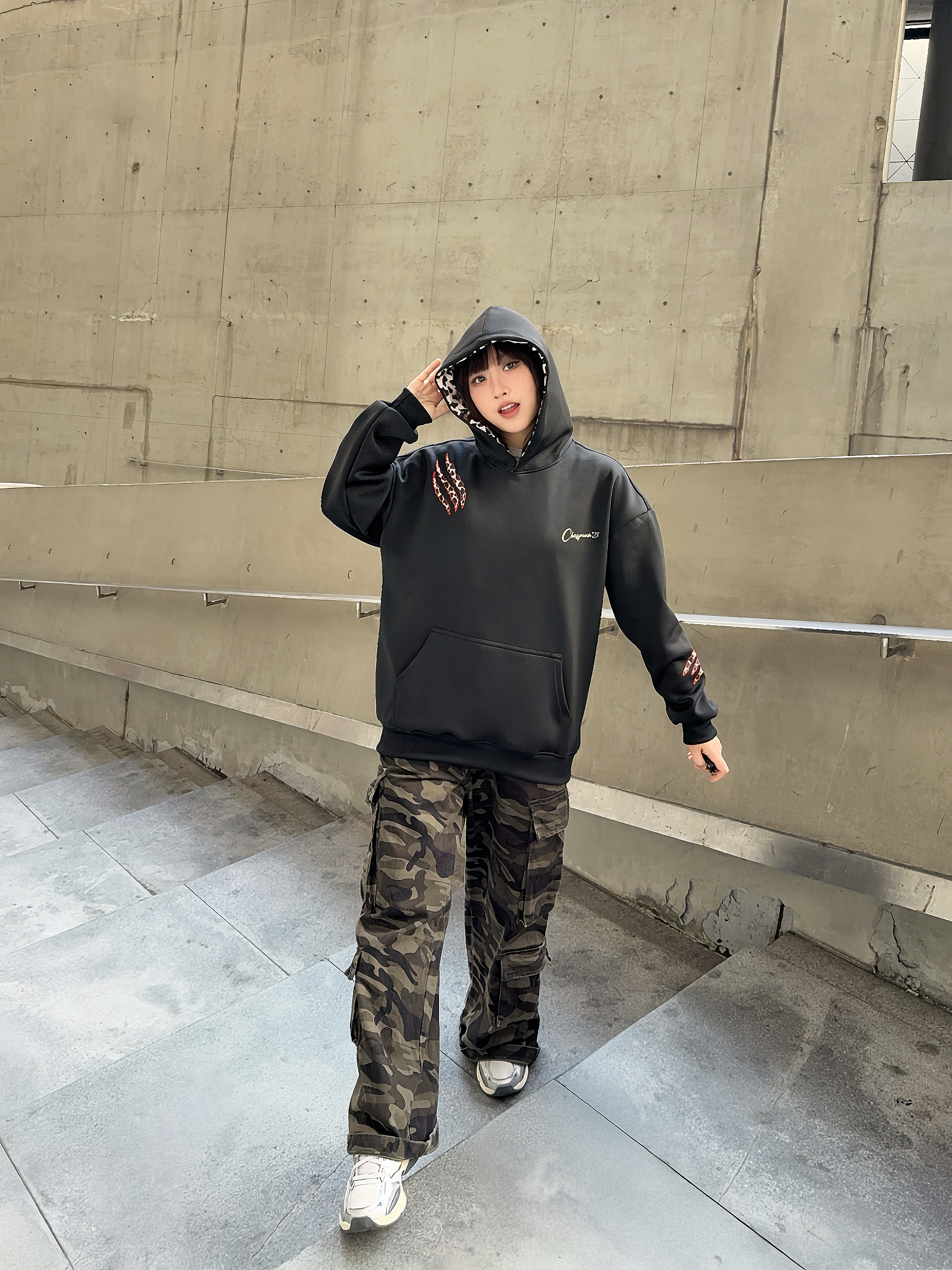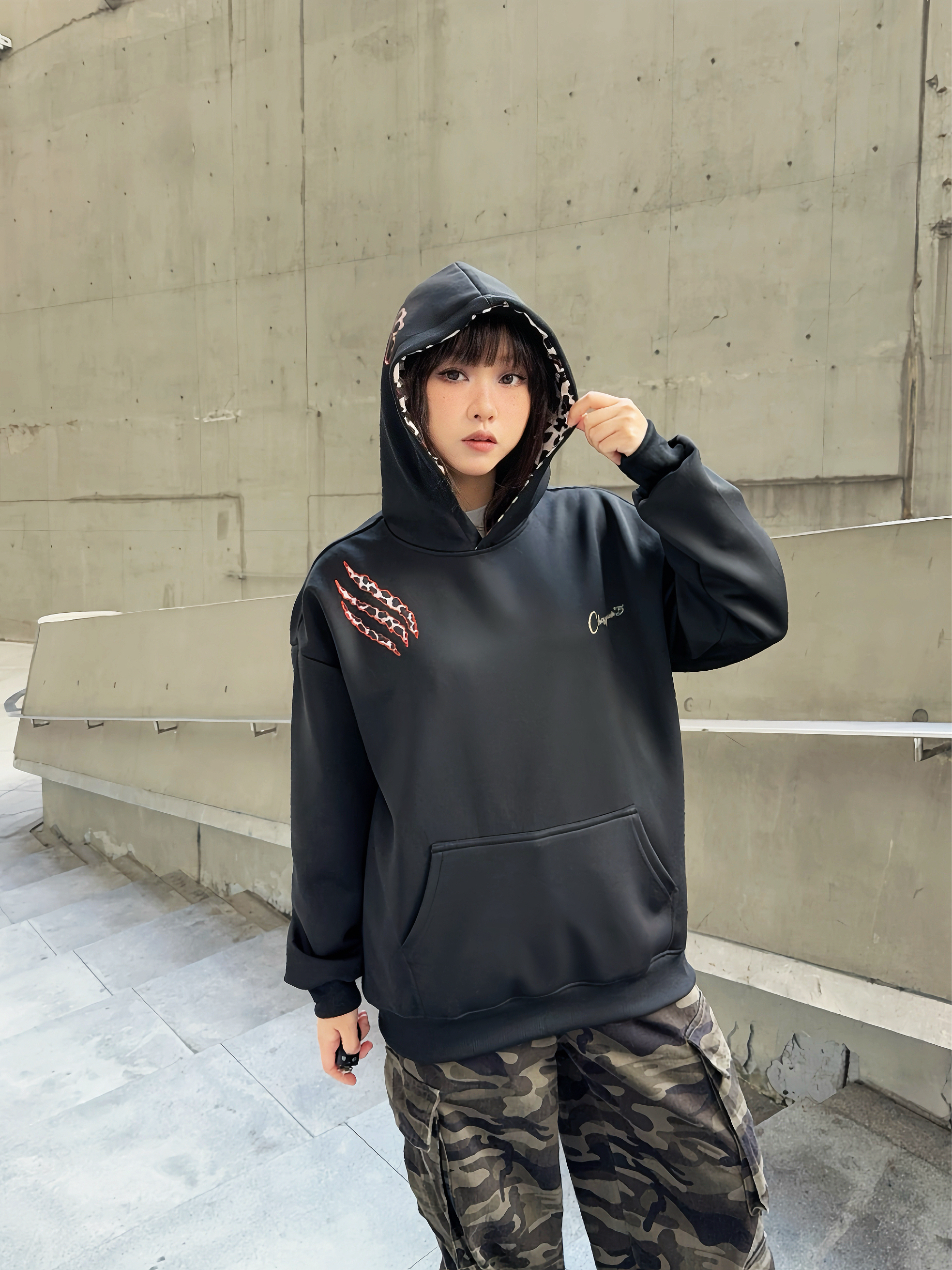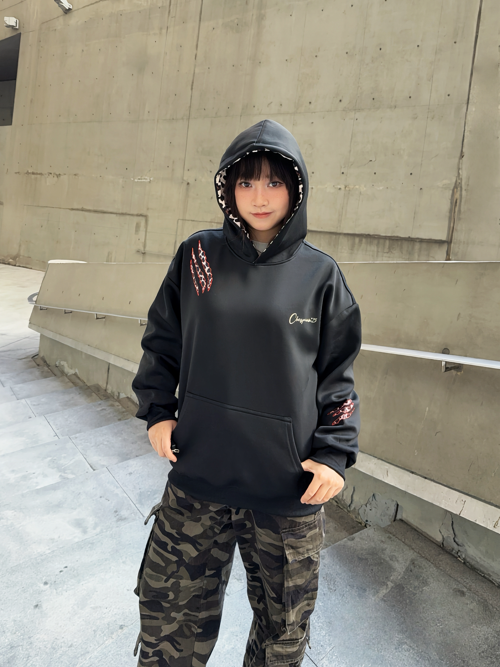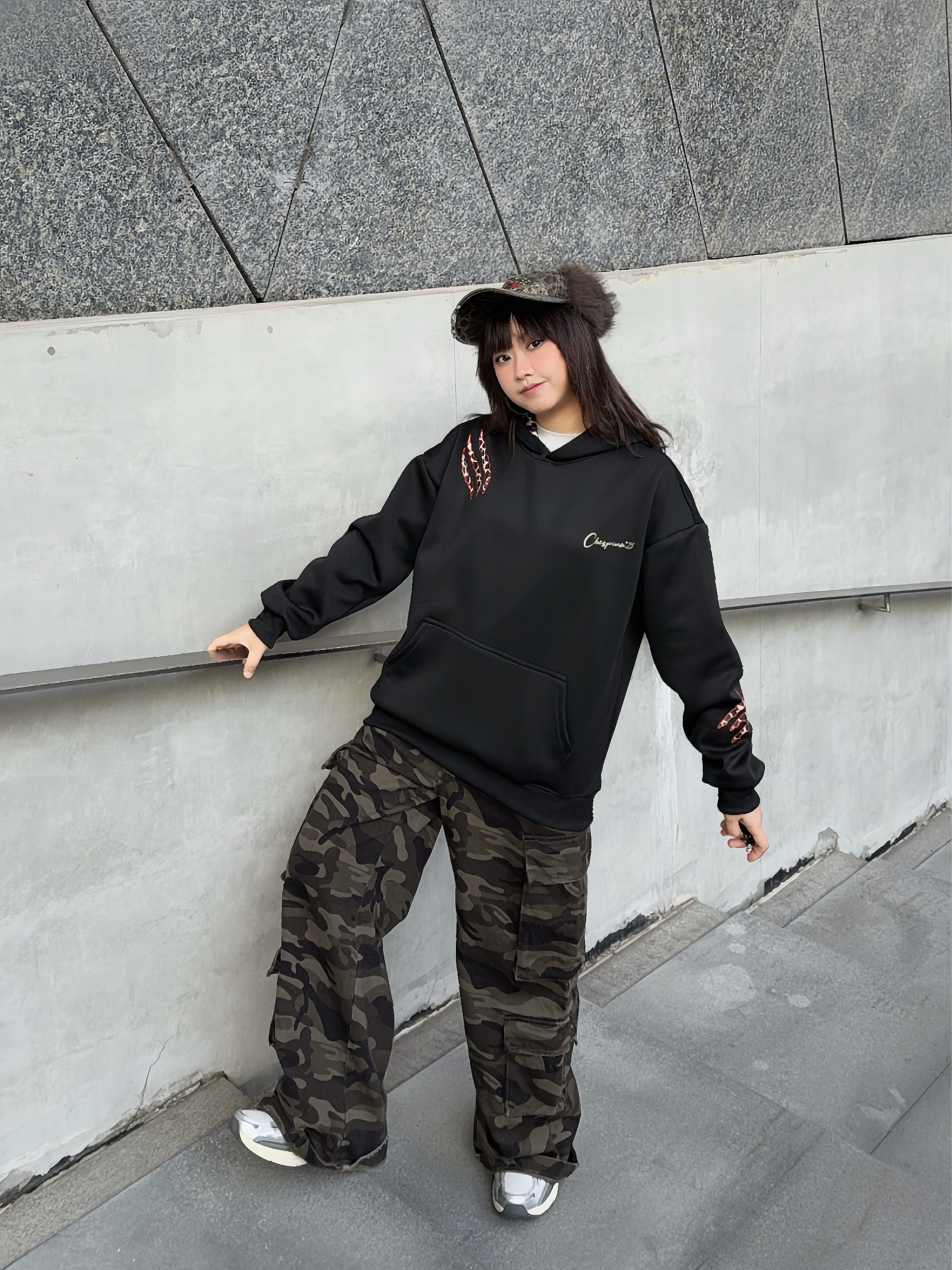 这套ootd不吃建模!😎松弛感街头风穿搭,谁穿谁好看~ 🐈⬛ 草本初色 美式卫衣,豹纹爪痕印花贼酷,帽子上还有🐾图案,很有小众感,偏宽松的版型不挑人穿,厚度也比较在线! ☑️搭配同风格迷彩裤,街头vibe拿捏了~