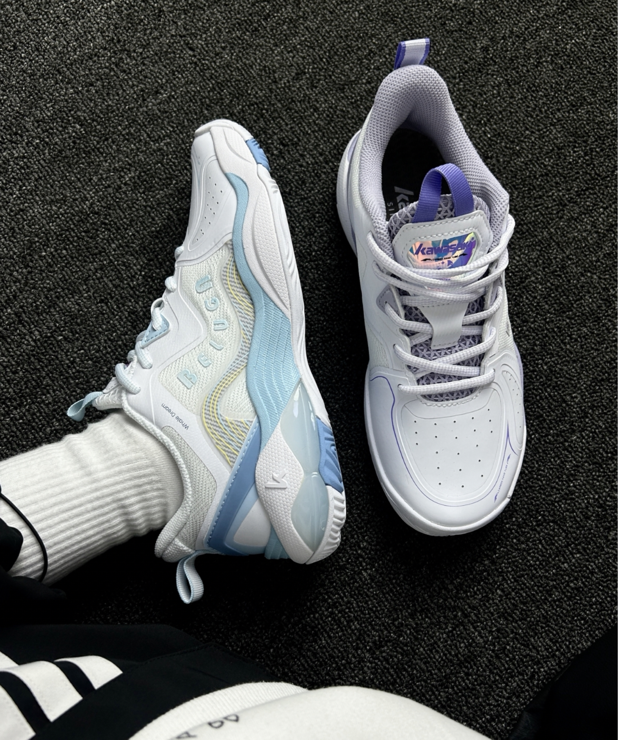 今天给大家带来的是川崎鲸梦pro羽毛球鞋 鞋面采用了超纤面料具有双层排汗透气功能,也不用担心打完球脚湿漉漉的! 鞋子中底采用了高弹EVA中底,搭配了3D立体抗扭TPU 上脚跑跳回弹性👆脚踝包裹性也很可以,耐磨橡胶抓地力也可以,急停 转身挺稳,我觉得