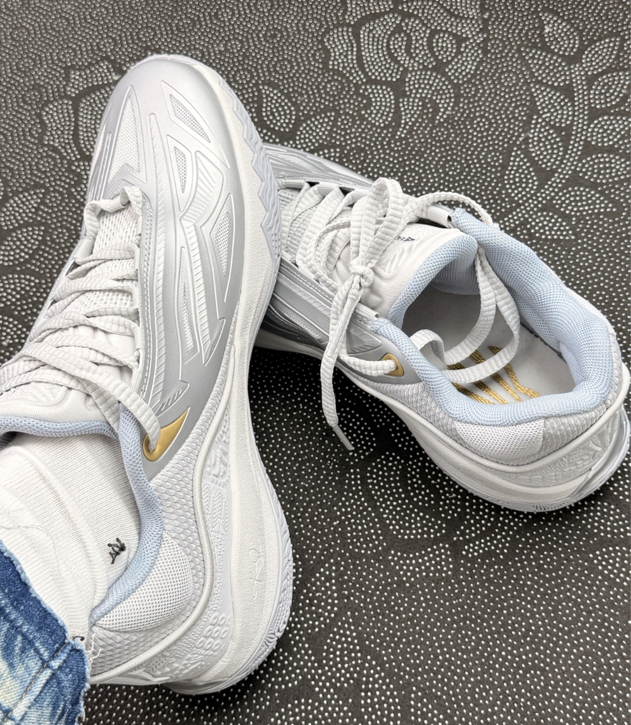 说一下上脚这双欧文的感受👟,前掌反馈很利落,变向时抓地稳稳的,打半场球一点不拖沓白蓝配色清爽耐看,日常压马路也很百搭 脚面贴合度不错,穿久了也不会有磨脚的情况💕 小缺点也得说:鞋楦偏窄,宽脚的朋友建议选大半码;鞋底装饰条容易沾灰,得偶尔擦一擦🧹 整体很适合轻体重灵活型后卫,选对尺码就很香