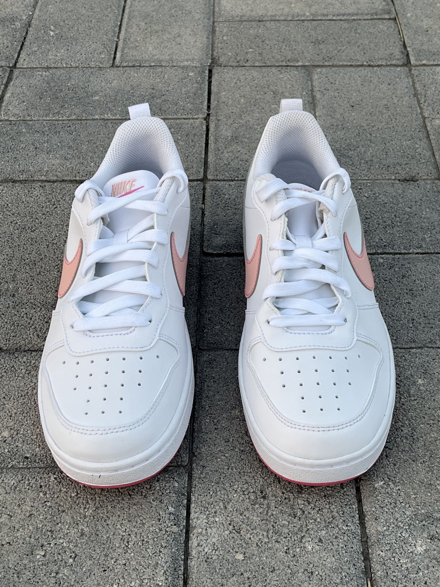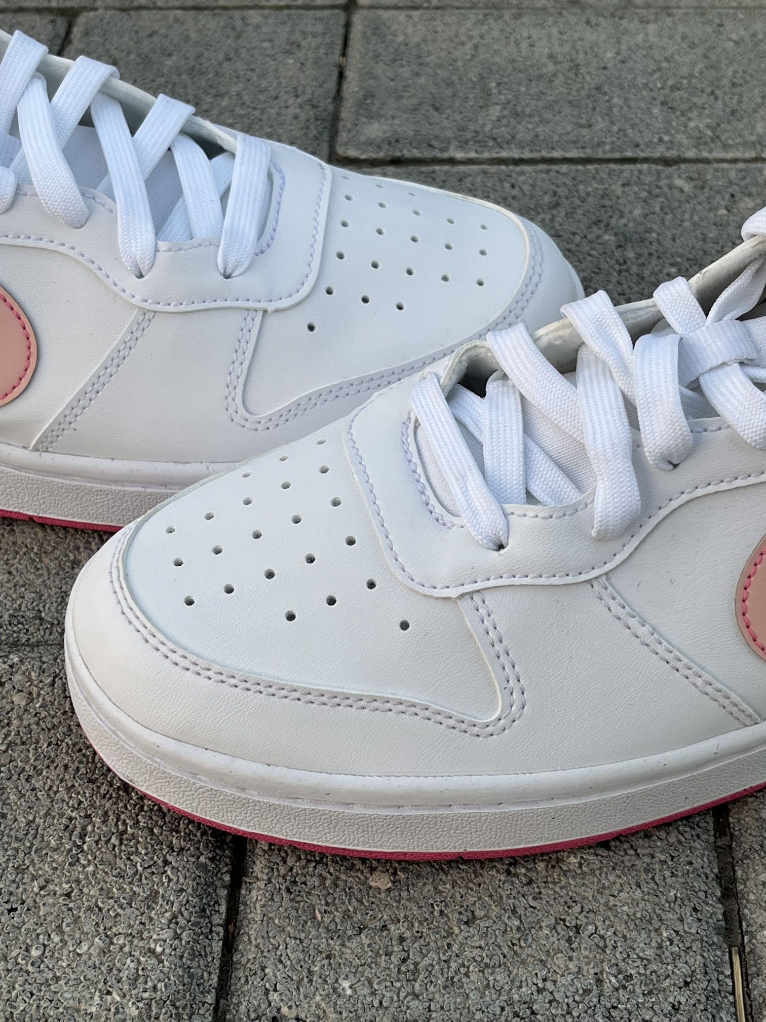 今天给大家分享一双Nike Court板鞋。 这双鞋采用白粉的配色,看起来比较有活力💖,这双鞋采用皮革材质的鞋面,摸起来比较有质感,也比较耐磨。这双鞋采用粉色的Logo,看起来比较亮眼。 这双鞋子的尺码标准不偏码,大家按照自己的正常尺码选择就可以。