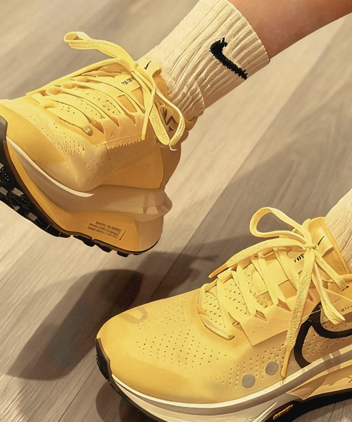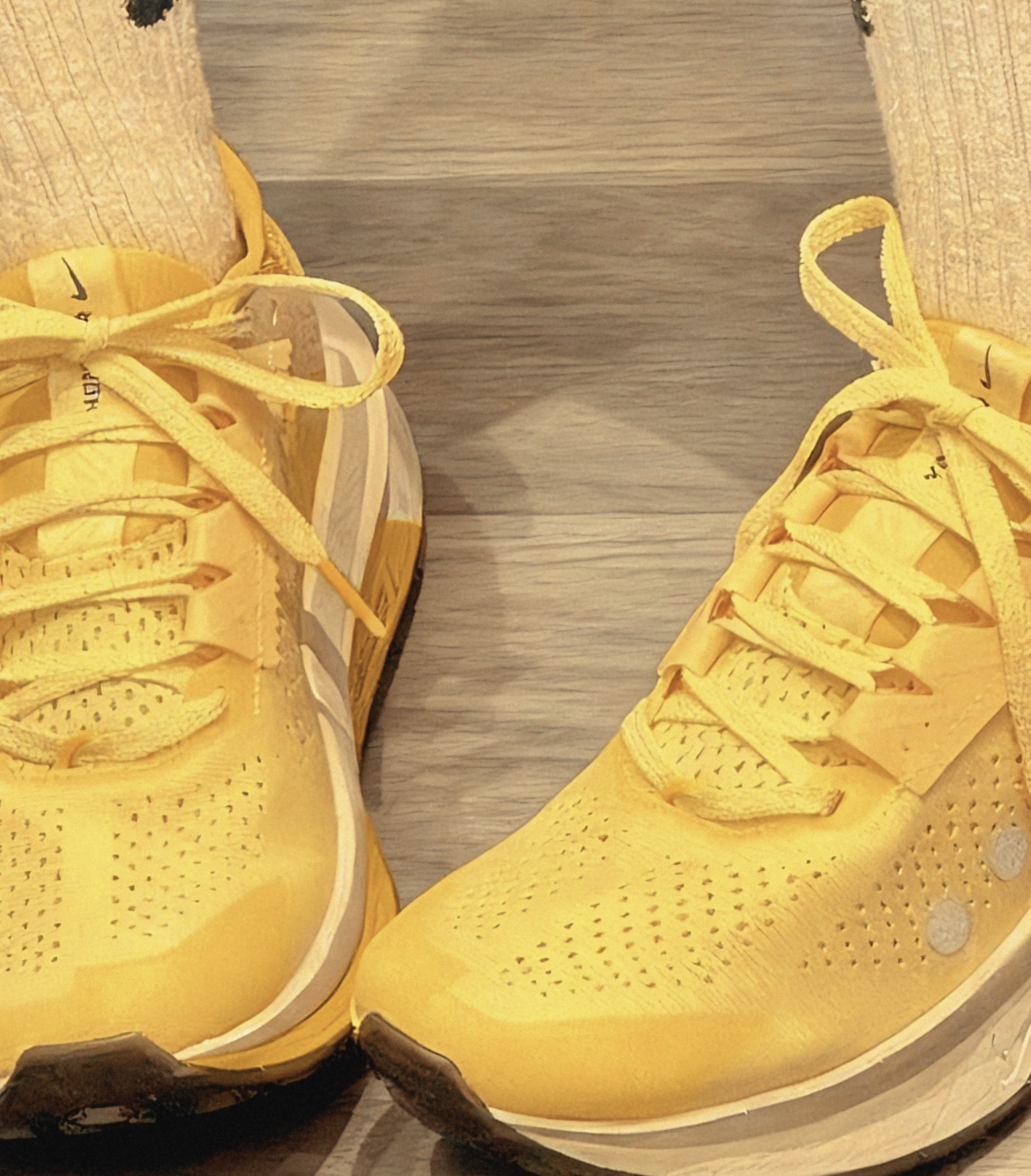 它的中底就像把记忆棉床垫切了块塞鞋里,踩下去的回弹能拖着脚后跟走。配了Vibram外底,湿滑的木质地板也没打滑。出门搭深色大衣能压得住亮黄色,冬天穿不跳脱。脚感贴得像定制袜套,包裹感刚好。缺点是鞋身有点沉,跑久了脚踝会酸。你们更在意脚感还是重量?