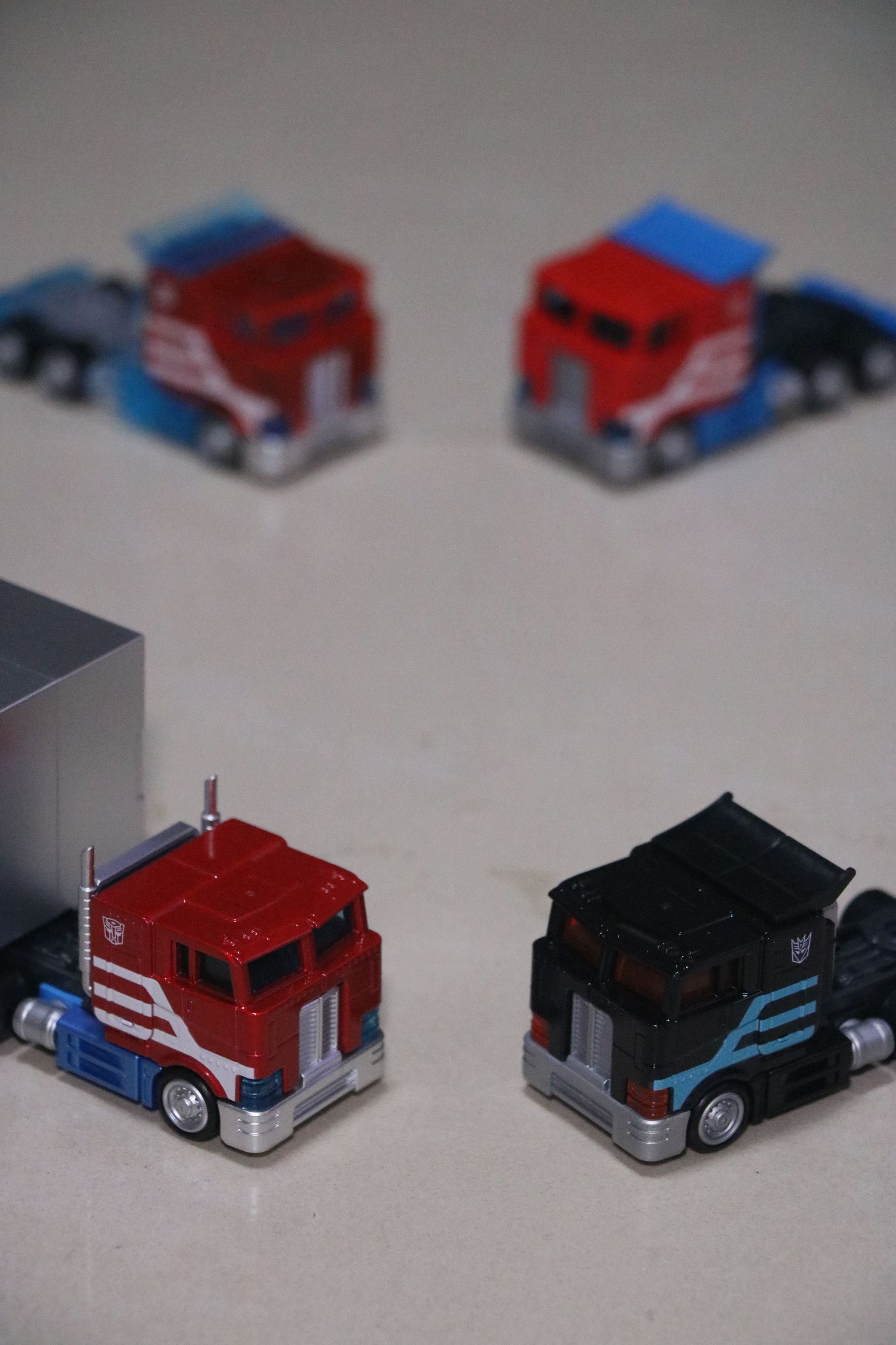 经过一个月的收集,总算把柱子哥积木车的所有形态集齐😎 集兑的暗天陨也到了,一起来了个大合影 合金材质的柱哥车壳上面似乎都会有一点水口,不过瑕不掩瑜,当四辆一起放着欣赏的时候是真开心呐 造型细节到位,涂装到位,轮胎的滚动效果不是太稳定,偶尔会出现轮胎和插槽的干涉,若不中奖滚动距离和效果还是蛮出色的👍🏻性价比蛮高的一款积木车