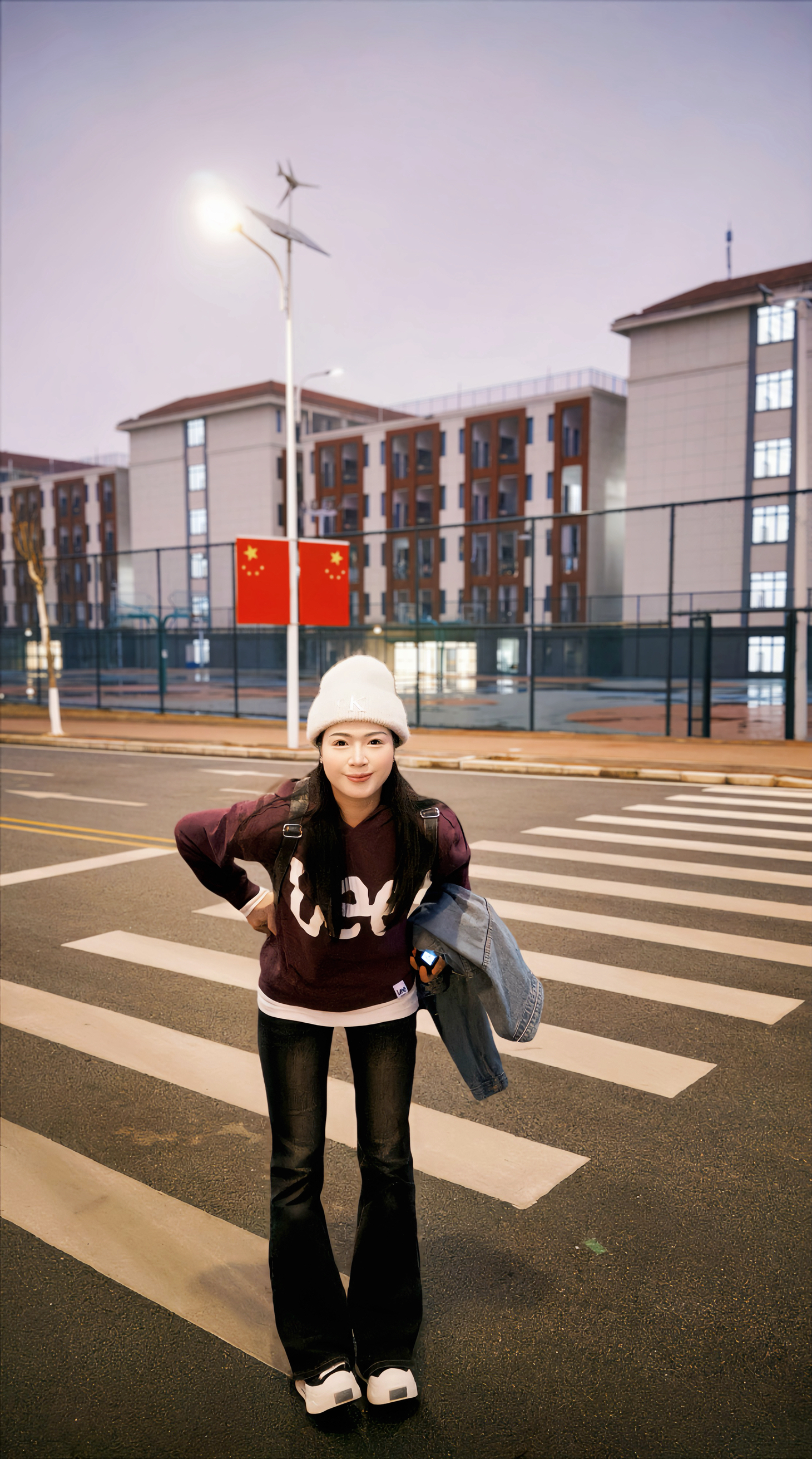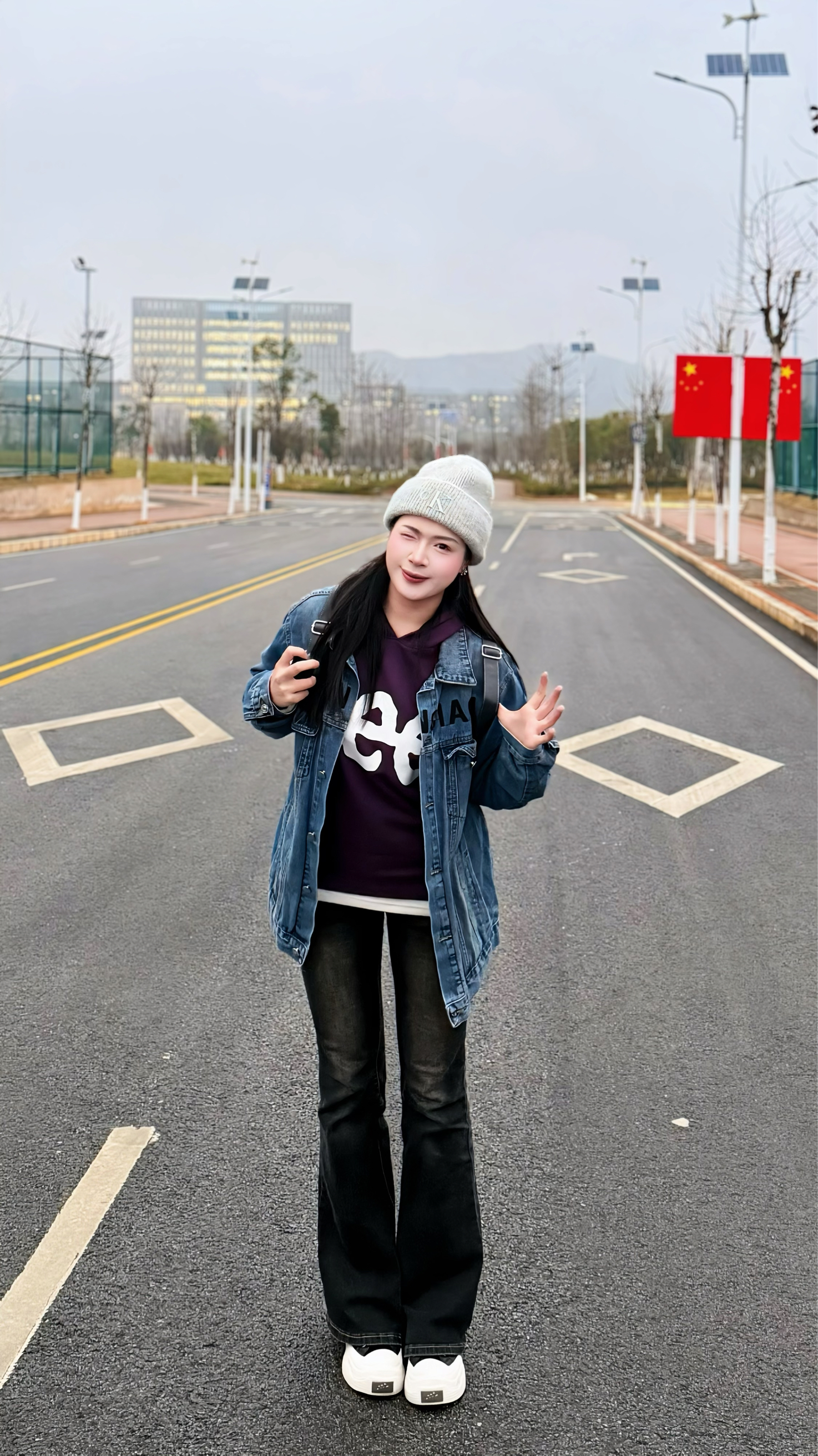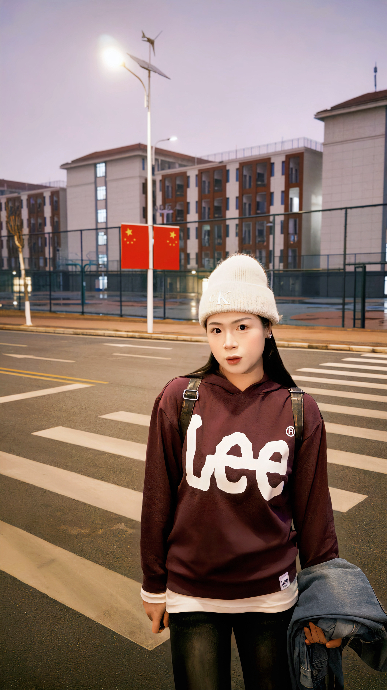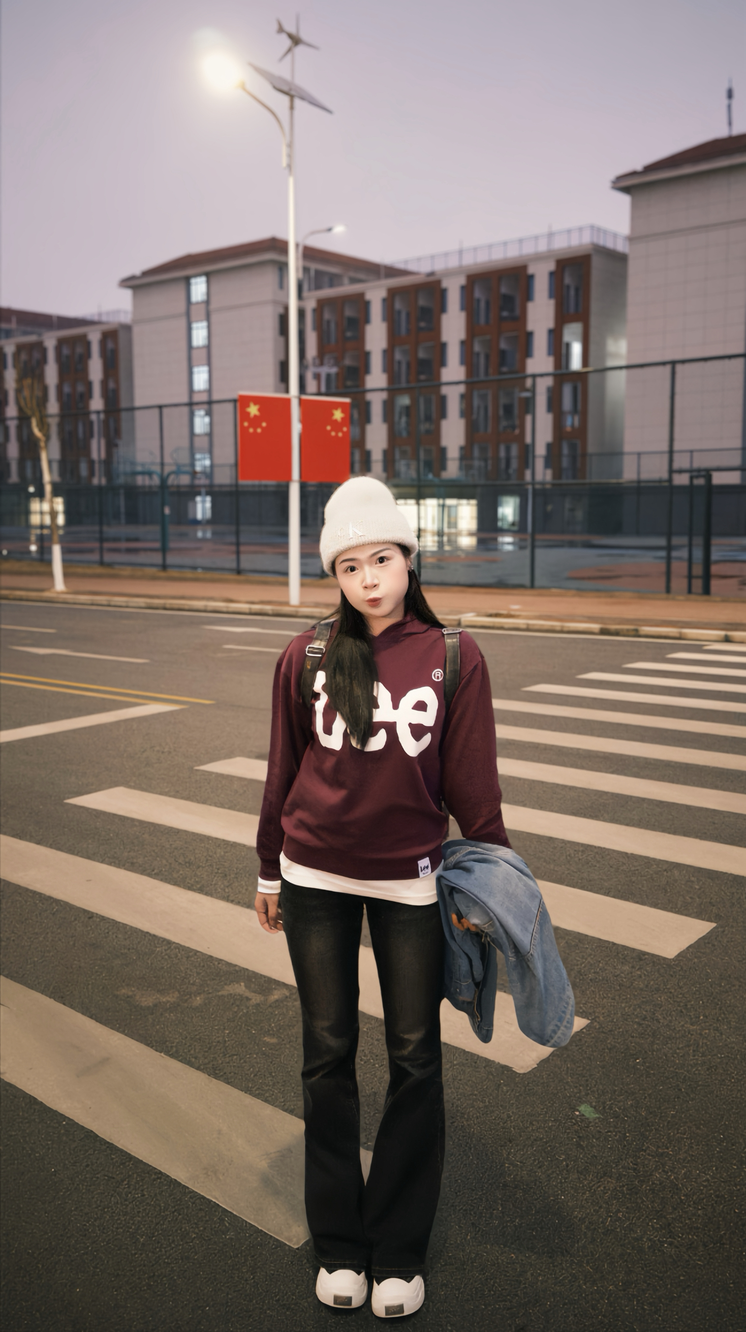 帽子是室友的,借戴一下莫名搭! Lee 的oversize卫衣里面塞了件白T叠穿,走路带风不臃肿~揣着手机和牛仔外套赶去食堂,大学生冬日舒适感拿捏!