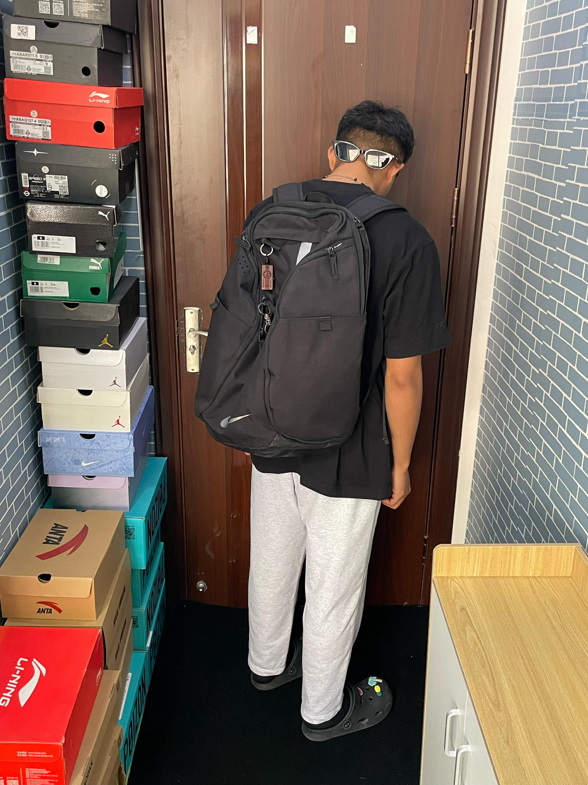 首先,包挺大的,装个什么平时上学上班的东西是肯定够用的。 左侧有干湿分离的袋子,可以专门拿来装打完球湿漉漉的衣服。 右侧是个鞋仓,空间很大,你装一个正常篮球都行 其次图片可以看到左右两侧的兜子挺大的,装什么大瓶水之类的也是不在话下哈。 其次包的背带是有个类似气垫的缓震垫,这个的作用个人感受还是不错的,没有那么勒的肩膀疼。 包的前面有个小收纳袋,连着主袋一起的,装什么手机钥匙之类的挺不错的。