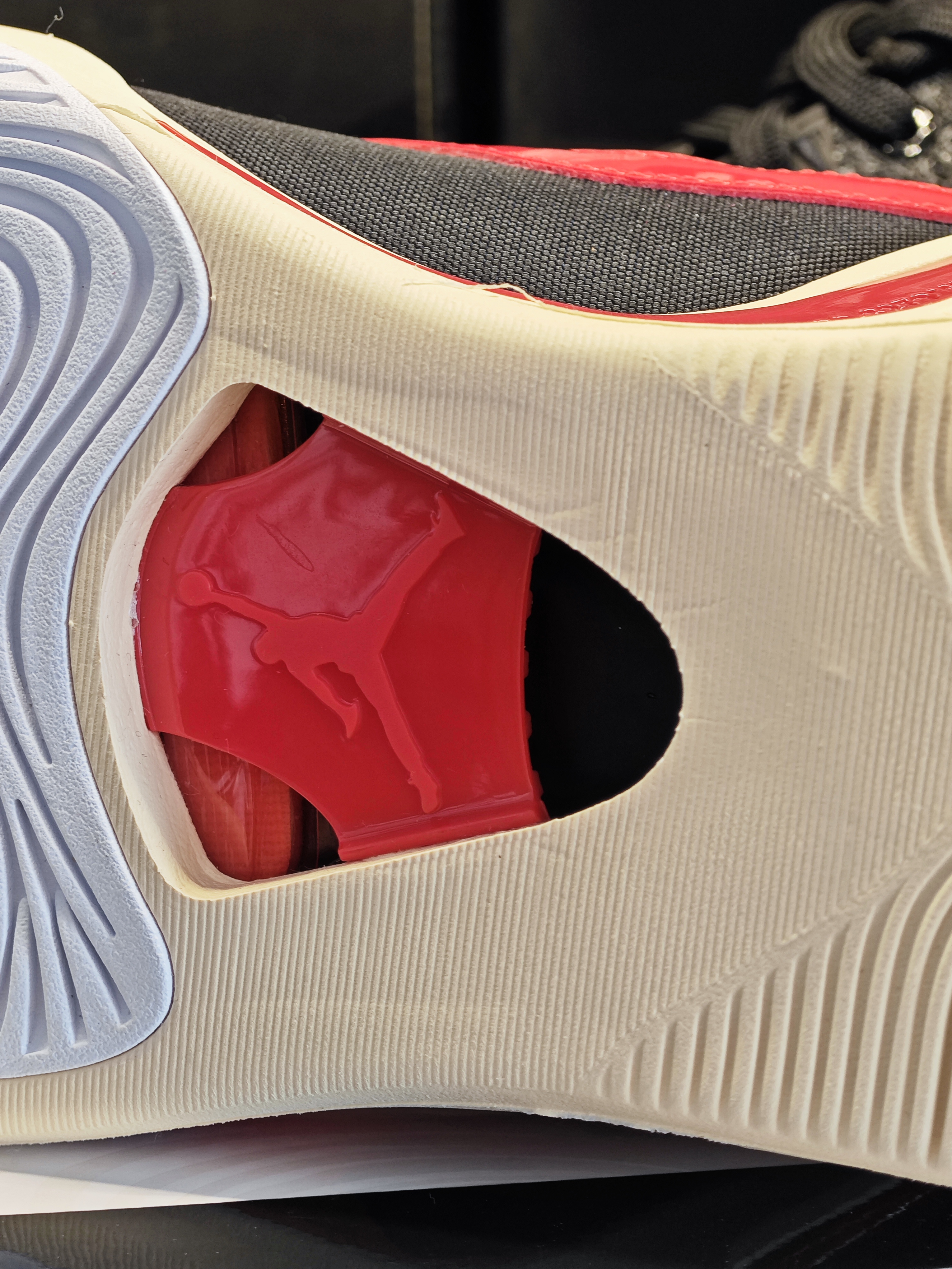 我对这塔图姆1代的“悬浮”镂空中底比较感兴趣 设计细节确实大胆 相当于从鞋外面就能摸到中底布 前掌zoom直接掏空 看着确实新奇特 后跟的刺绣图案很复杂