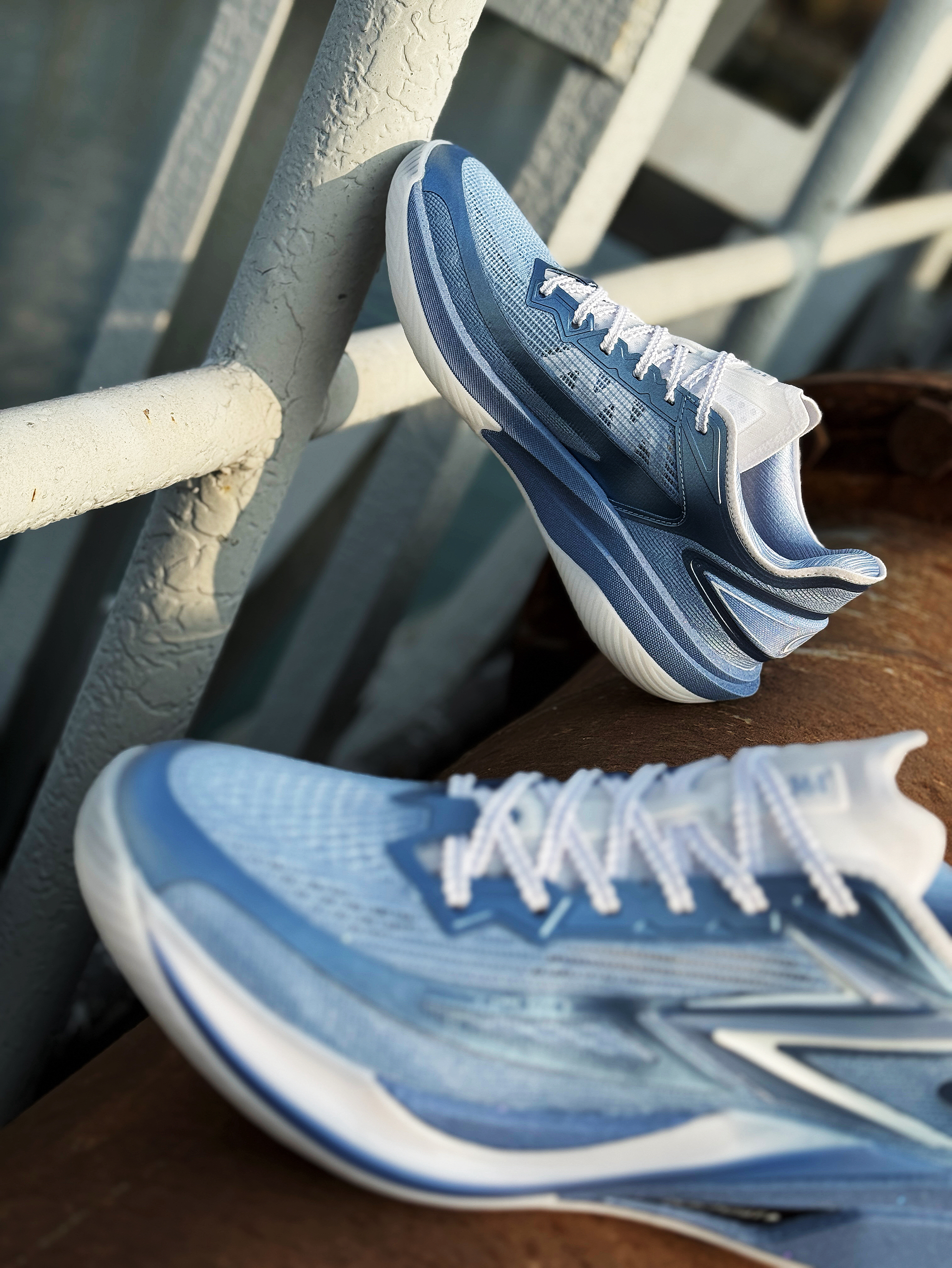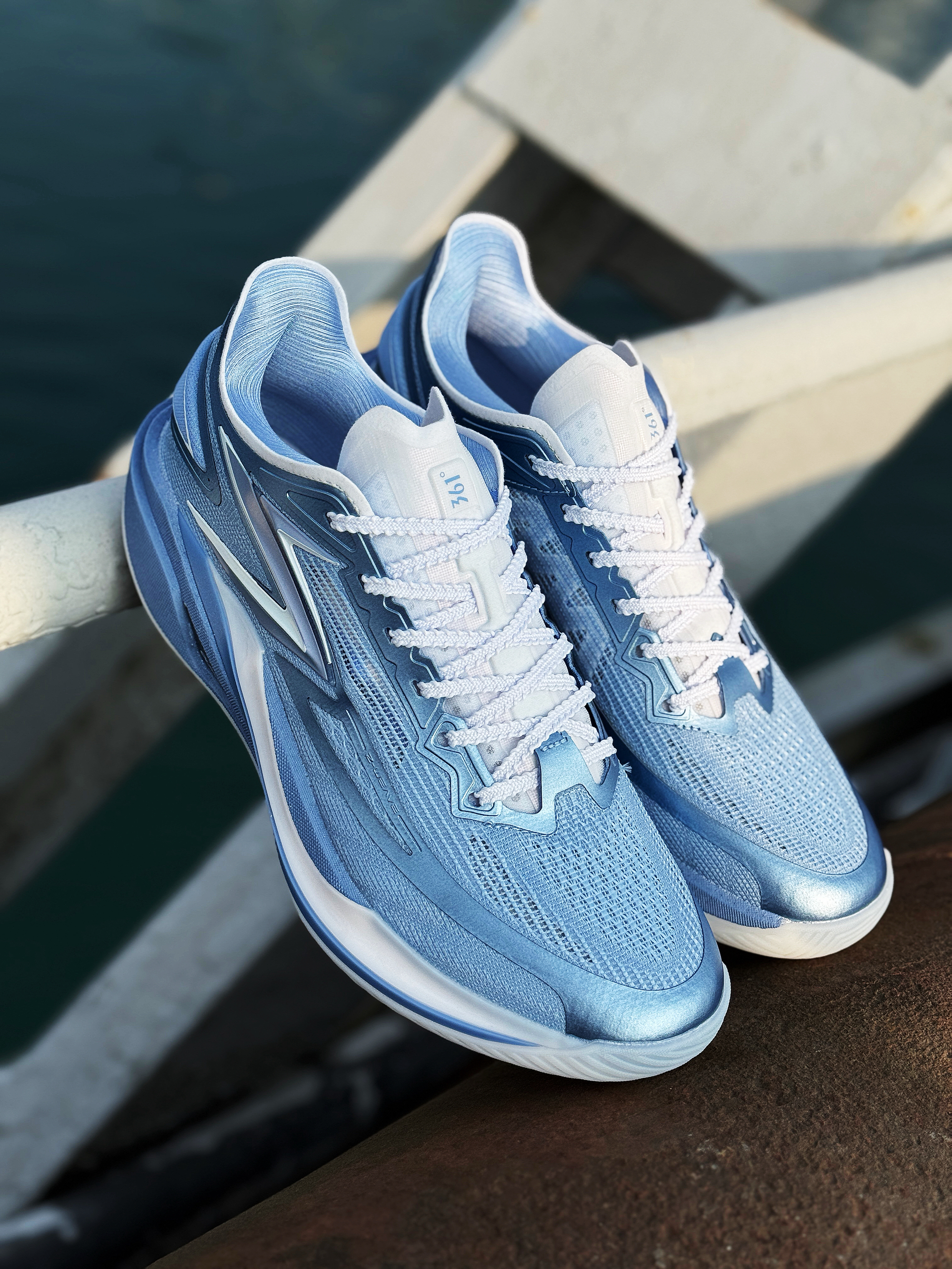 穿过飚速BB系列的兄弟们应该知道 上脚轻快跑动灵活 很适合突破灵动类型的锋卫穿着!年末361度带来了这双飚速BB 2 升级之后更能跑了! 鞋子整体外观速度感十足 采用一体成型的中底悬浮科技 带来更流畅的滚动感 脚感软弹舒适 穿上就想跑起来! 鞋子后跟也进行了加宽处理 在跑跳过程中稳定性也有提升! 平时打球穿挺舒服的 这双冰刀配色整体冰蓝色装扮 很有冬日气氛 尺码正常选择!