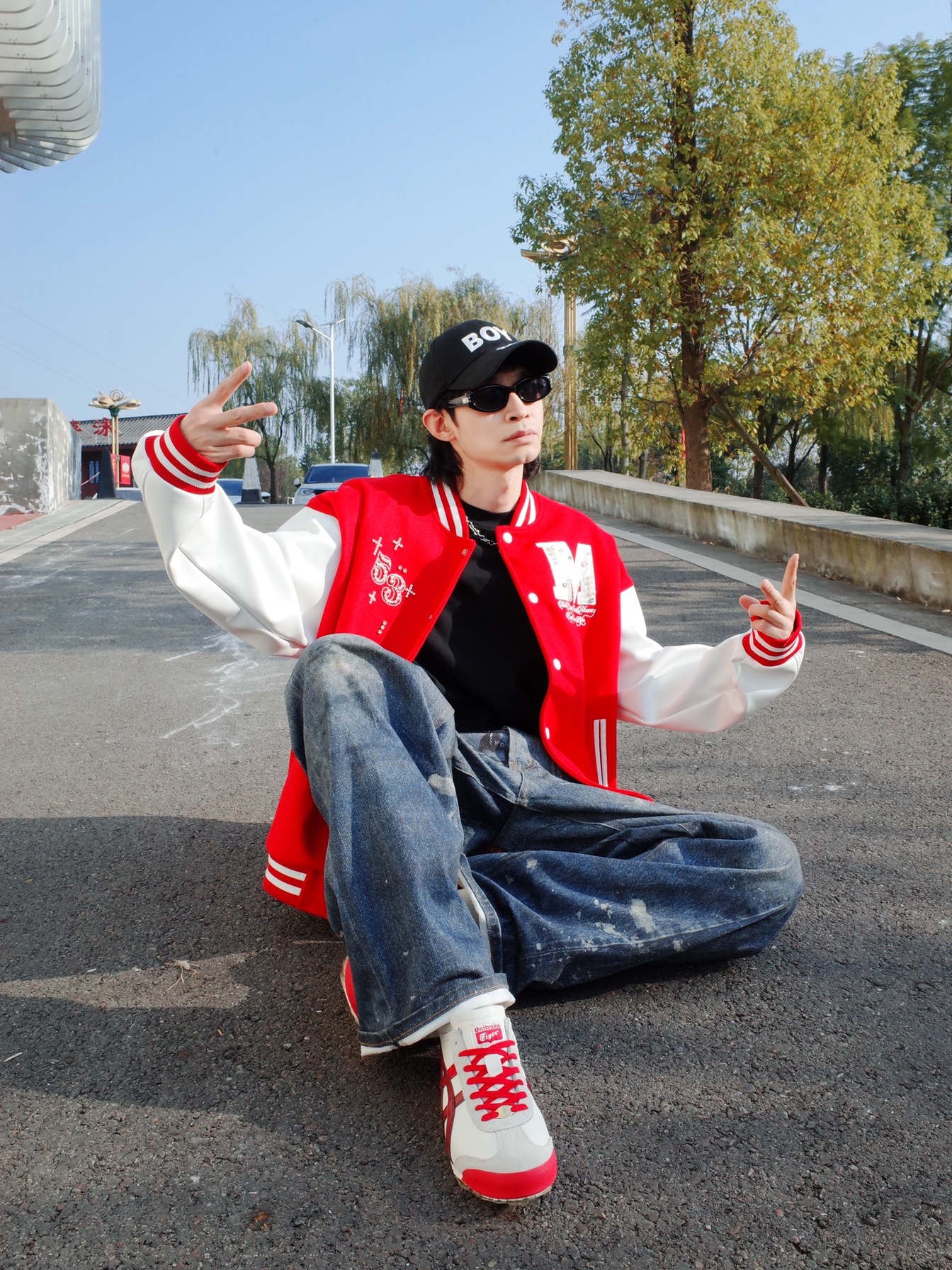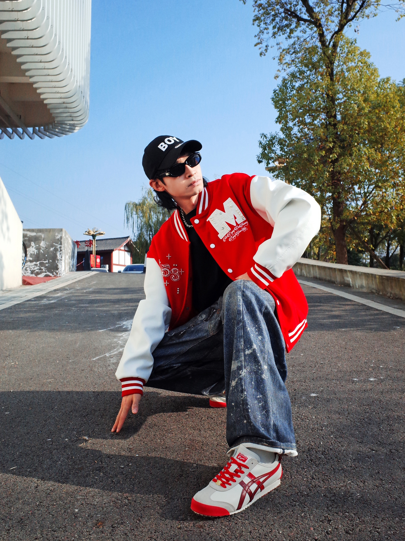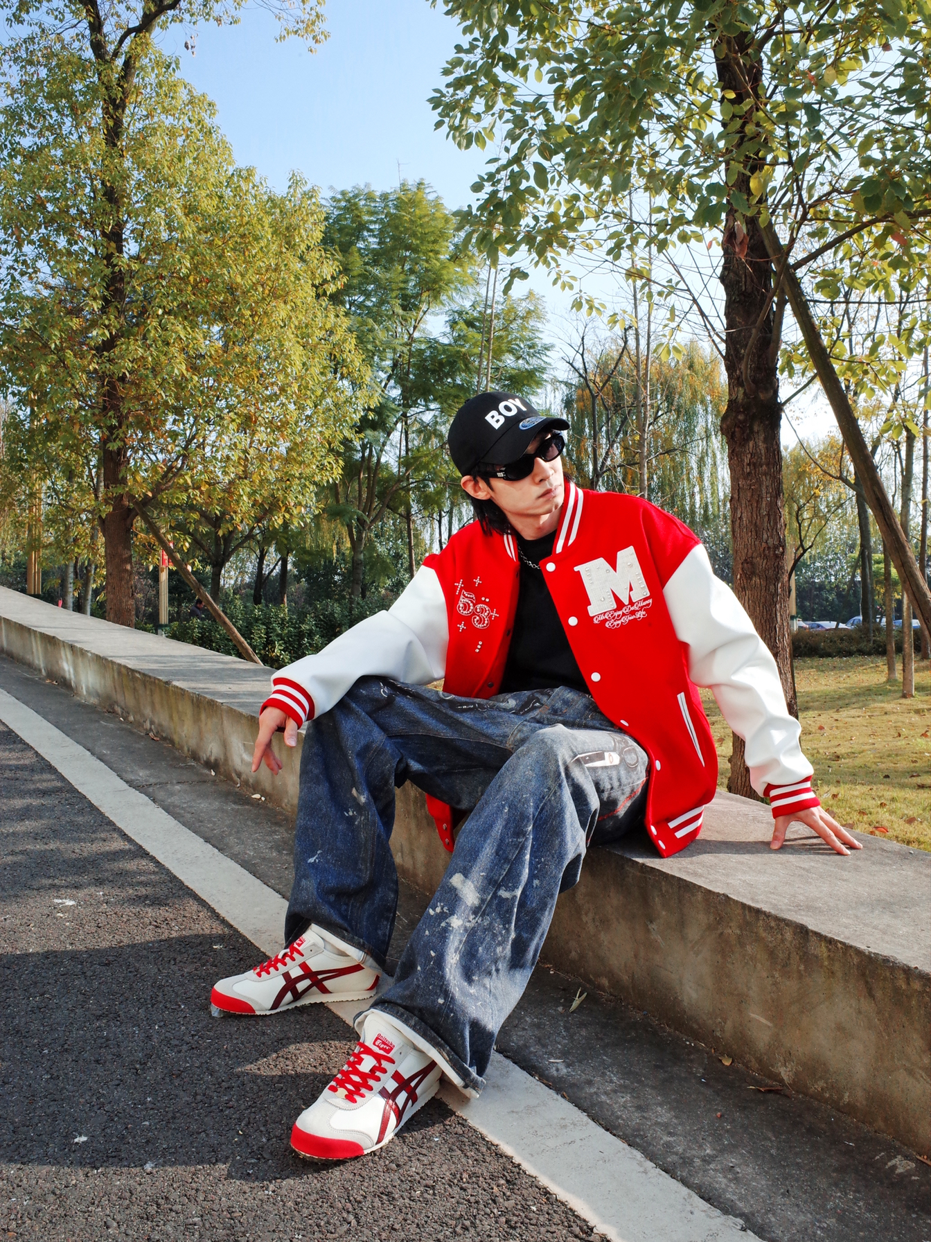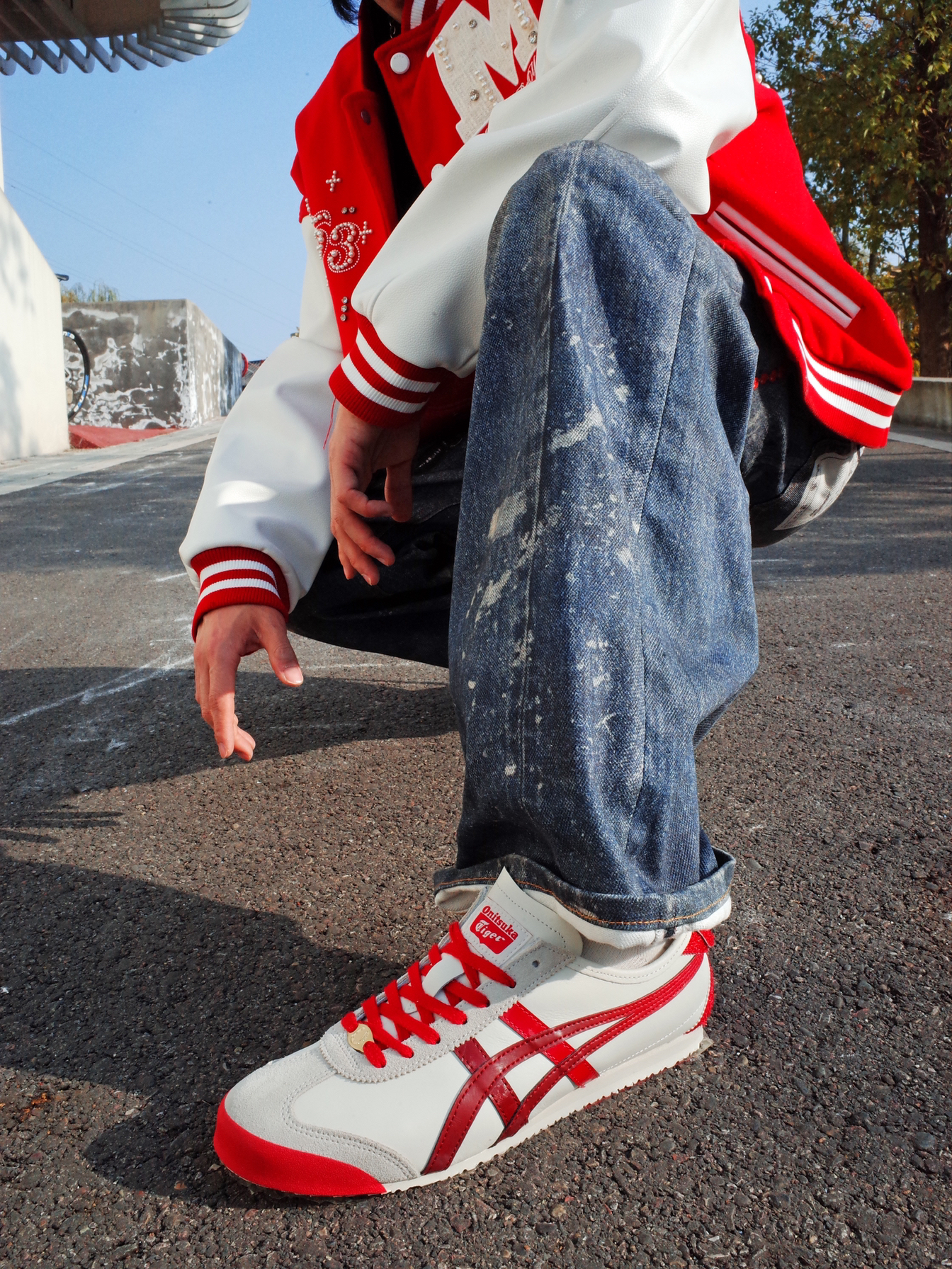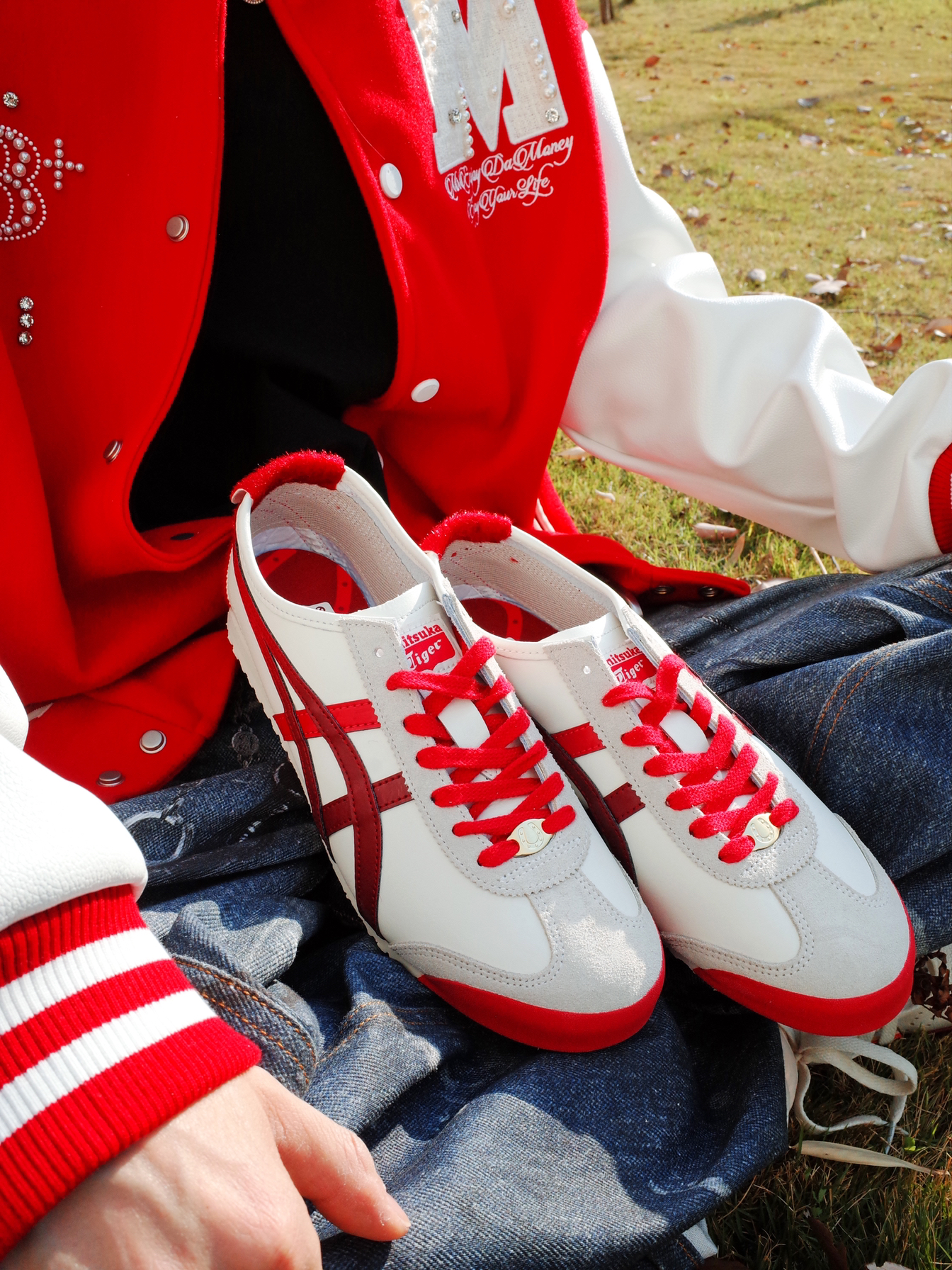 Hi,这里是怪兽涵哥👾 马上就要到新年啦🎊 喜庆的红色穿起来啊! 🔺 红白撞色的棒球夹克上身🎈 珍珠点缀在阳光下blingbling~ 跃动搭配一条印花牛仔裤, 大一码的版型显得松弛感满满✨ 🔺 尽管穿搭上了level, 但还是被这双鬼塚虎马年限定MEXICO 66抢了C位💥 醒目的白红配色和马蹄铁造型的国风元素相撞! 带着对新年的展望和幸运而来。 上脚也轻便,挺适合日常citywalk的