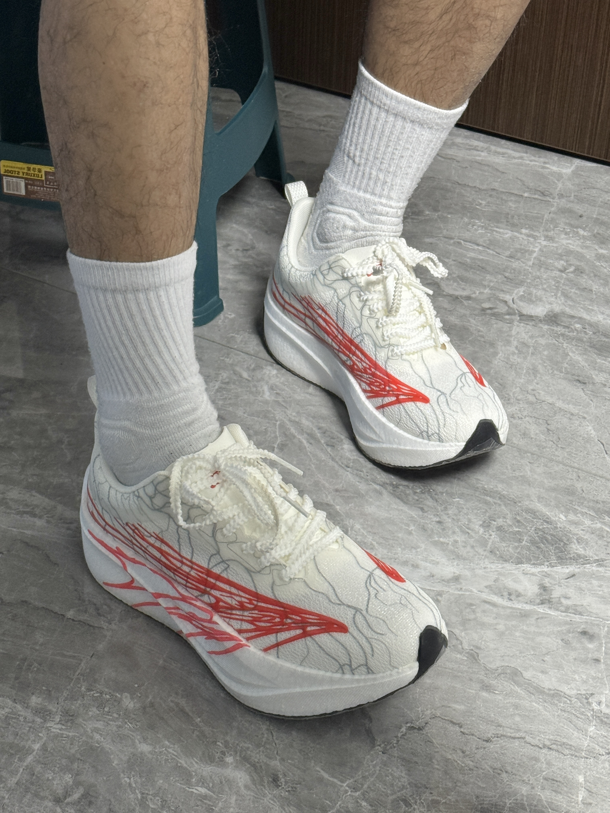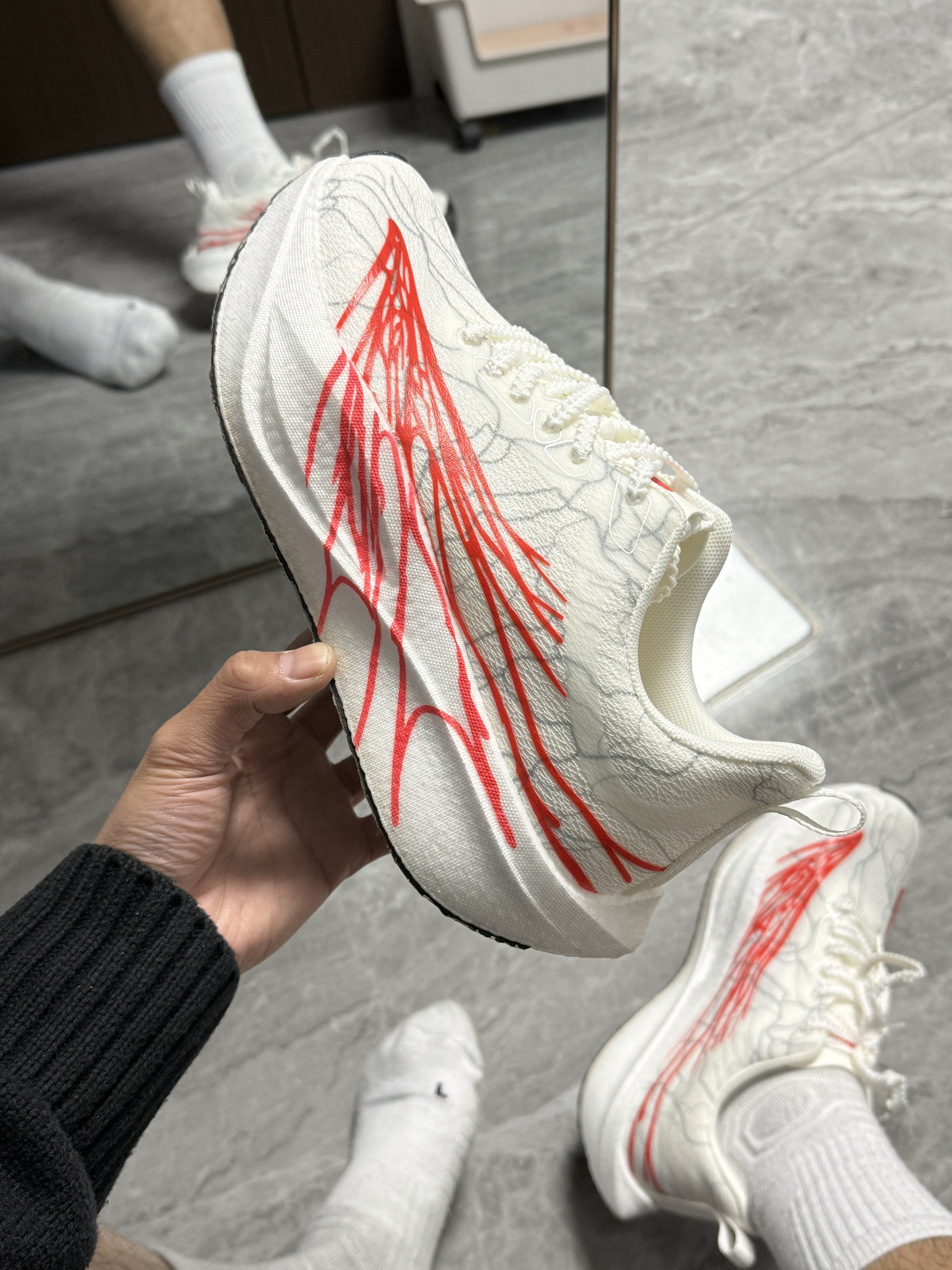 新入的红纹竞速跑鞋太惊喜了!鞋面是轻量化编织材质,脚感透气不闷,中底的缓震科技落地很软弹,日常搭黑裤子能中和沉闷感,红纹细节还能提亮点缀,通勤暴走都合适!