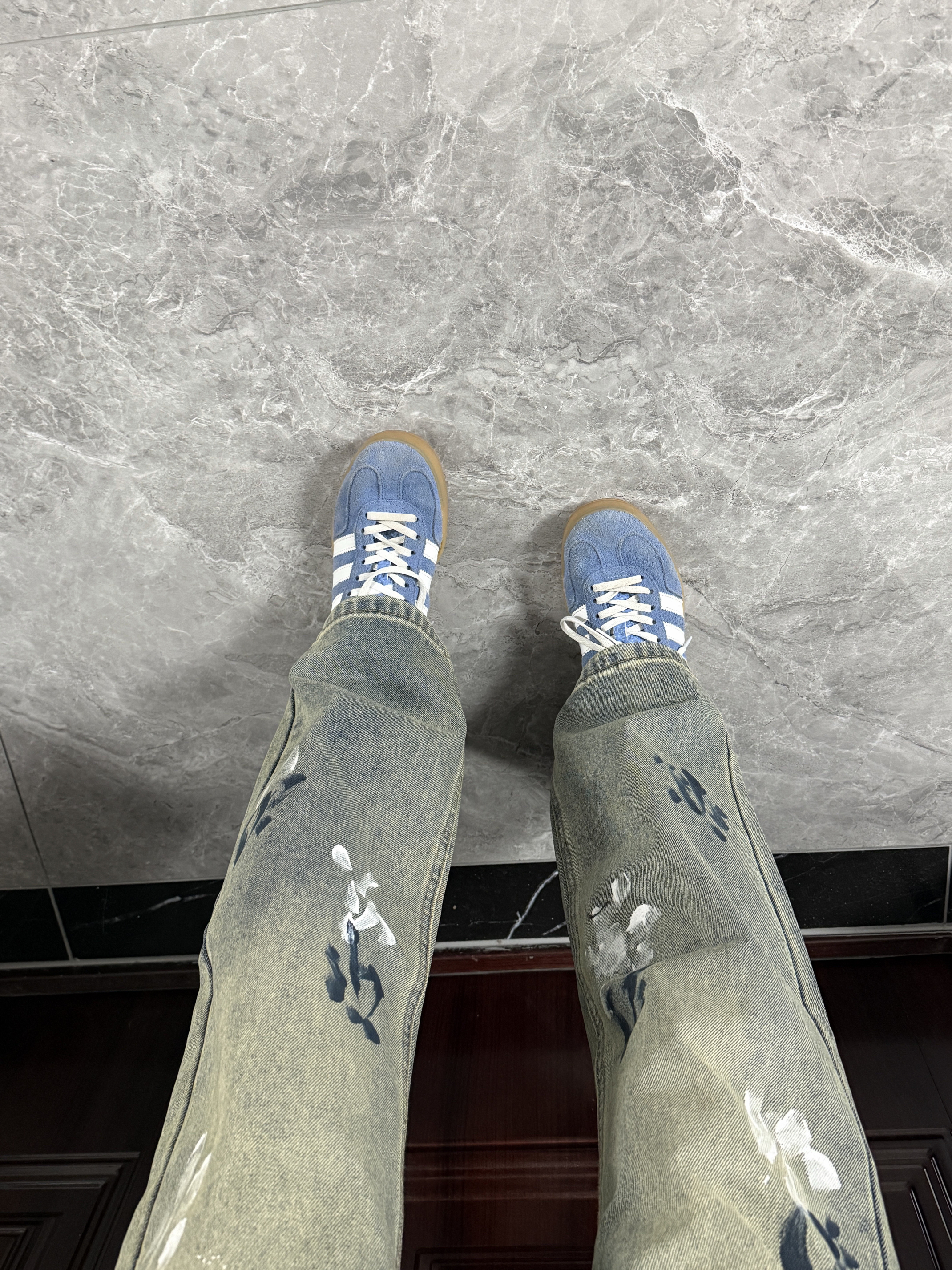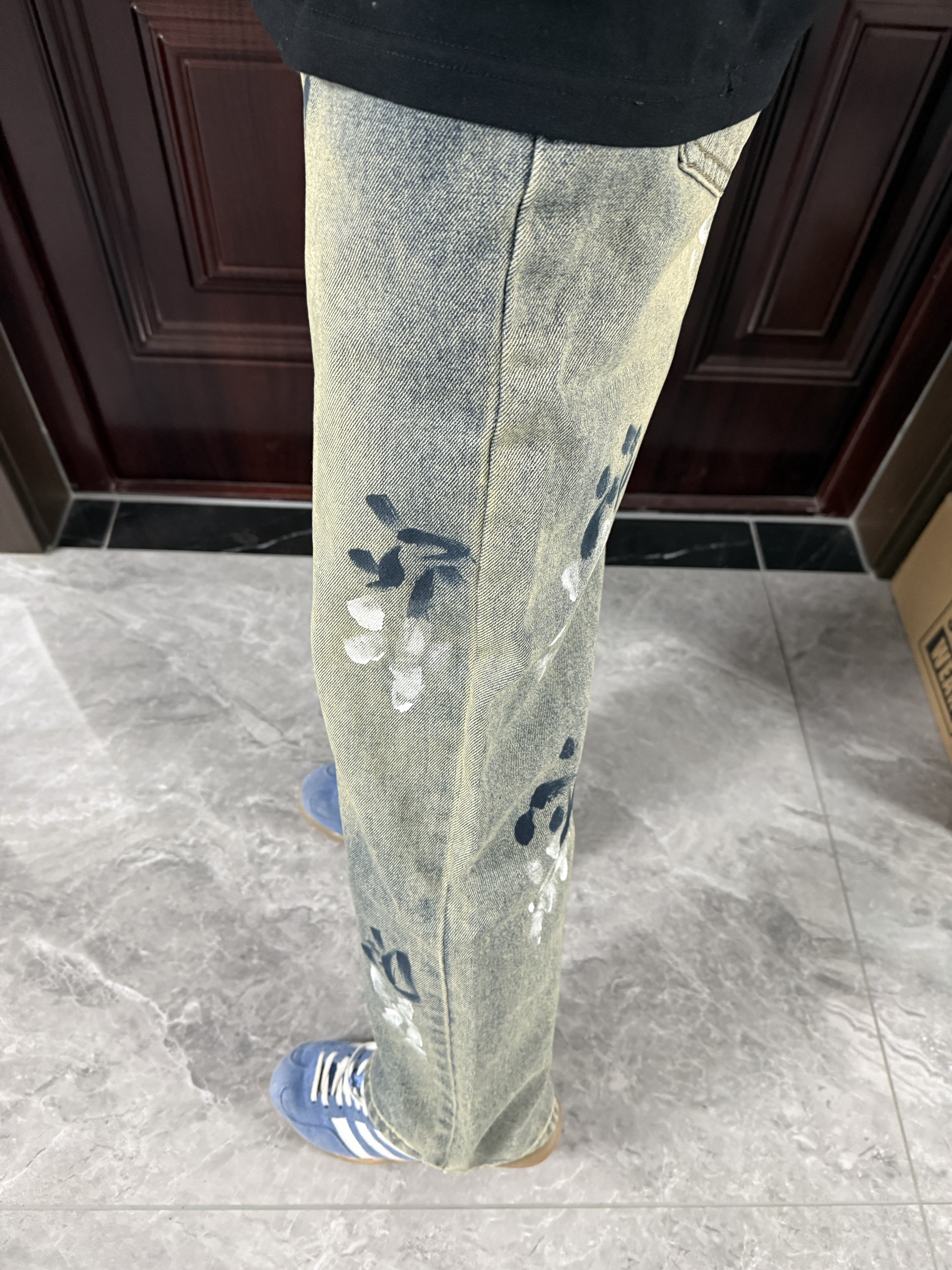 啊啊啊分享一条近期我超爱的一条裤子!这条做旧复古泼墨牛仔裤,泼墨图案很有设计感,高街氛围感直接拉满~直筒版型也超百搭,搭配双阿迪德训鞋帅炸了! 裤子连接我找到后会放评论区 大家可以蹲一下~