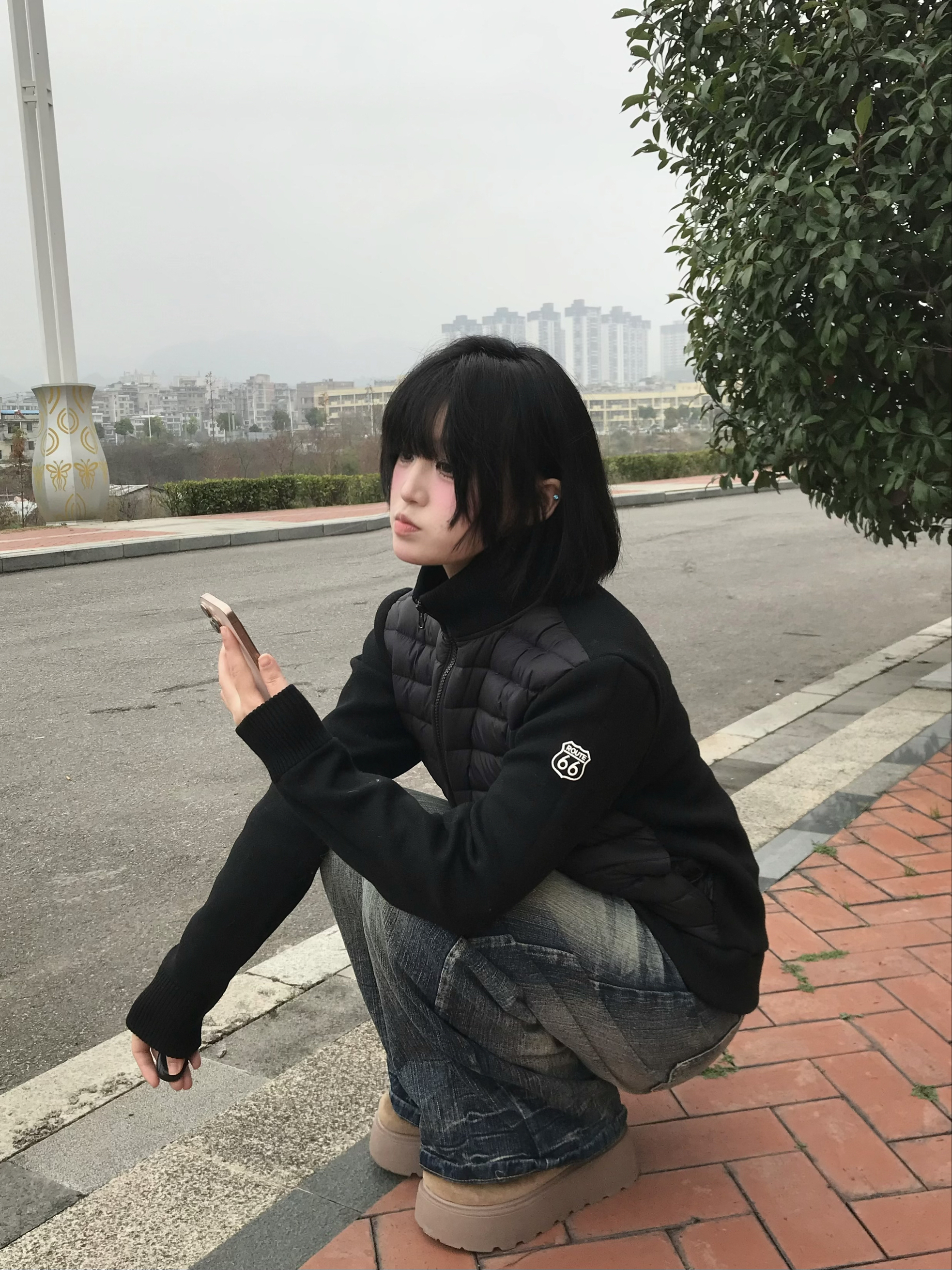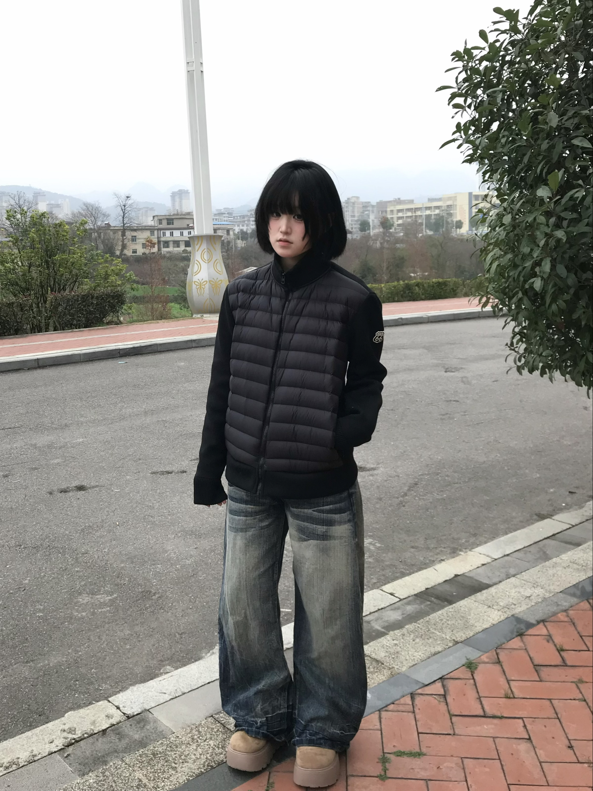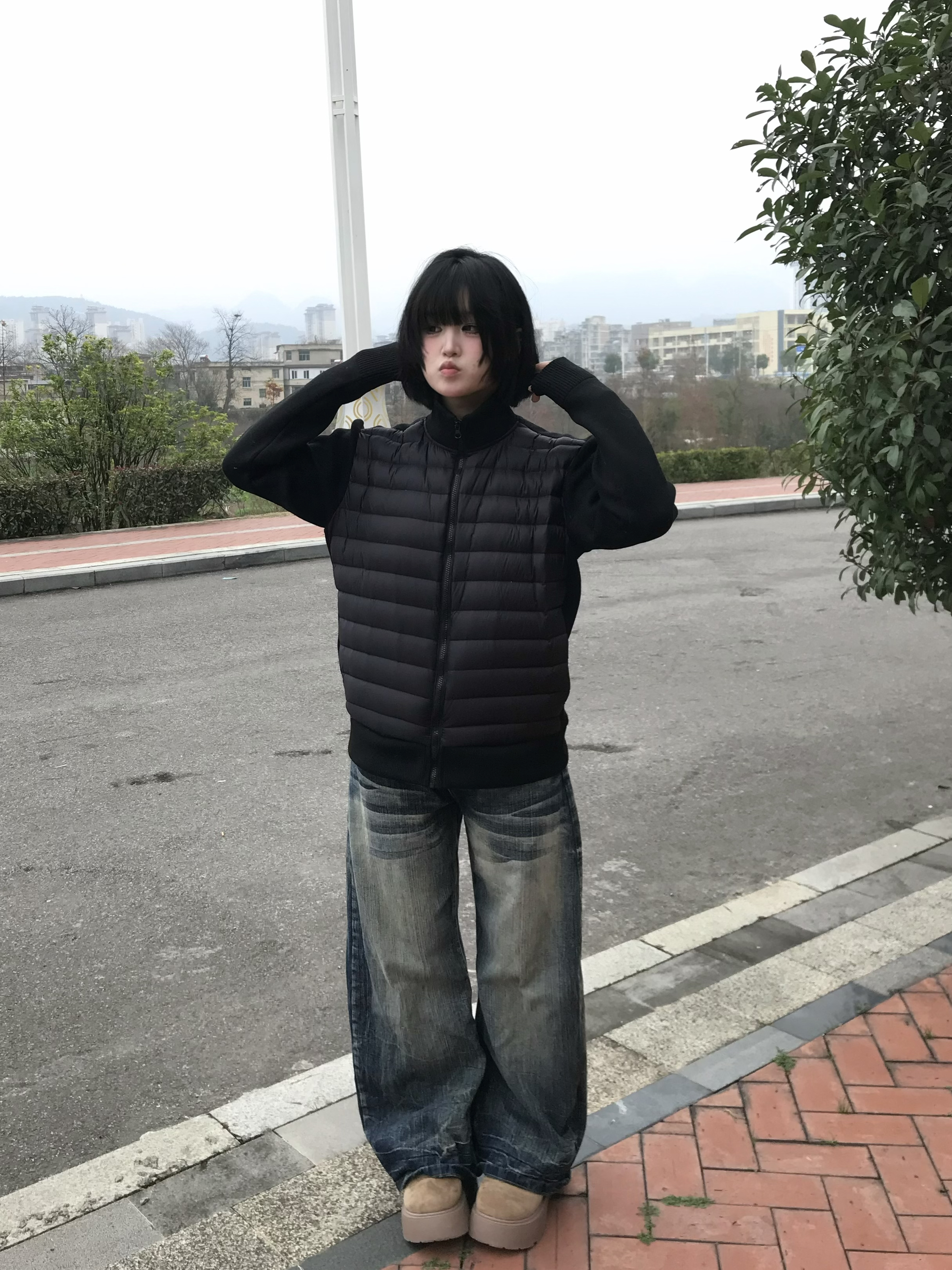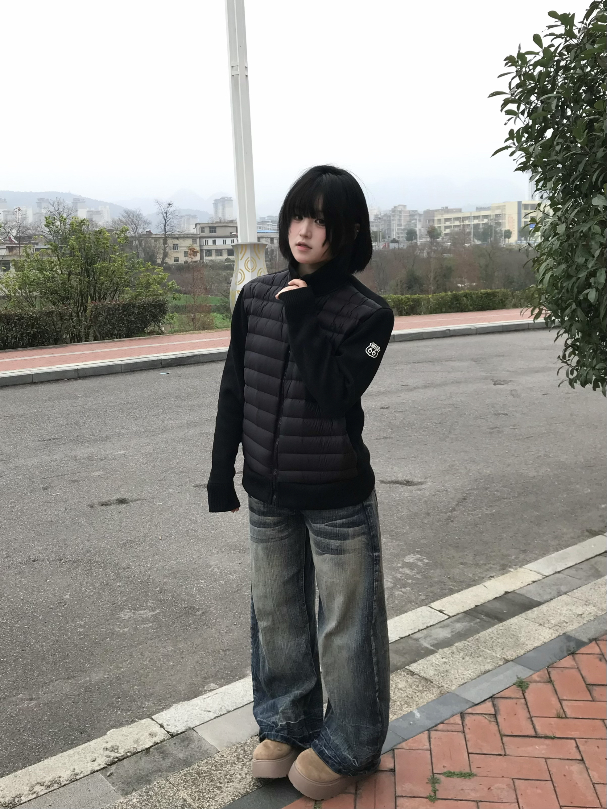 158 47 穿的是M码 这件白鸭绒外套直接封神! 针织拼接配LOGO超吸睛 修身版型显身形 搭牛仔裤巨百搭 通勤出游穿都超合适