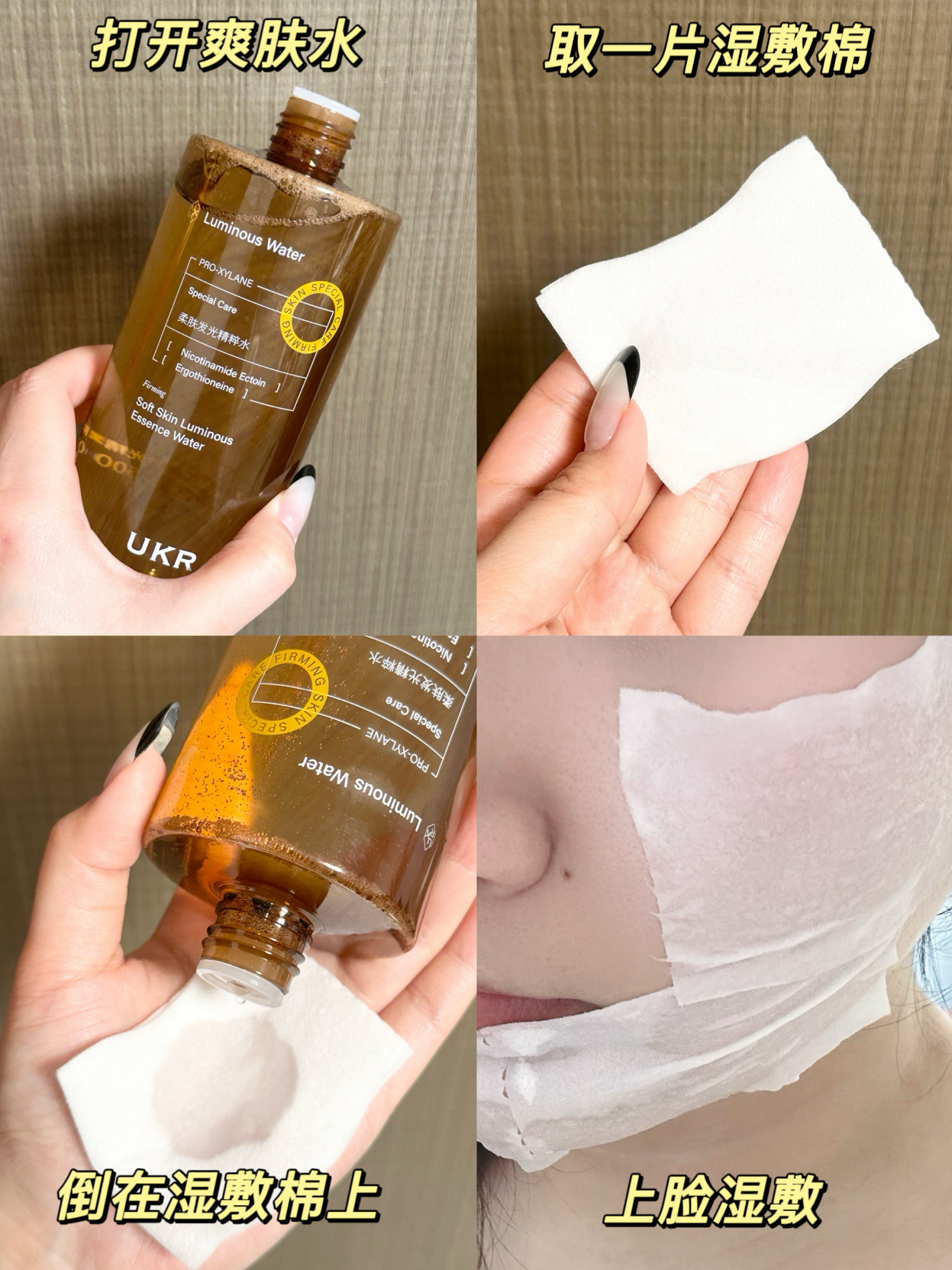 本黄黑皮经过一夏天暴晒 非常好!又黑了一个度再加上我经常熬夜 脸真的是没法看🥹 不过幸好有UKR熬夜发光水 里面满满的烟酰胺精华提亮肤色 爽肤水质地轻薄不粘腻 我每天都是倒在湿敷棉上 湿敷10分钟左右在进行后续的护肤 坚持一段时间皮肤透亮了不少