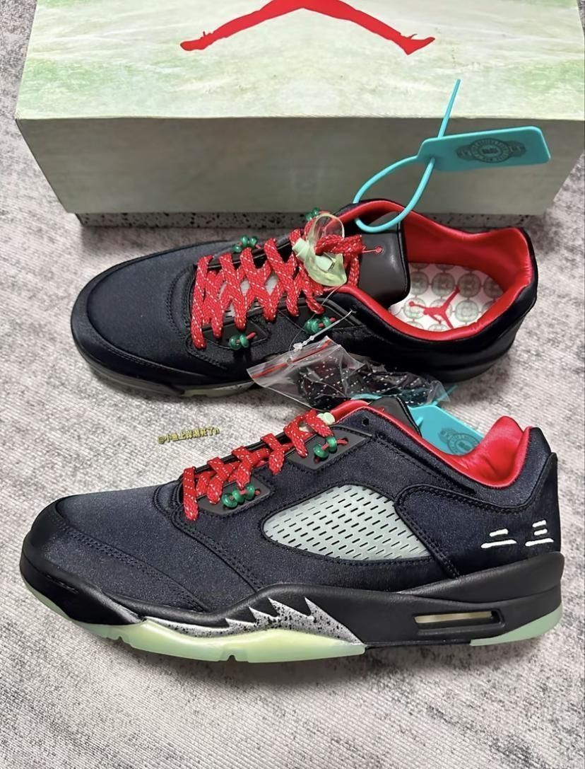 CLOT x Jordan Air Jordan 5 retro low sp "jade" 货号:DM4640-036 发售时间:2022.05.20 这款特别版Air Jordan 5采用独特的黑红配色,灵感源自火星主题。鞋面以高质感黑色材质打造,搭配红色点缀,营造出浓厚的太空科技感。标志性鲨鱼齿设计嵌入金属质感与泼墨细节,进一步提升视觉冲击力。 鞋舌部分保留经典3M反光材质,红色鞋带...