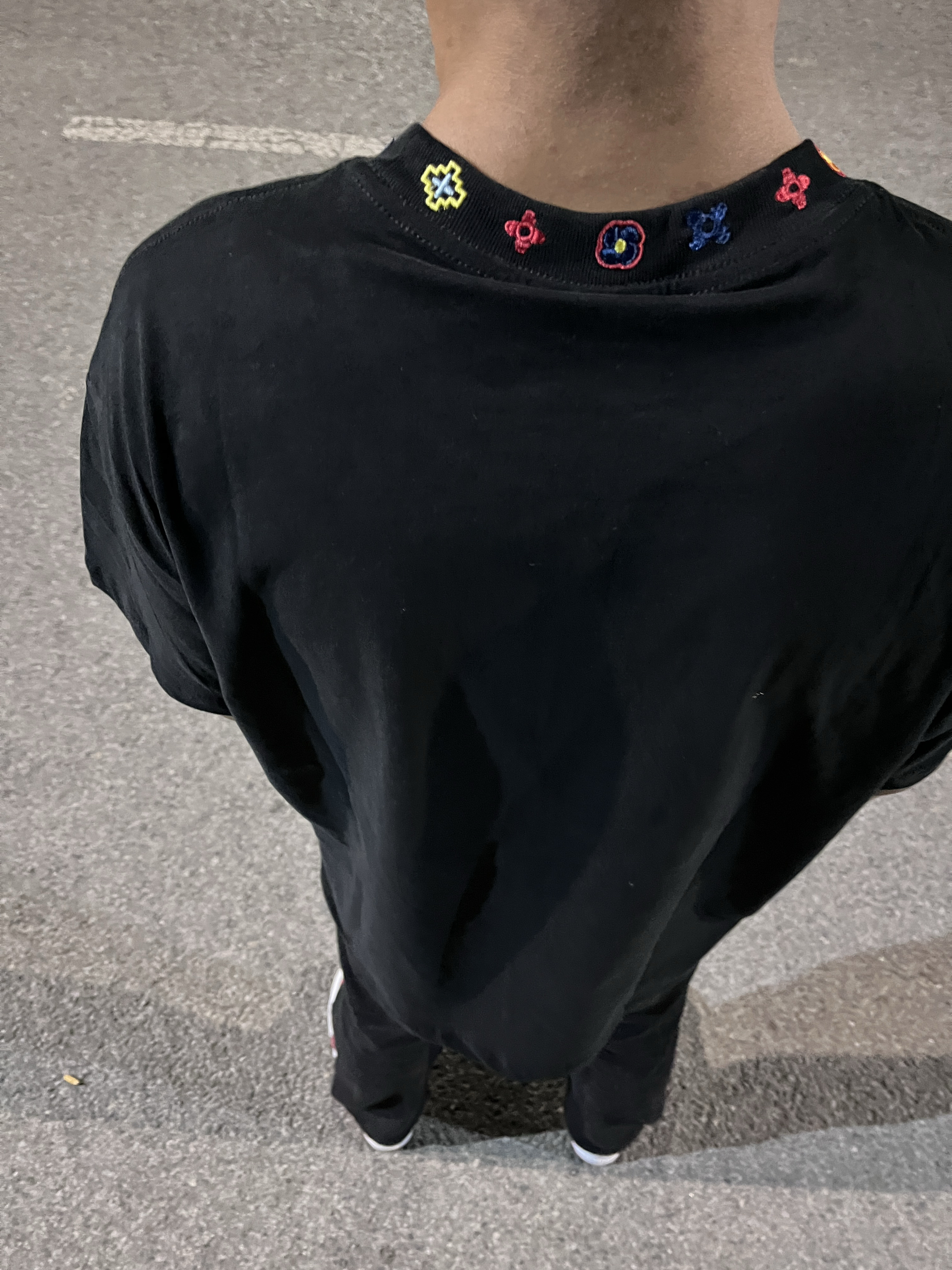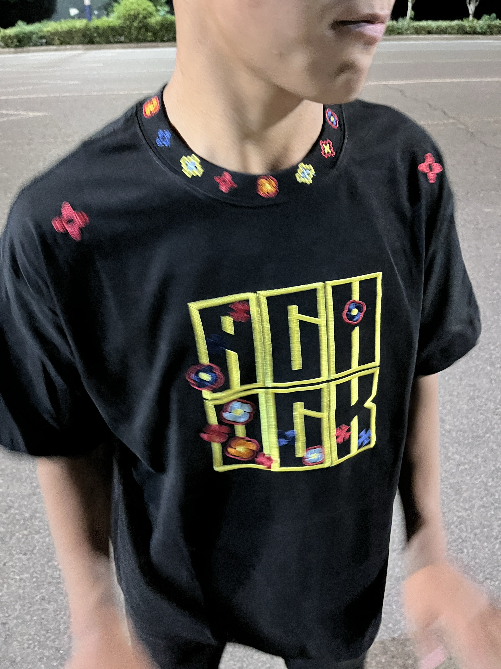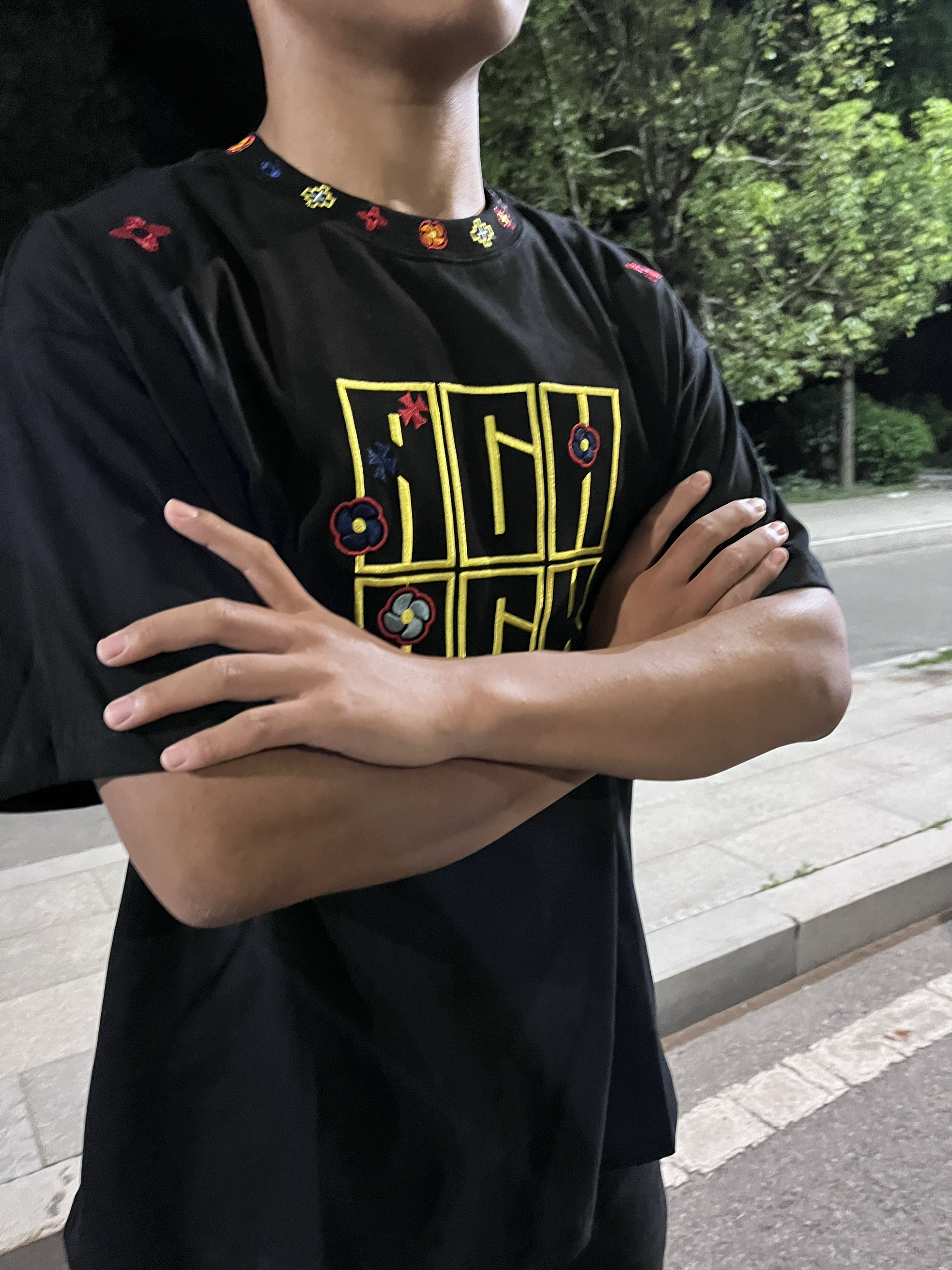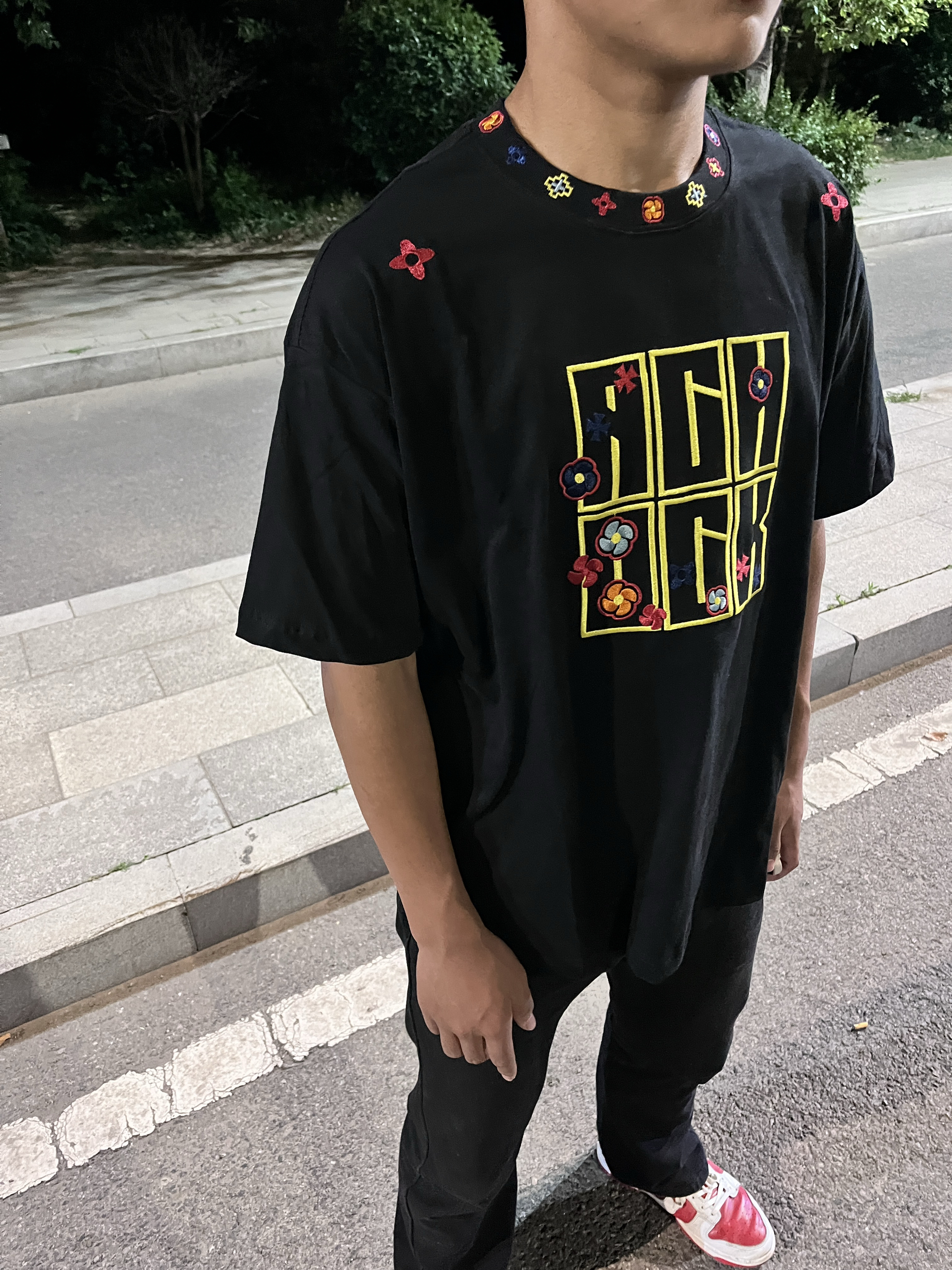 AC家嘻哈图章刺绣短袖T恤 领口上是满满的小细节 纯棉面料 LOG O纯刺绣做工精细 作为学生党穿着场面较多,无论是日常穿着还是运动锻炼有着舒适的穿着体验 还是280克高克重纯棉短袖立体有版型 黑色刺绣T恤也是很好搭配衣服