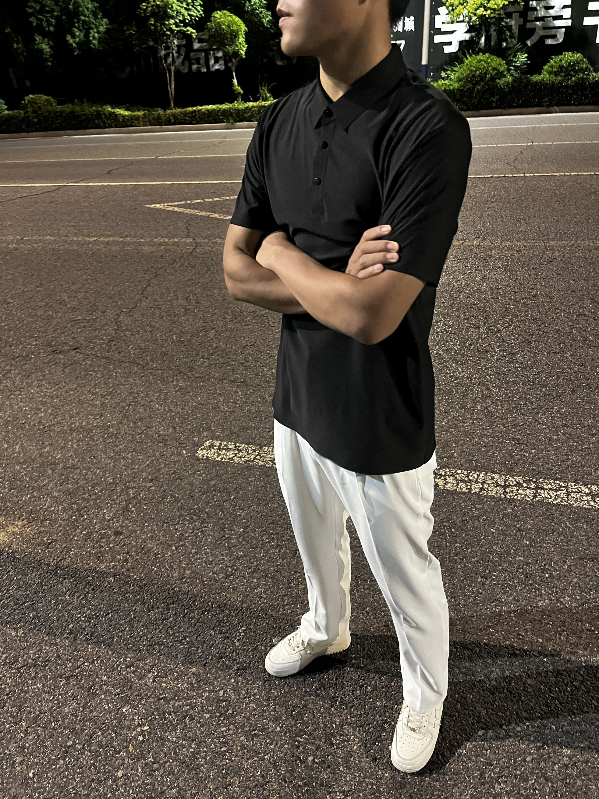 它拥有高级感十足的美式垂感与阔腿裤设计 无论是休闲还是正式场合,都能让你轻松驾驭 黑白搭配永远都不会出错! 一件纯黑polo可以搭配整个夏天 短款略微修身的版型真的不要太帅 不管是内搭还是单穿都是个不错的选择 搭配一条乳白色微喇版型真的很有慵懒的感觉 看着非常干净舒服 略微修身的版型上身非常显腿长!!!