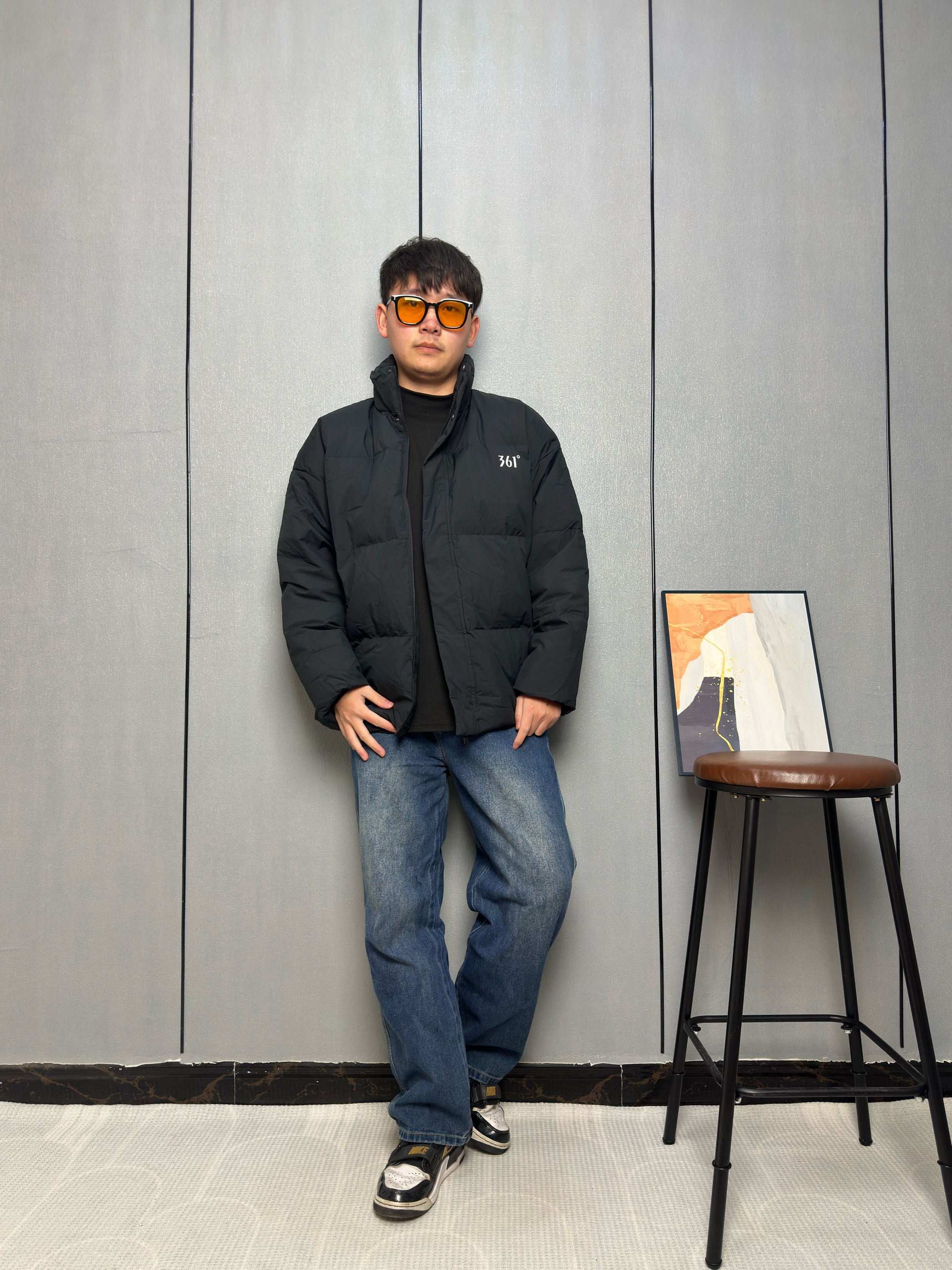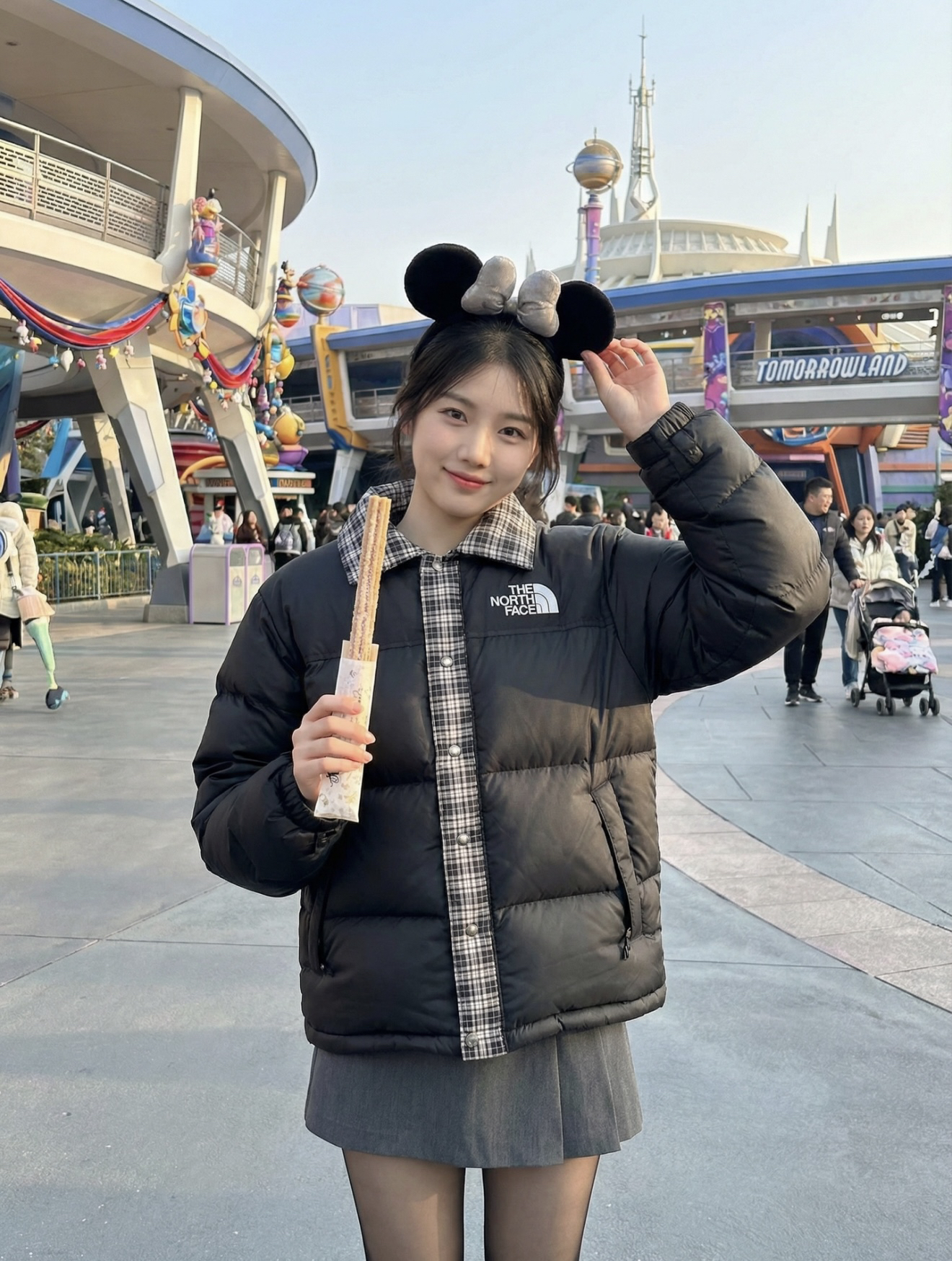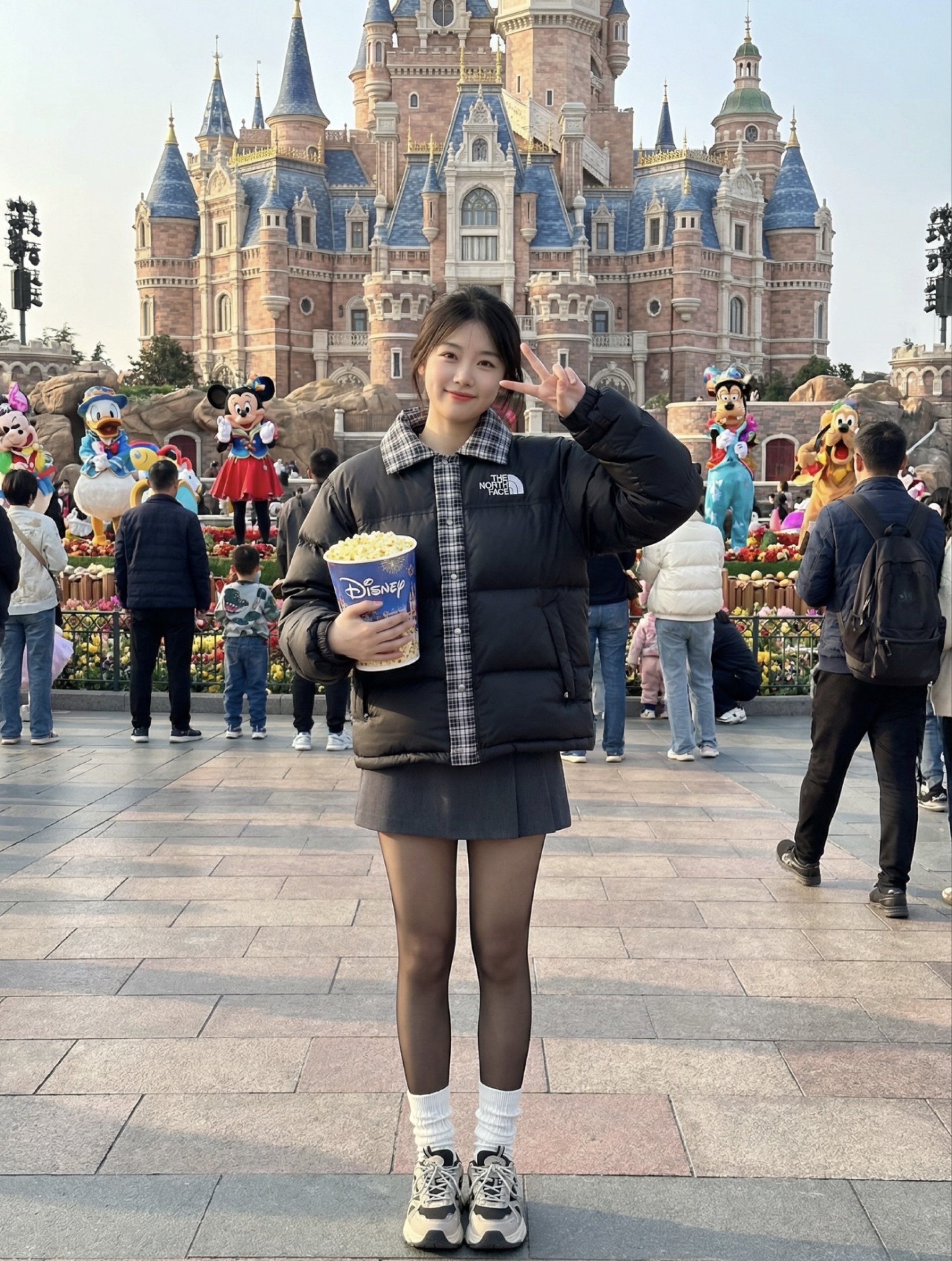 这件北面羽绒夹克设计感超强!黑色绗缝主体保暖又有型,格纹衬衫领和门襟混搭太特别了✨ 银色按扣精致复古,口ECO标签细节满满🏔️ 短款宽松版型显高又款宽松版型显高时髦