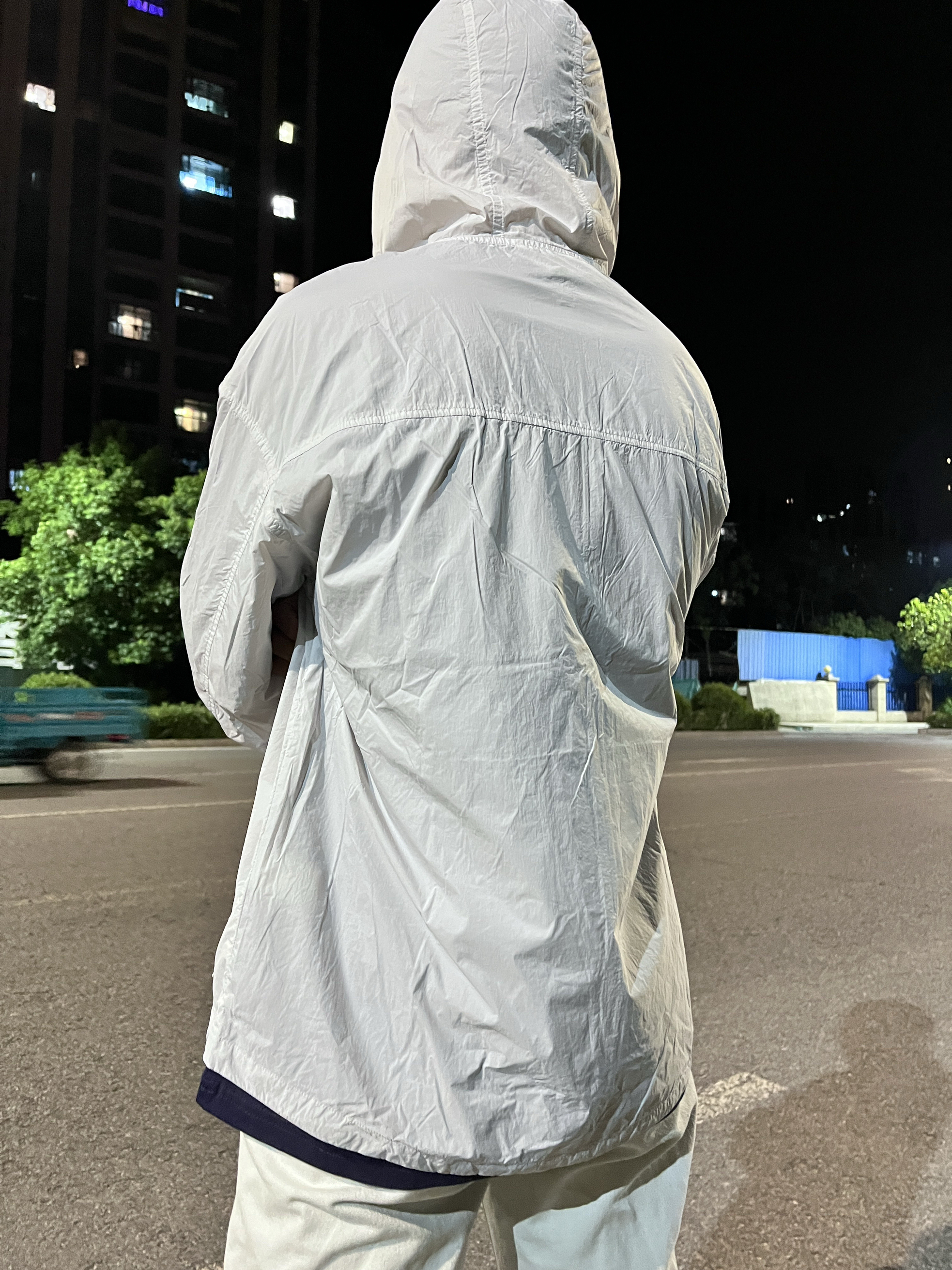它拿在手里轻薄 还是速干透气的面料好喜欢 穿起来也没有束缚感 宽宽松松的蛮舒适的 主要是它好搭配 随性搭配牛仔裤或者休闲裤都非常不错 男女都可穿
